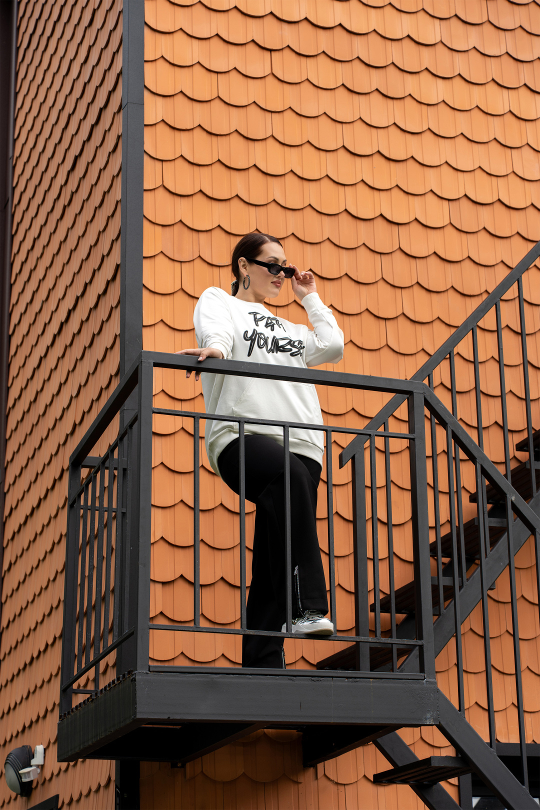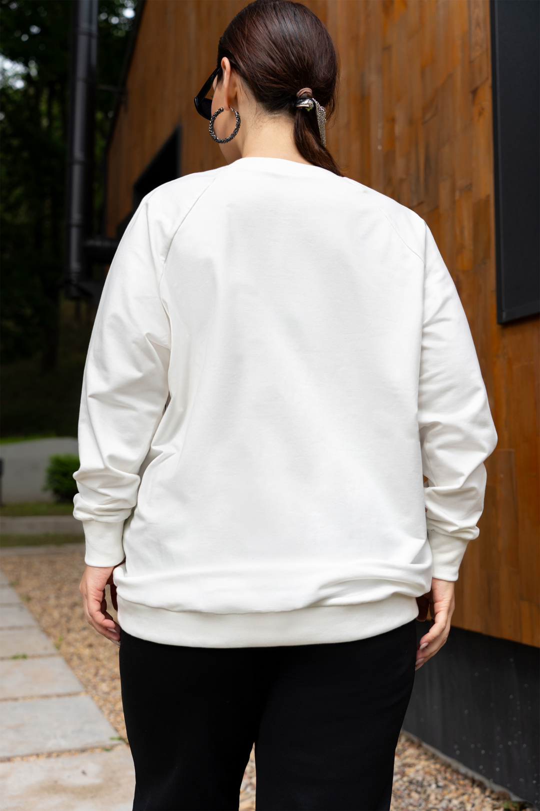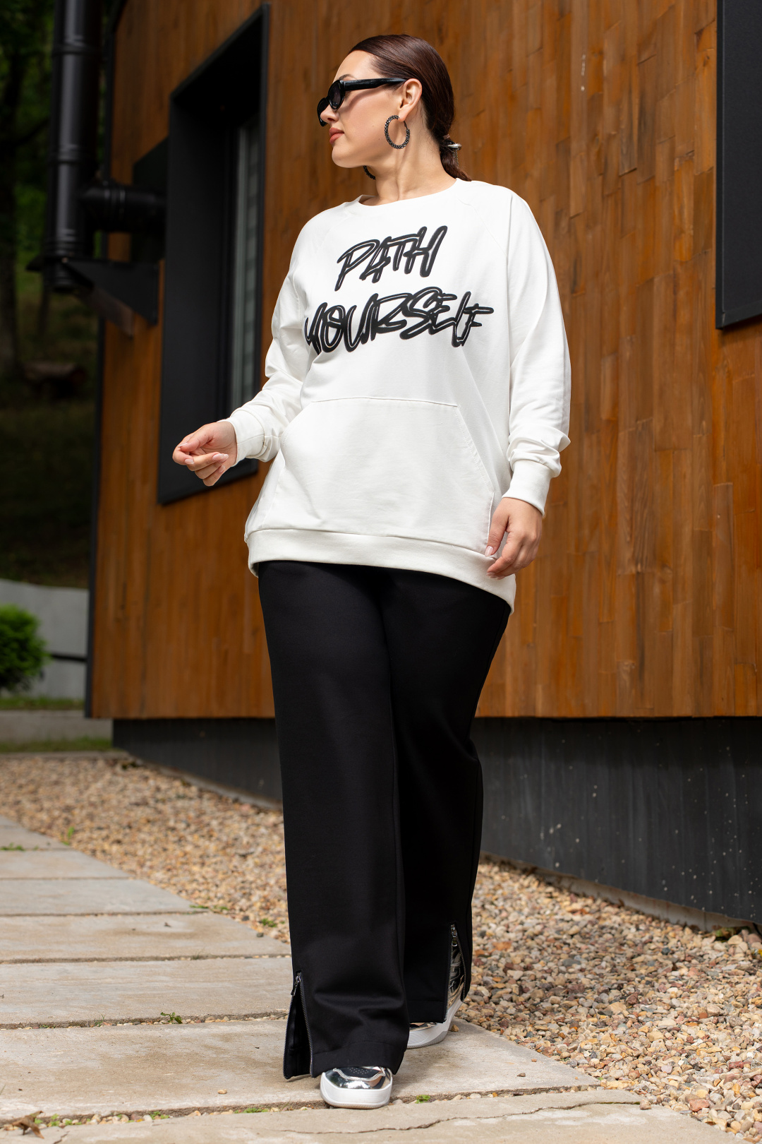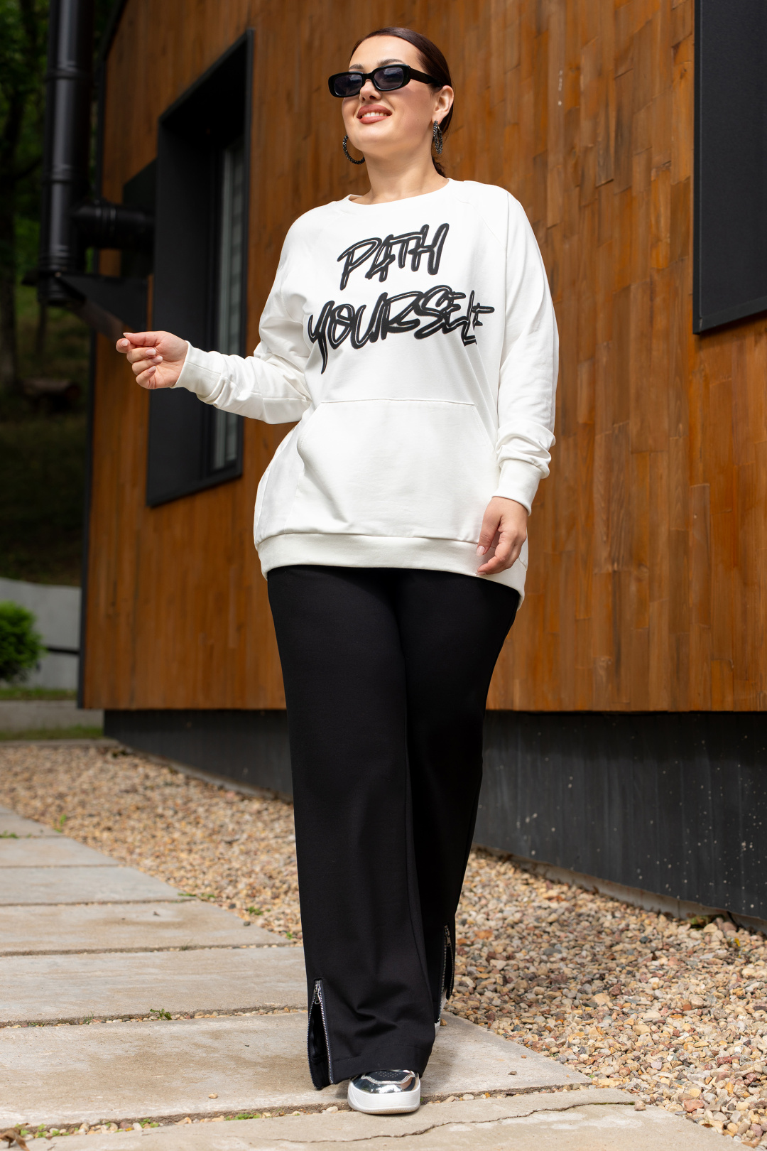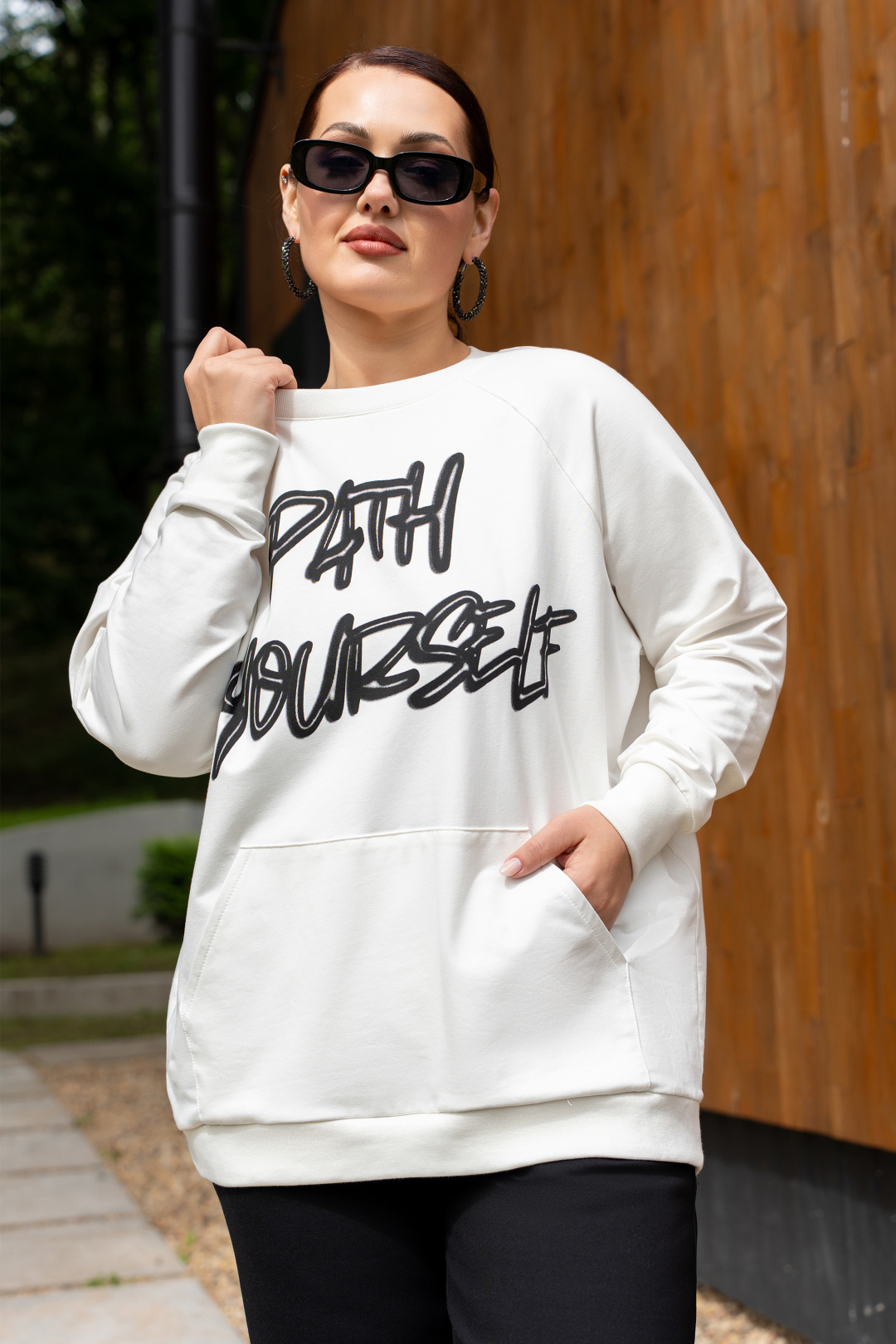 Джемпер прямого кроя с дизайнерской печатью, полочка с накладным карманом.Джемпер с притачными рукавами и манжетами.