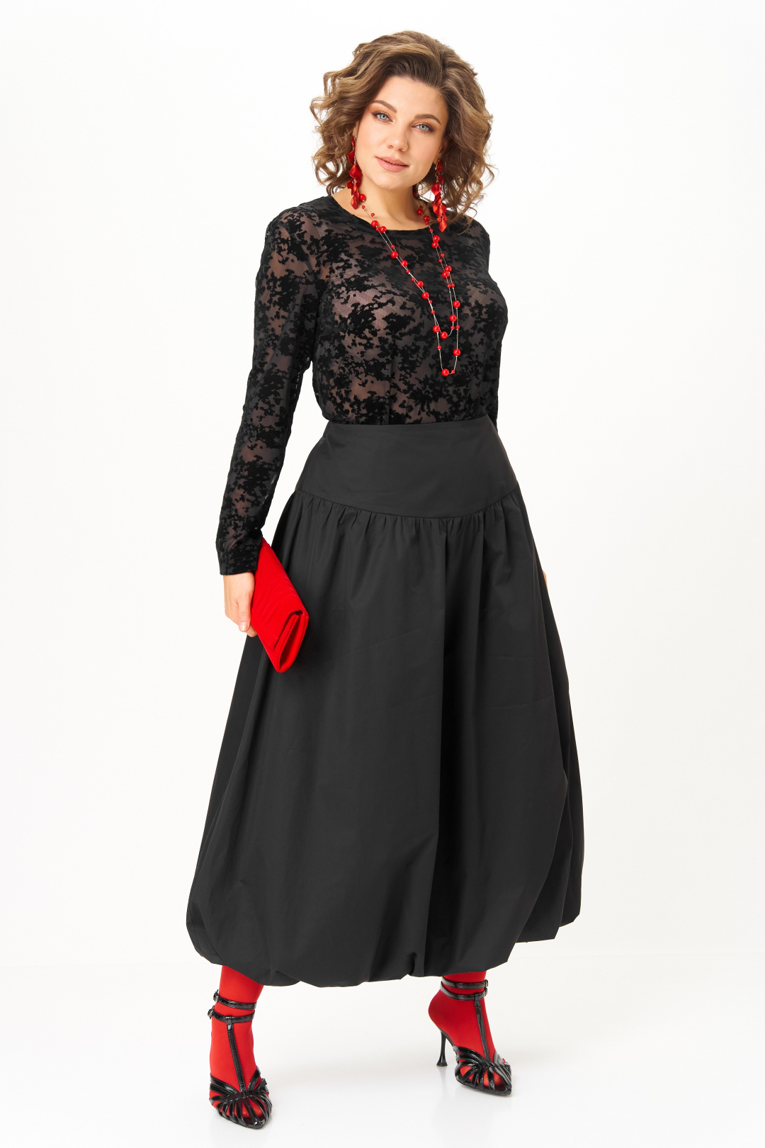 Эффектный комплект-двойка для женщин, которые любят быть в центре внимания. Идеален для торжественных мероприятий, театральных премьер, фотосессий и особых выходов. Комплект построен на игре текстур и контрастов. Топ полуоблегающего силуэта, длина ниже талии. Ткань — тонкая эластичная сетка-стрейч телесно-бежевого цвета. Принт — крупные бархатные (флокированные) розы, выполненные в технике devoré. Рисунок объёмный, бархат мягкий и приятный на ощупь. Горловина круглая, обработана узкой обтачкой. Рукав втачной длинный, заканчивается на запястье. Юбка «баллон» C кокеткой и застежкой в среднем шве заднего полотнища. По поясу спинки резинка, благодаря которой юбка комфортно сидит на любой талии.