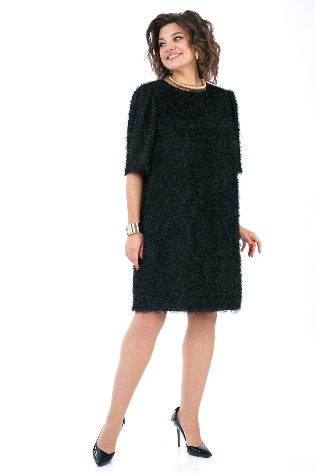Платье А- образного силуэта, на подкладке. Перед с нагрудными выточками. Спинка со средним швом с разрезом и застёжкой на навесную петлю и пуговицу. Рукава втачные, одношовные, короткие.