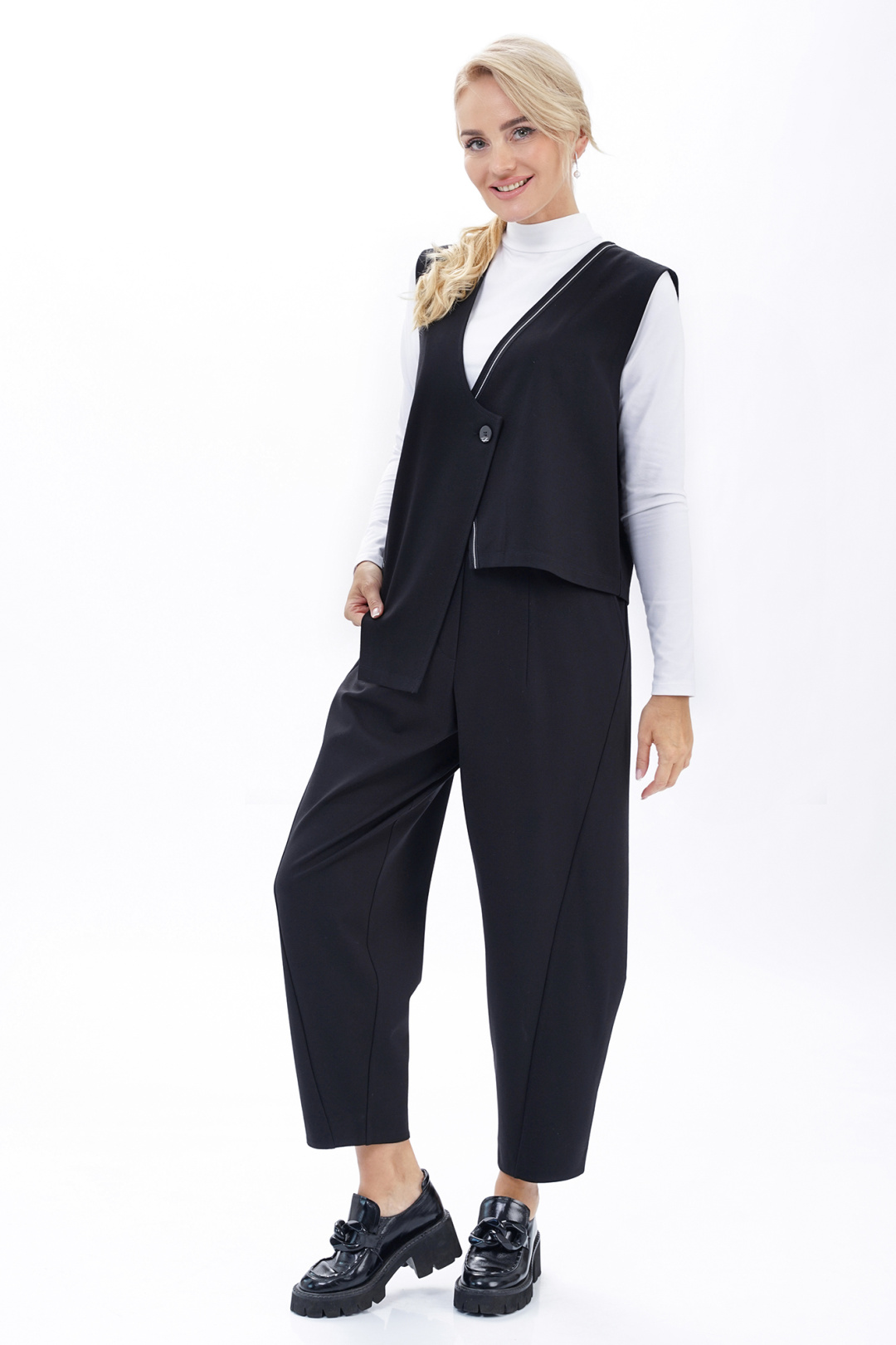 Комплект женский 3-х предметный состоит из жилета, блузы и брюк.