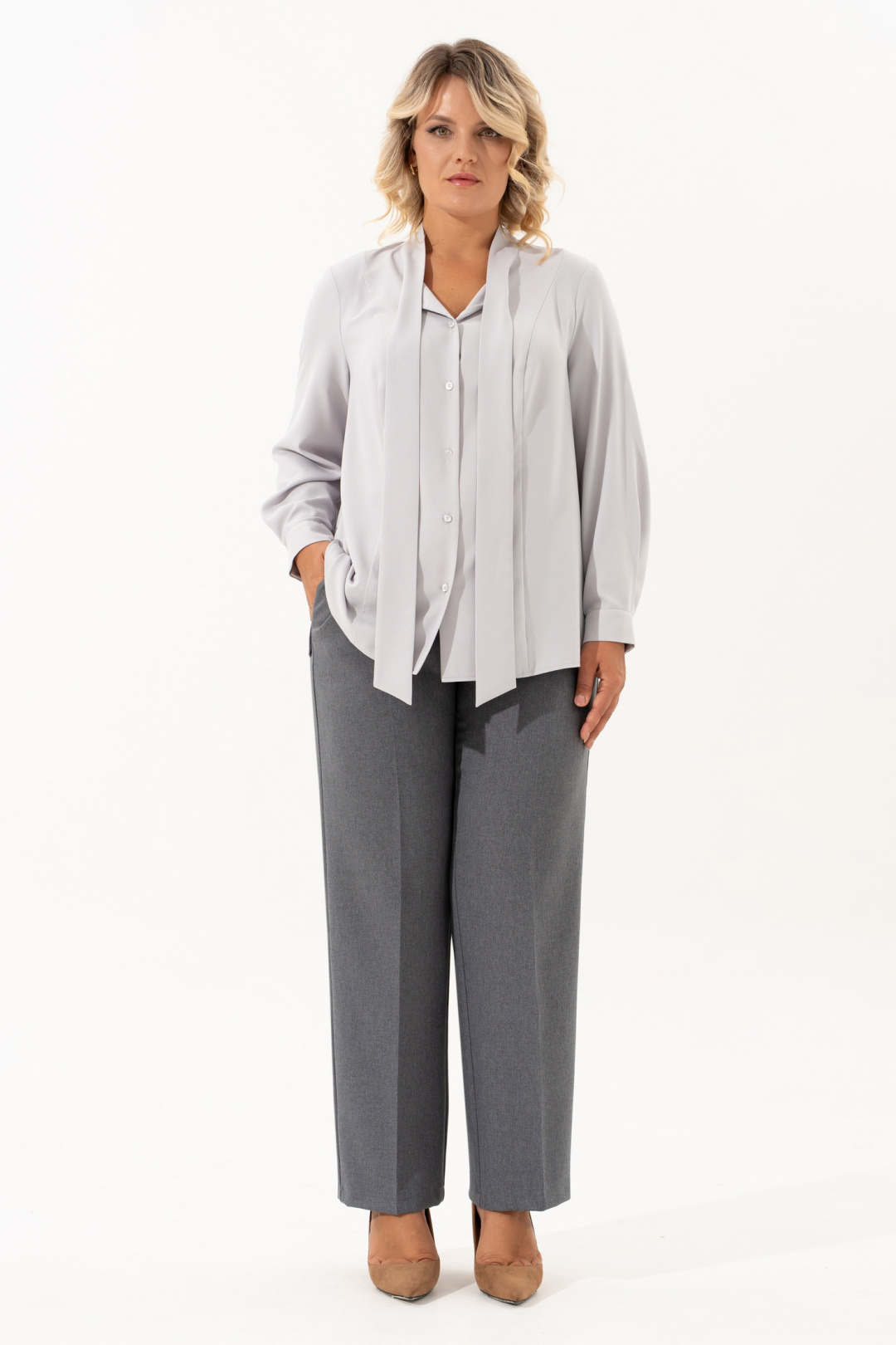 Нарядно- повседневный комплект это идеальное решение для Вашего гардероба. Комплект состоит из трех предметов - прямые брюки с высокой посадкой прямого кроя на молнии и на резинке, с боковыми карманами сочетаются с любыми базовыми вещами. Универсальный классический жилет с V-образным вырезом горловины превосходно садится по фигуре, на правой полочке обработан прорезной карман с листочкой, на левой разрез , застежка обработана на отлетном хлястике ,на петлю и пуговицу. Этот элемент делает его более интересным. Жилет на подкладке . Ассиметричный жилет можно одевать поверх тонкой одежды. Прекрасная классическая блуза с воротником - бантом имеет прямой крой, поэтому отлично подходит для любого типа фигуры. Спинка со средним швом. По переду блузы есть рельефы от плечевого шва, в боковых швах - небольшие разрезы. Блуза изготовлена из приятной к телу ткани, гладкая фактура не мнётся и сохраняет свой первоначальный вид даже после многократных стирок. Рукав втачной, одношовный, длинный с манжетой на две петли и пуговицы. Комфортная модель для работы и просто для повседневного применения, так и к композиции нарядного ансамбля. Элегантная блуза с бантом - утончённая универсальность, комфорт. Базовый брючный комплект идеален для повседневного образа- деловая встреча, в офис. Современный комплект также будет хорошо смотреться как вечерний наряд на различные мероприятия, праздники, день рождения, корпоратив. Шикарный нарядный станет незаменимым в Вашем гардеробе . Этот комплект подчеркнет Вашу уверенность и стиль. Длина брюк (см): 105 Длина жилета (см): 74 Длина блузы (см): 69 Длина рукава блузы (см): 62