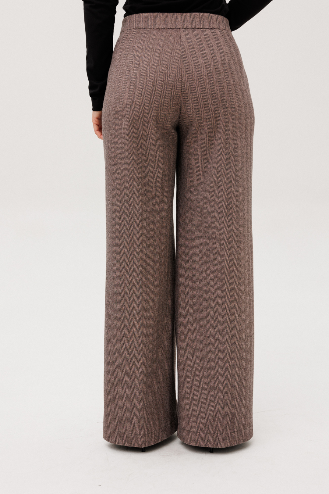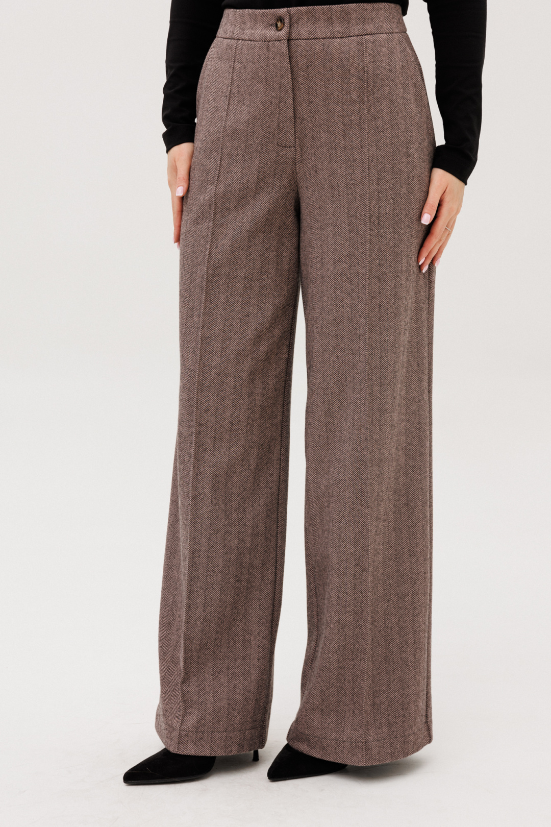 Костюм двухпредметный :жакет свободного силуэта с регулирующей кулисой по линии талии.Застежка на петлю пуговицу.По переду действующие накладные карманы.Изделие на подкладке. Элегантные женские брюки прямого кроя ,по переду на брючинах стрелки. Модель с высокой посадкой на притачном поясе обеспечивает идеальное прилегание. Спереди расположена практичная застежка на тесьму-молнию, добавляющая удобства при носке. Брюки укомплектованы функциональными боковыми карманами, что придает модели дополнительную практичность и удобство. Эта модель идеально подойдет как для офиса, так и для создания повседневных стильных образов.Джемпер женский прилегающего силуэта с втачным одношовным рукавом с воротником-стойкой