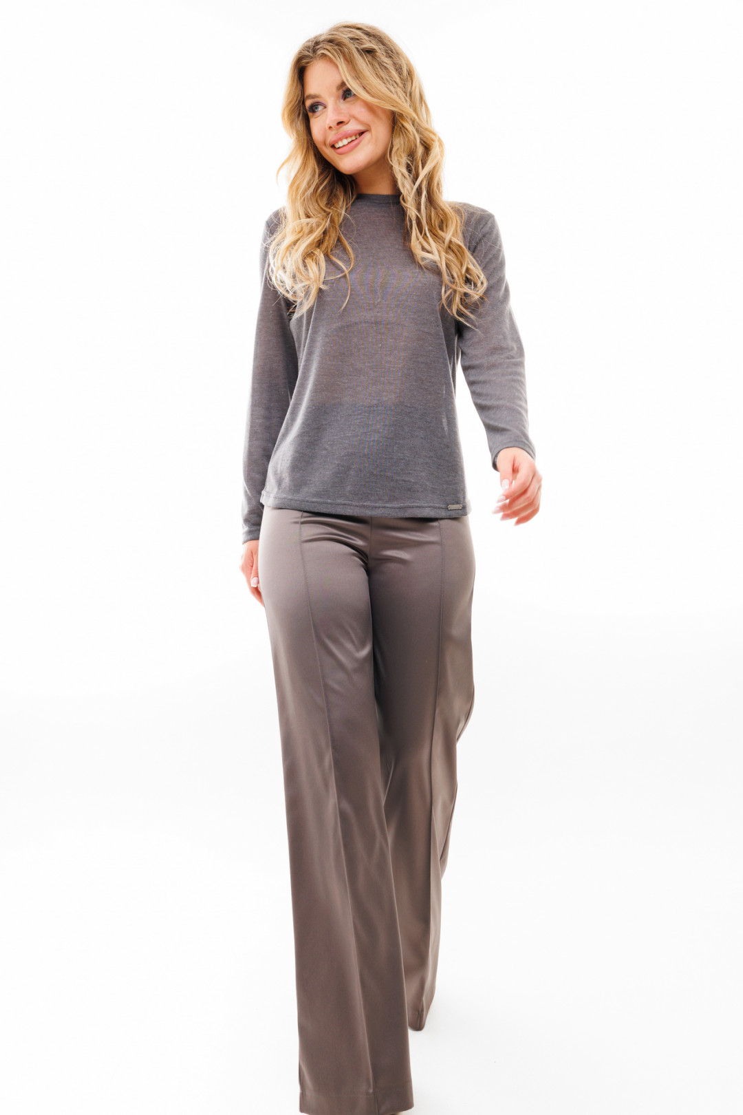 Элегантные, с высокой посадкой и красивым облеганием бедра брюки. Застроченные стрелки прилают стройности и шика. Низ брюк умеренно широкий. Ноги при таком крое учеличиваются в длине. Застежка на потайную тесьму-молнию в боковом шве.