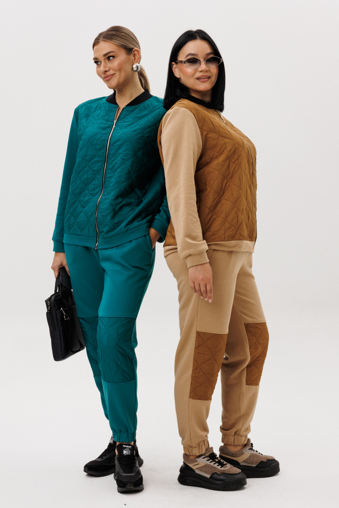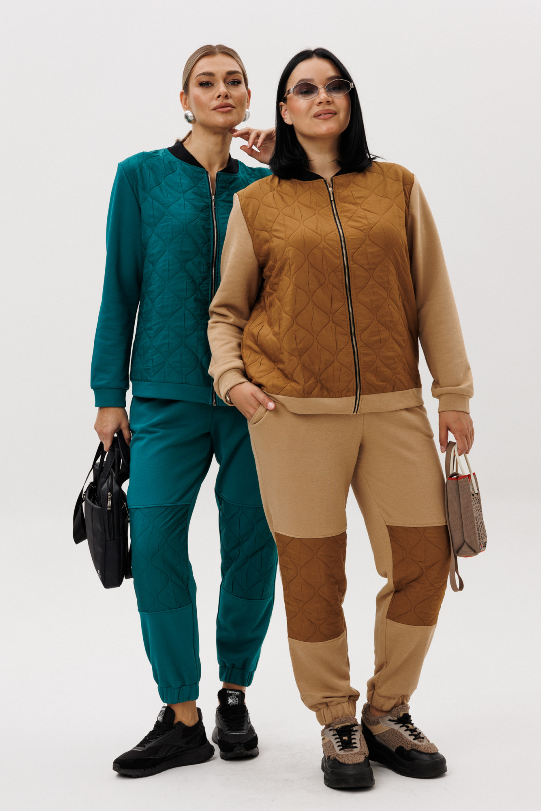 Стильный женский спортивный костюм из стежки и трикотажного футера от Anastasia станет незаменимой частью гардероба для активного отдыха и повседневной носки каждой модницы. Выполнен из высококачественного футера трехнитка и стильной стеганной ткани. Состоит из полуприталенного джемпера и спортивных брюк - джоггеров с высокой посадкой и боковыми карманами. Материал теплый и приятный, отлично подойдет для прохладной летней погоды, а прохладными осенними вечерами заменит собой куртку ветровку или толстовку. Эластичные манжеты на рукавах и по низу брючин, а также мягкая резинка на поясе обеспечивают комфортную посадку и носку и не будут стеснять движения. Наслаждаться спортивными активностями будет комфортно. Комбинирование стеганной ткани и трикотажа создает гармоничный индивидуальный образ. Костюм спортшик подходят для различных видов деятельности: от утренних пробежек до поездок по городу на велосипеде или встреч с друзьями в кафе. Подойдет как для взрослых женщин и девушек, в том числе кто предпочитает большие размеры, так и для девочек подростков. Ткань долговечная, простая в уходе, не мнется и не скатывается, а оригинальный дизайн - стежка позволит всегда оставаться в центре внимания! Независимо от того, занимаетесь ли вы спортом, ходите в такой одежде дома или просто хотите выглядеть стильно и модно - наш костюмчик станет верным спутником. Почувствуйте себя уверенно и комфортно с стильным костюмом от "Анастасия"! Комплект без подклада, не на флисе, без начеса, ткань не просвечивает. Длина джемпера по спинке: (60)-61см, (62-66)-63см. Длина рукава: (60)-63см, (62-66)-64см. Длина брюк: (60)-99см, (62-66)-102см
