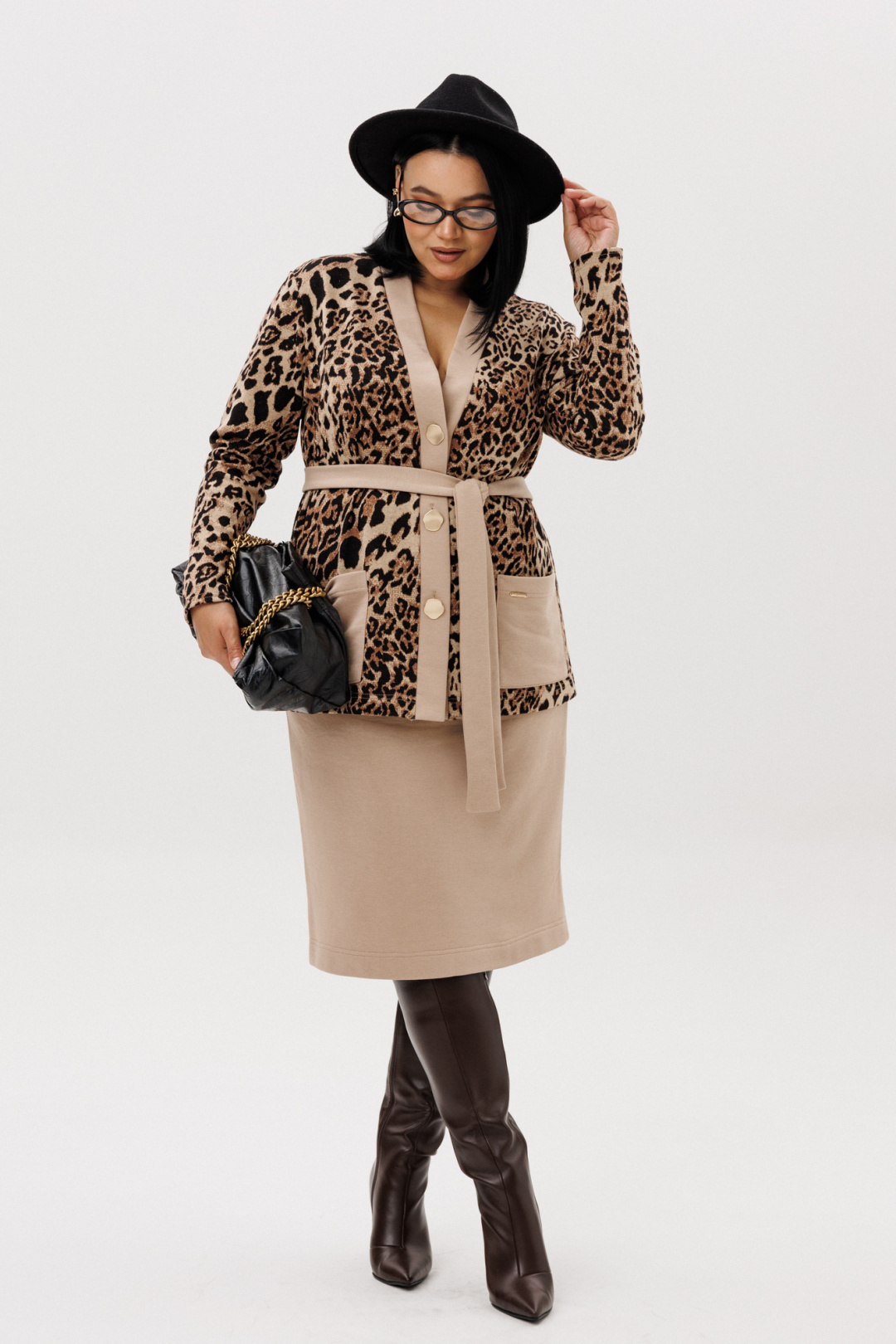 Комфортный и практичный трикотажный женский комплект от бренда Anastasia, идеальный для любого случая. Этот комплект сочетает в себе элегантность и комфорт, что делает его подходящим как для деловых встреч или прогулок. Комплект состоит из жакета и юбки. Жакет прямого силуэта. Застежка- планка с пуговицами. По полочке идут накладные карманы. Рукав втачной, одношовный. Подчеркнуть талию можно съемным поясом. В качестве декора- брендированная нашивка на кармане, перекликающаяся с золотыми пуговицами. Стильный комплект отлично подойдет для долгих прогулок или для работы, для офиса. Юбка -миди создает чувственный образ благодаря своей длине, придающей женственность и элегантность вашему образу. Юбка зауженная к низу, по спинке идет разрез, пояс отрезной на резинке. Отдельный части костюма легко будут сочетаться с вещами из Вашего гардероба. Модель можно отнести к стилю кэжуал. Костюм можно носить с туфлями, кроссовками, сапогами или ботинками. Обязательно добавьте наш бренд в избранное и следите за новинками, распродажами, скидками и акциями! Хороших покупок от «Анастасия». Длина (по спинке):(50-54)- 68см, (56-60)-71 см. Длина рукава: (50-60)- 60см. Длина юбки: (50-54):- 59см, (56-60)- 62см.