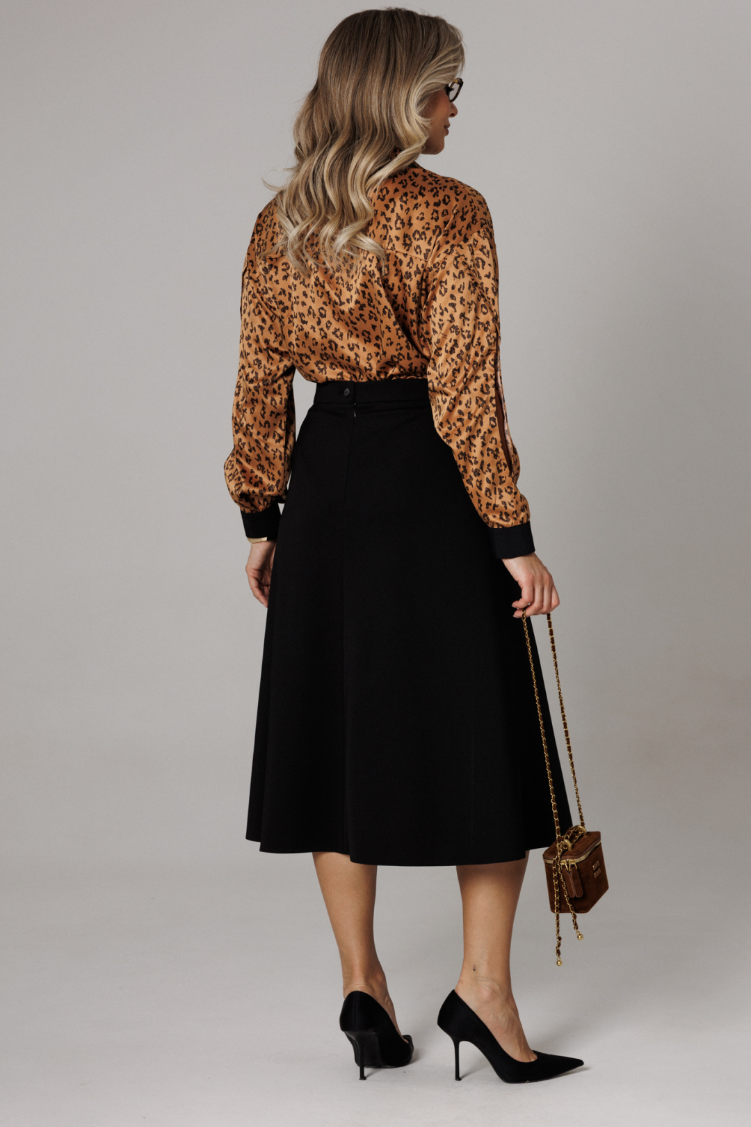 Оригинальный комплект женский 2-х пердментый (блузка, юбка) от бренда Anastasia, идеальный для любого случая. Этот комплект сочетает в себе элегантность и комфорт, что делает его подходящим как для повседновной носки, так и для праздничных мероприятий. Блузка из атласной ткани прямого силуэта со спущенным плечом. По бокам закругленные разрезы. Рукав с запахом и разрезом, на манжете. Застежка – планка на петли и пуговицы. Воротник на отрезной стойке. Стойка и манжета из отделочной ткани. По спинке идет отрезная кокетка. Такой женский офисный стиль можно носить, сочетая с другими вещами гардероба, создавая новые образы. Ткань атласная качественная и очень комфортная. Юбка А-силуэта, длинна миди. По передней части идет застежка-обманка с пуговицами. По бокам карманы. По спинке средний шов, переходящий в застежку молнию. Пояс отрезной . Длина по спинке: (48-52)-70 см, (54-58)-72 см. Длина рукава с манжетой: (48-52)-55 см, (54-58)-57 см. Длина юбки: (48-58)-80 см
