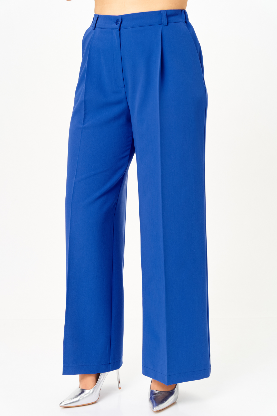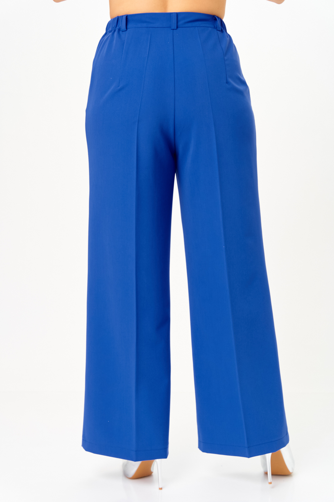 Костюм полуприлегающего силуэта, состоящий из жакета и брюк, выполнен из однотонной костюмной ткани. Ткань верха имеет механическое растяжение благодаря содержанию в ней эластана. Брючный костюм идеальный вариант на торжественные мероприятия.