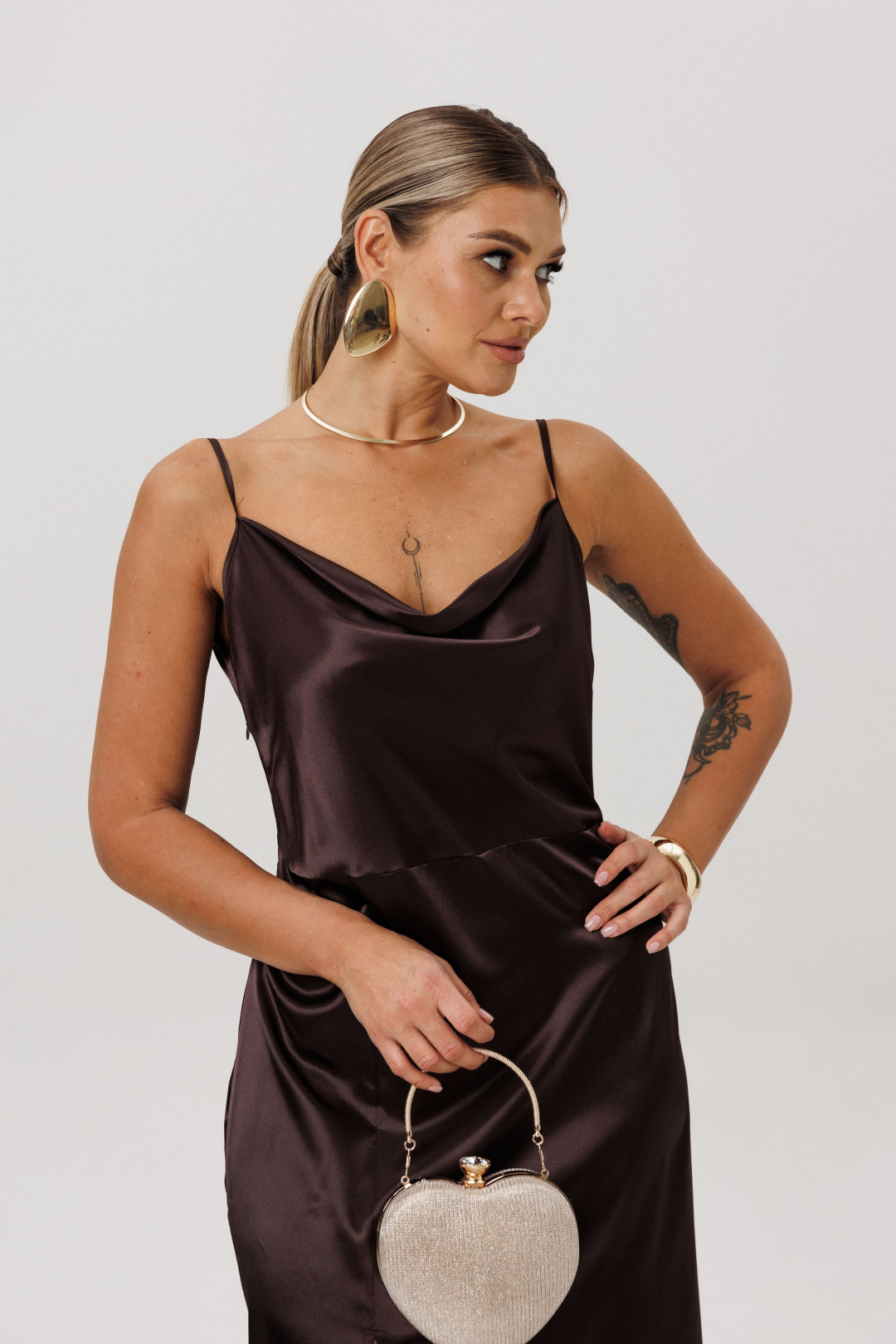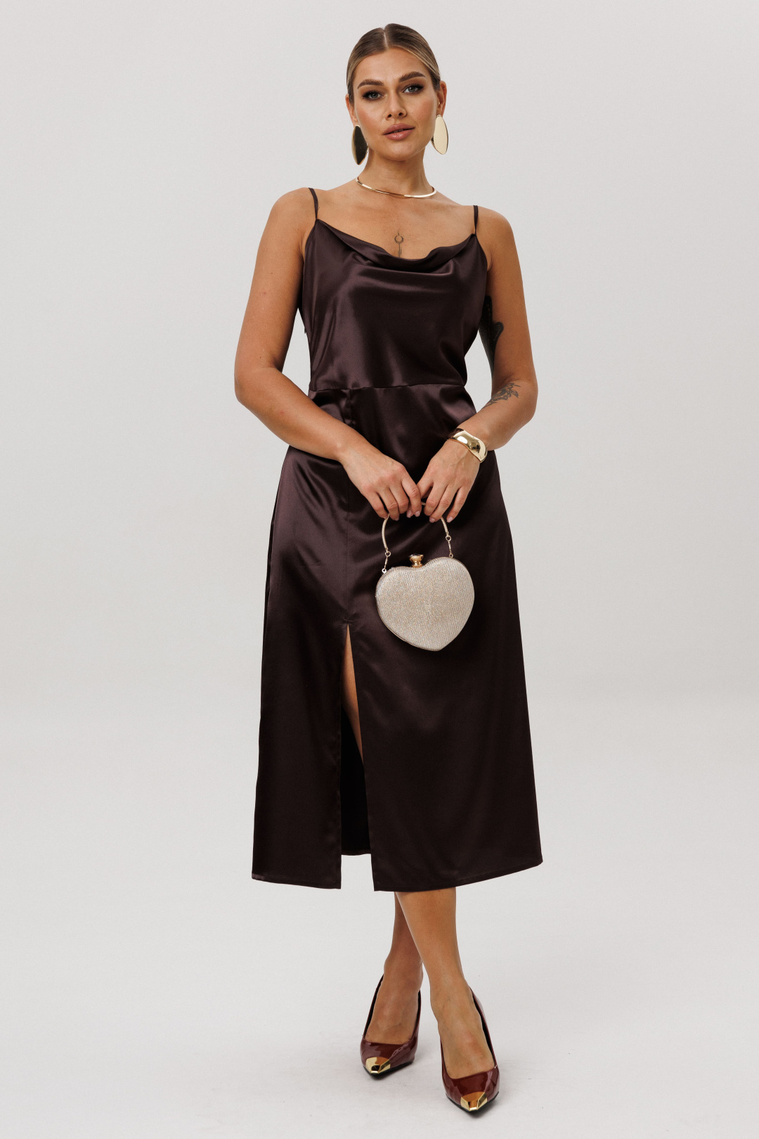 Платье в цвете «ореховый мокко» не оставит вас равнодушными, окунитесь в эту магию, и ваш вечер будет незабываемым.