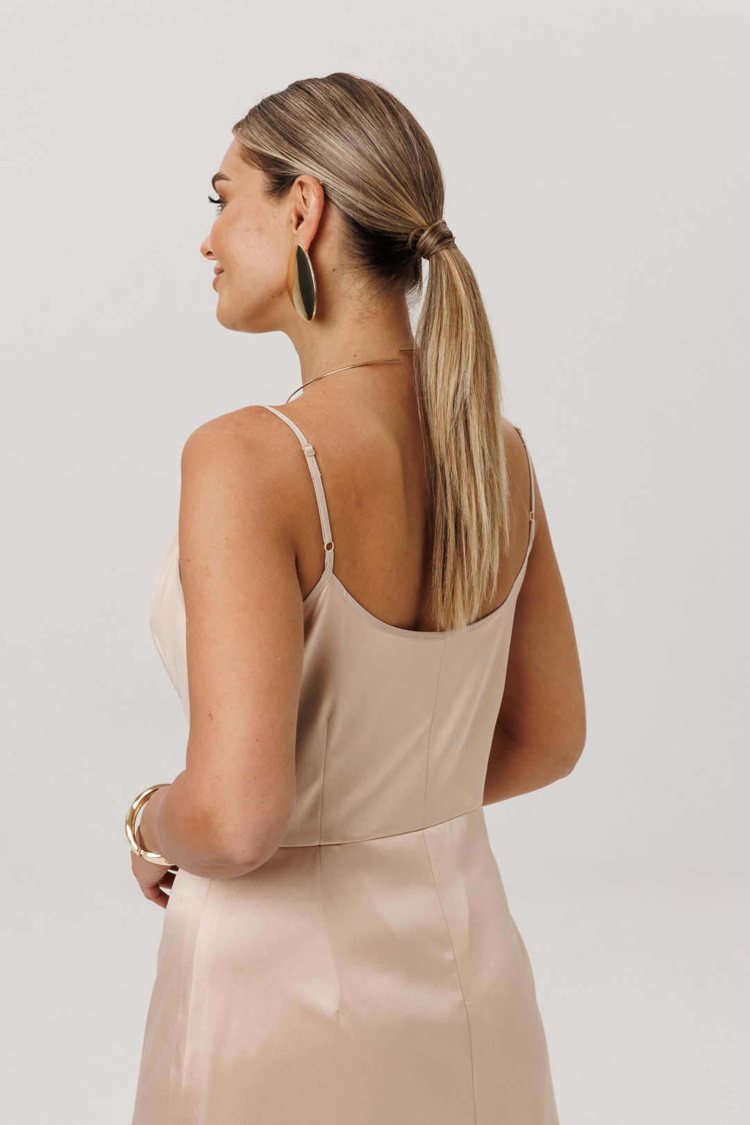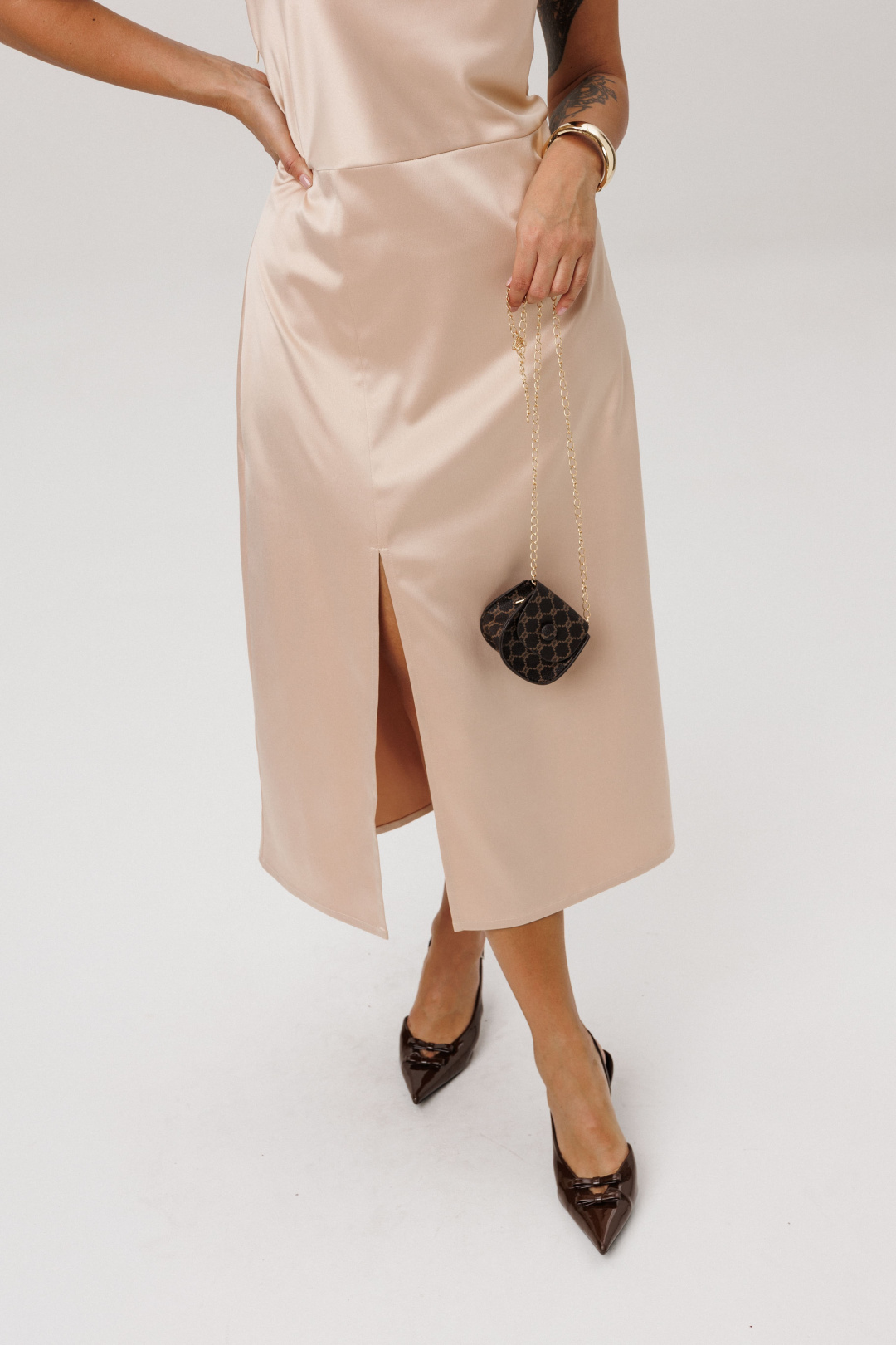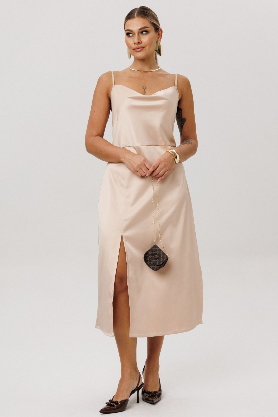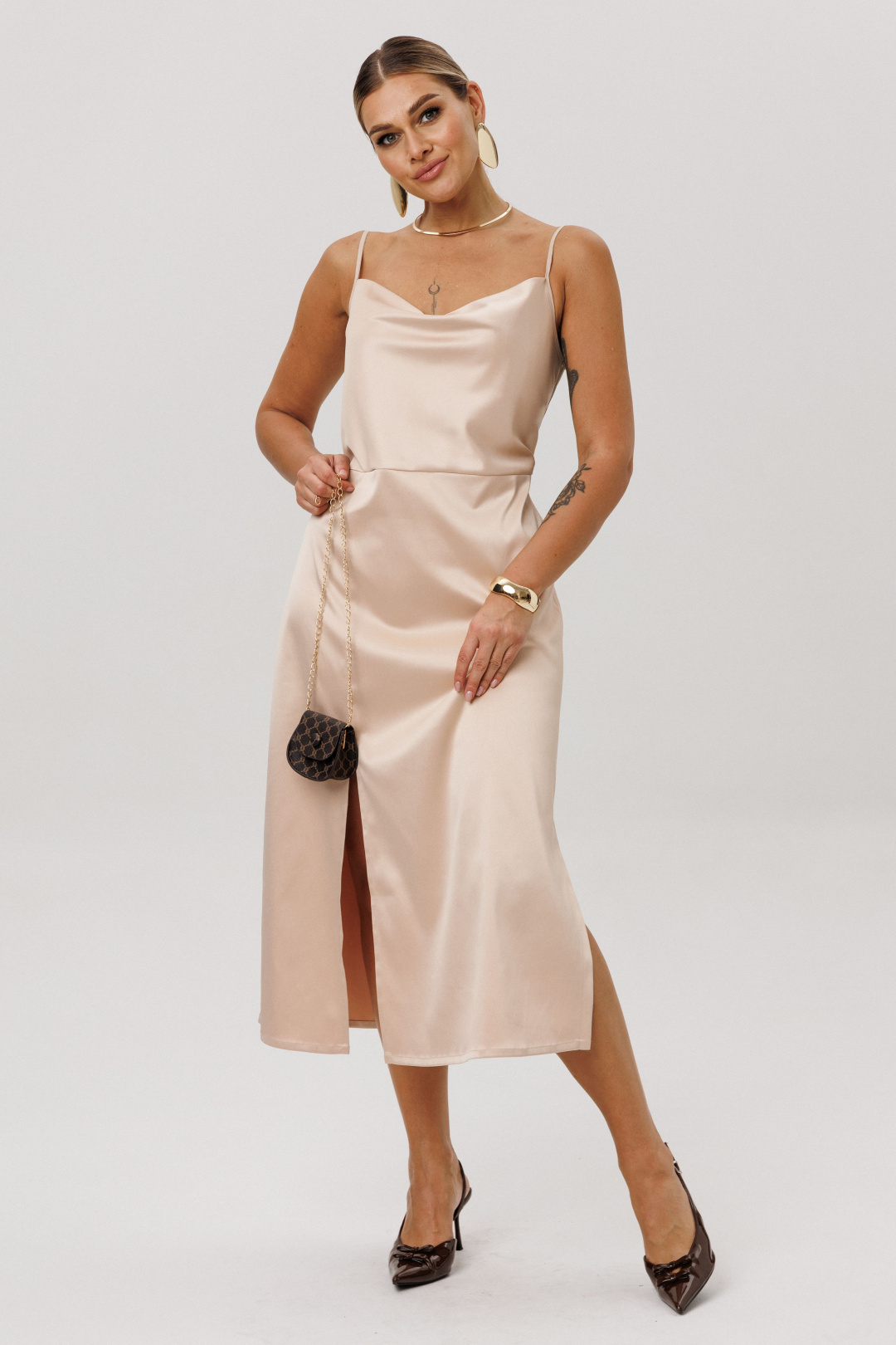 Платье в цвете «сливочный латте» не оставит вас равнодушными, окунитесь в эту магию, и ваш вечер будет незабываемым.