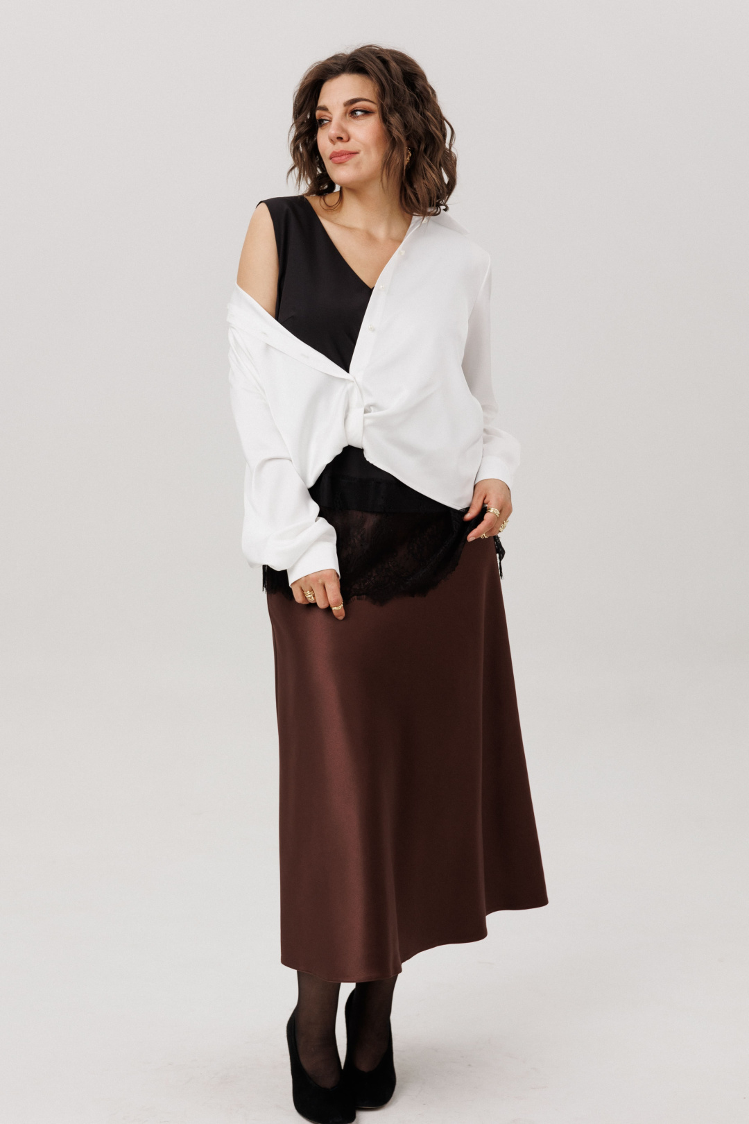 Эта рубашка создана стать главной героиней вашего гардероба. Она с лёгкостью сочетается с классическими брюками, создавая образ для важных встреч, или с простыми джинсами, мгновенно поднимая их до уровня утончённого стиля. Идеальное комбо с топом с кружевом 1664, этот дуэт открывает пространство для тонких экспериментов.