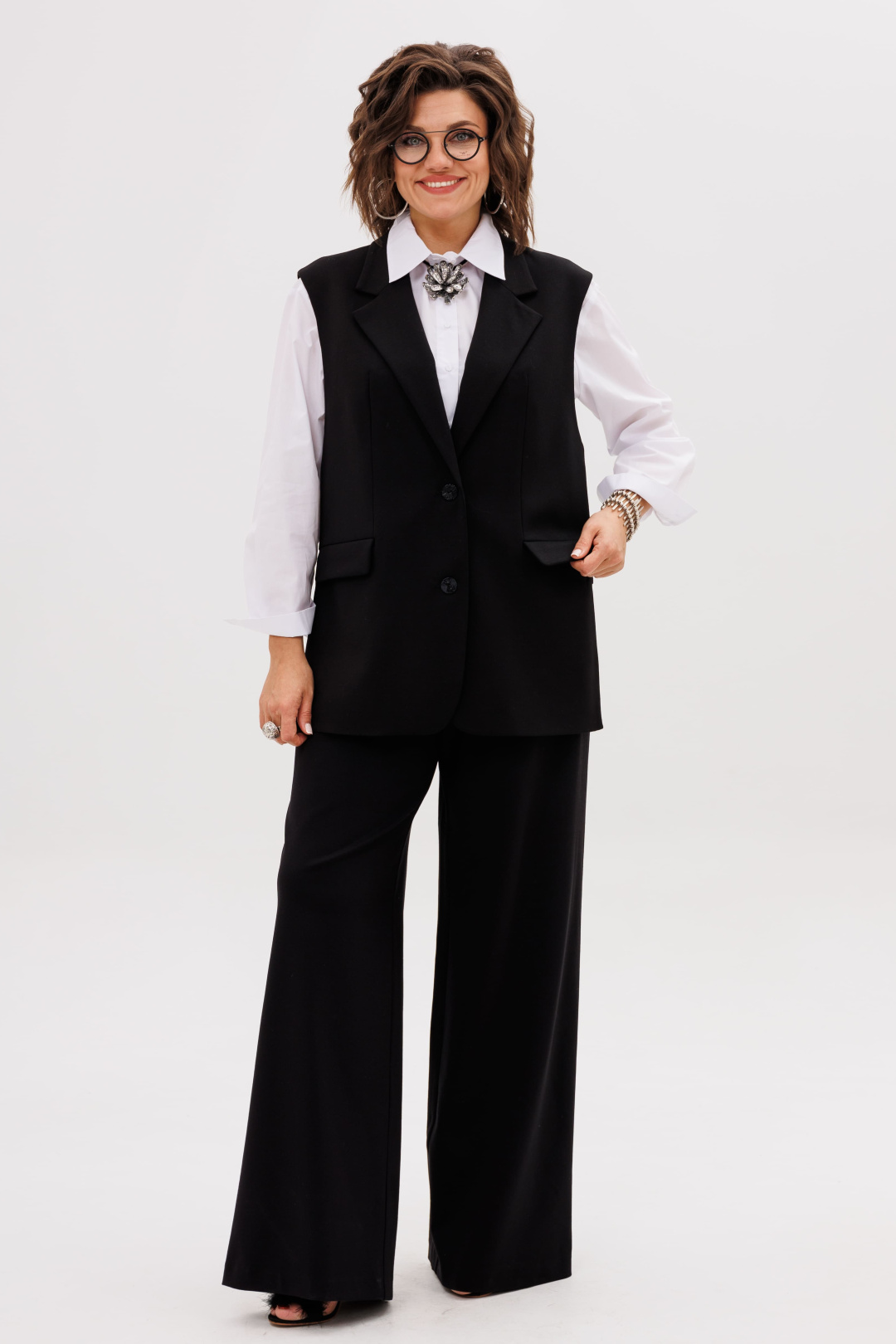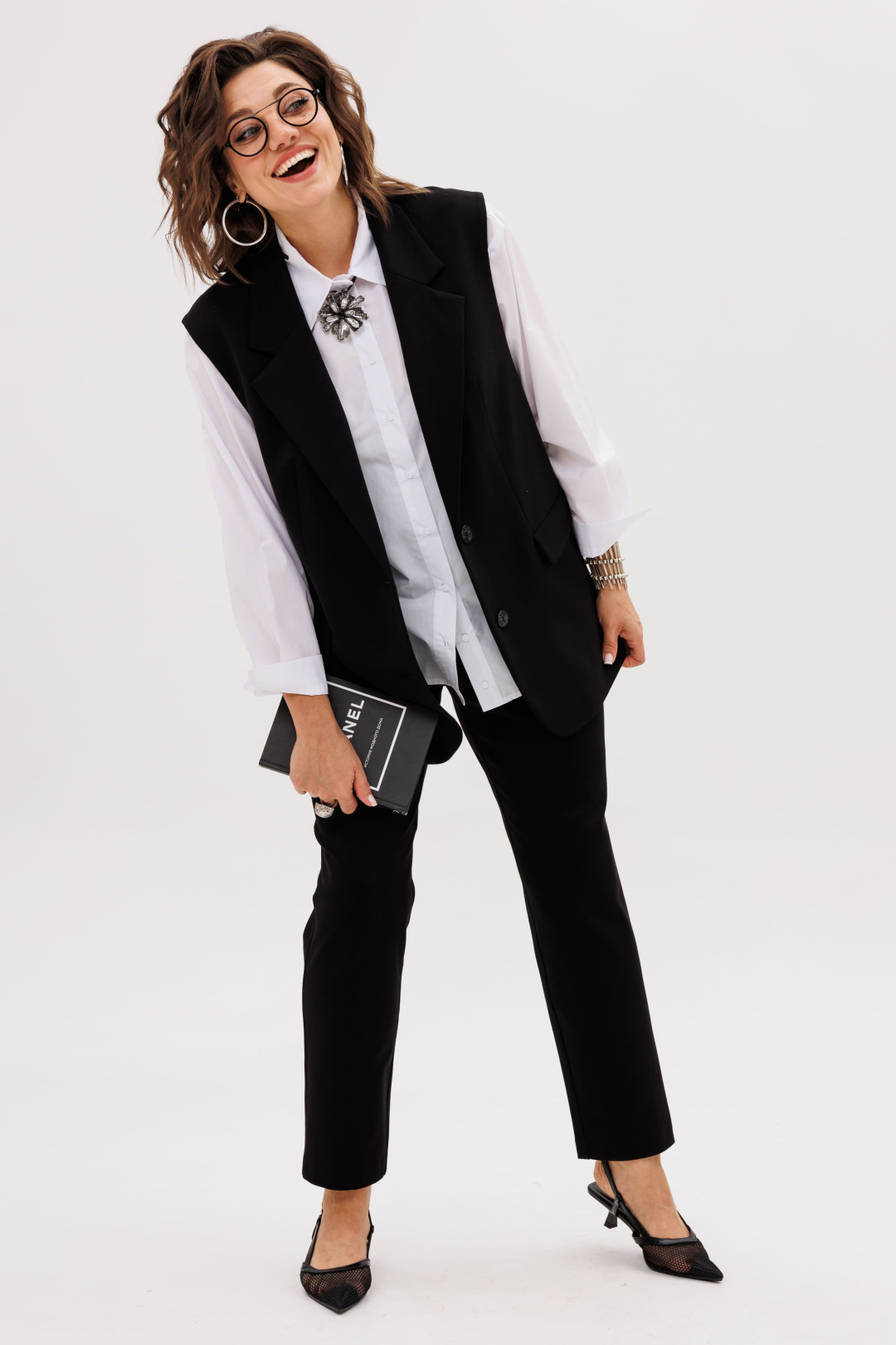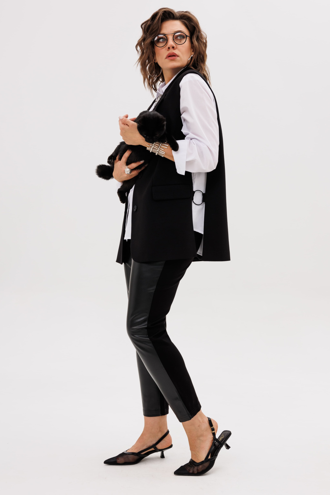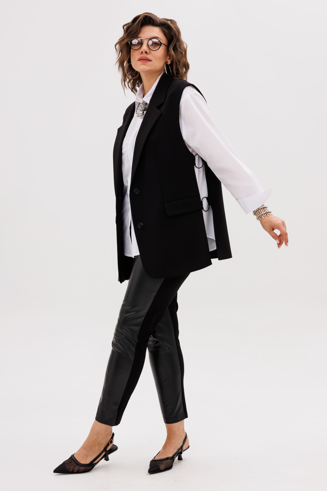 На модели рубашка 1412.1, трикотажные брюки палаццо 1425, юбка 1420, брюки 518.1, 1702 и 1743, легинсы 1436.