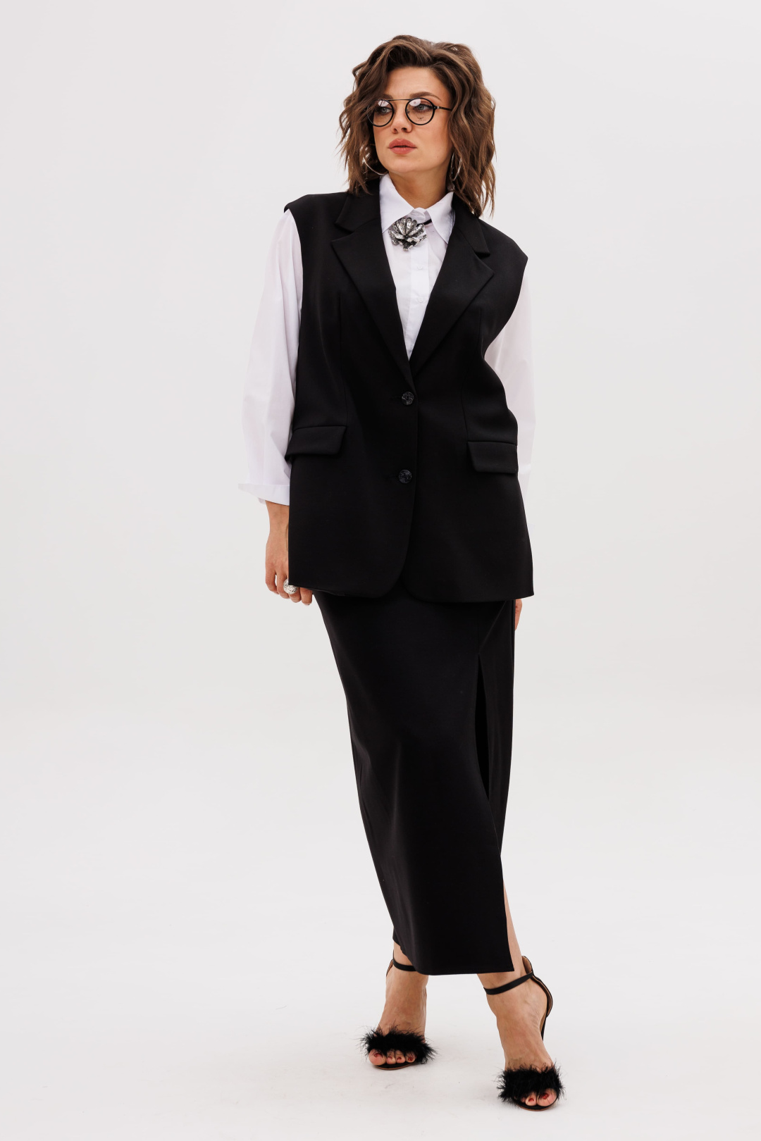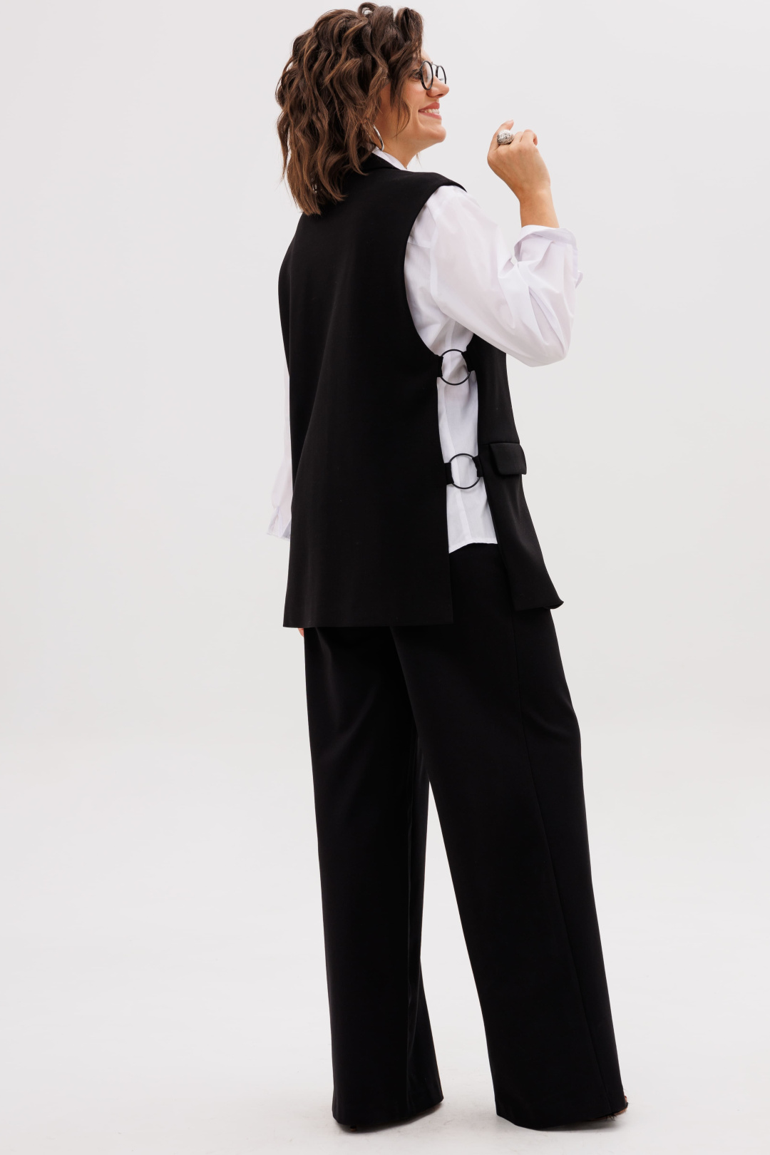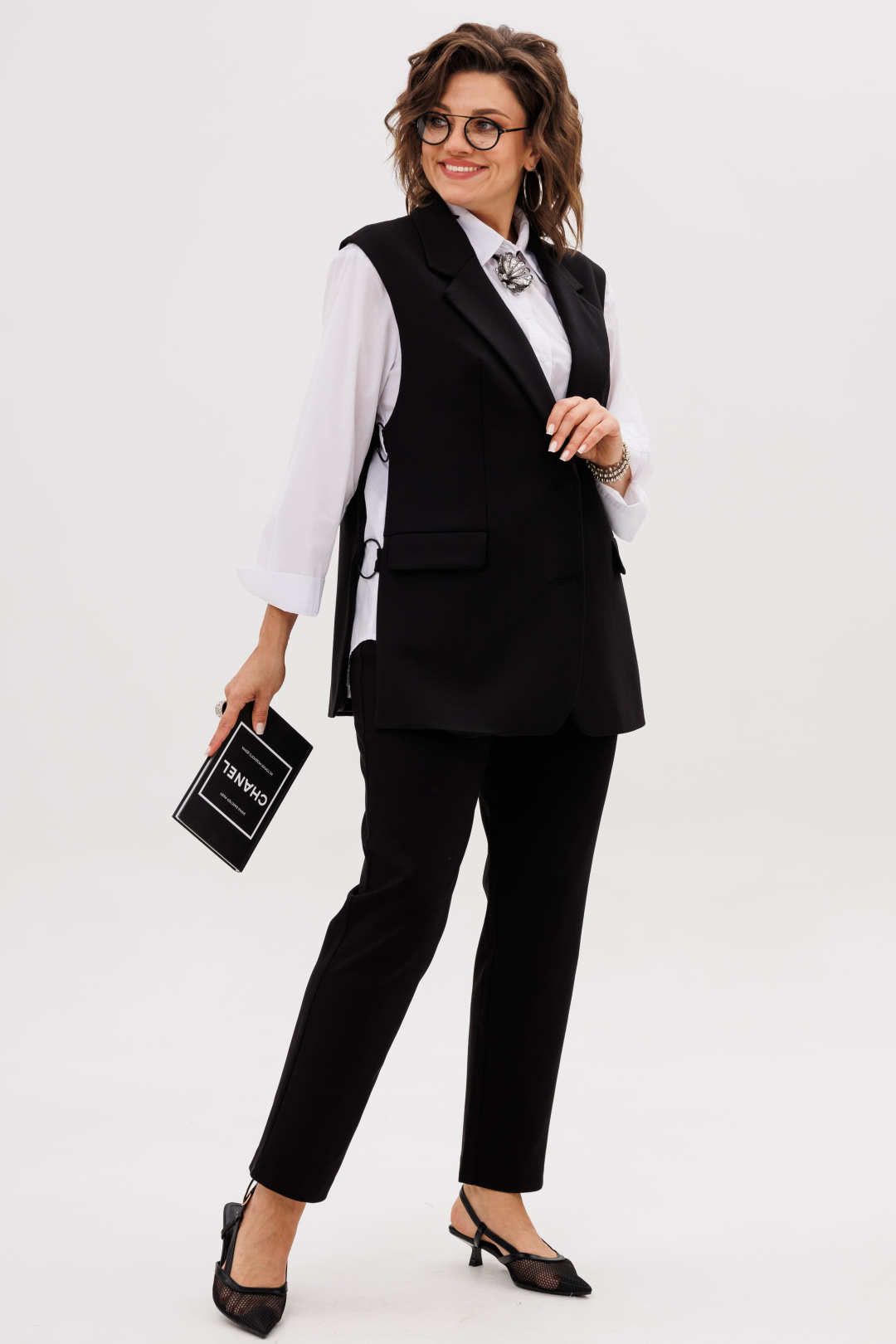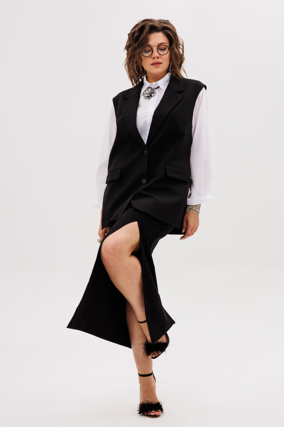 На модели рубашка 1412.1, трикотажные брюки палаццо 1425, юбка 1420, брюки 518.1, 1702 и 1743, легинсы 1436.