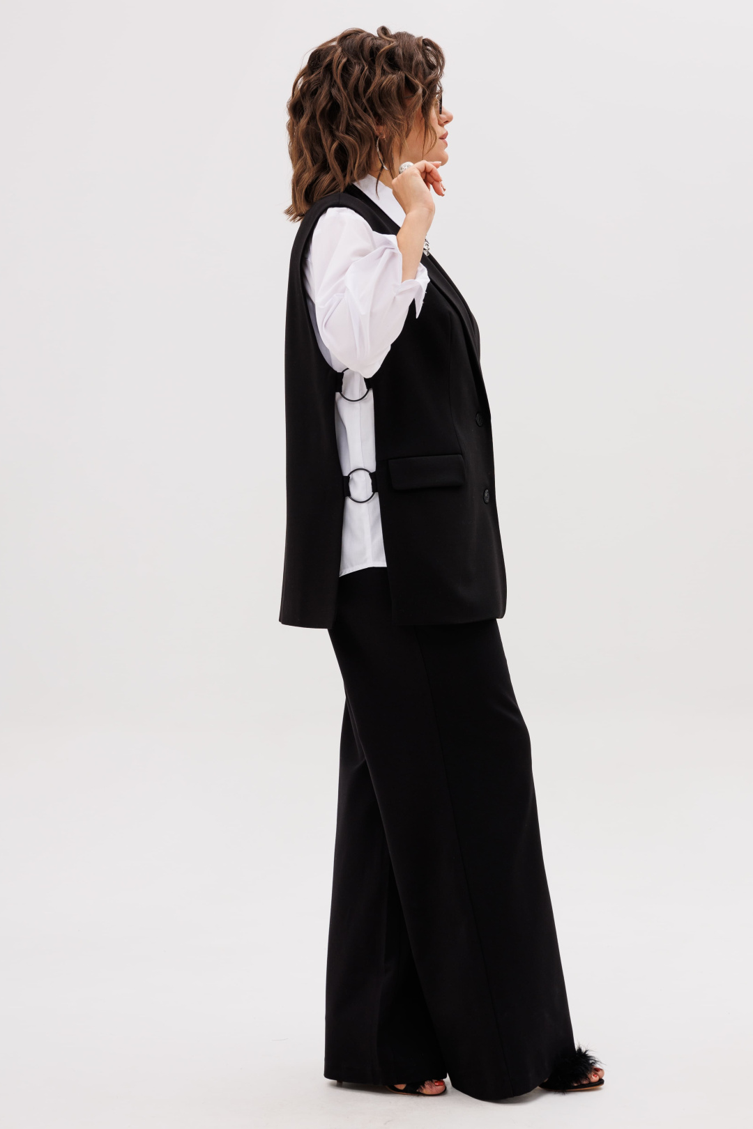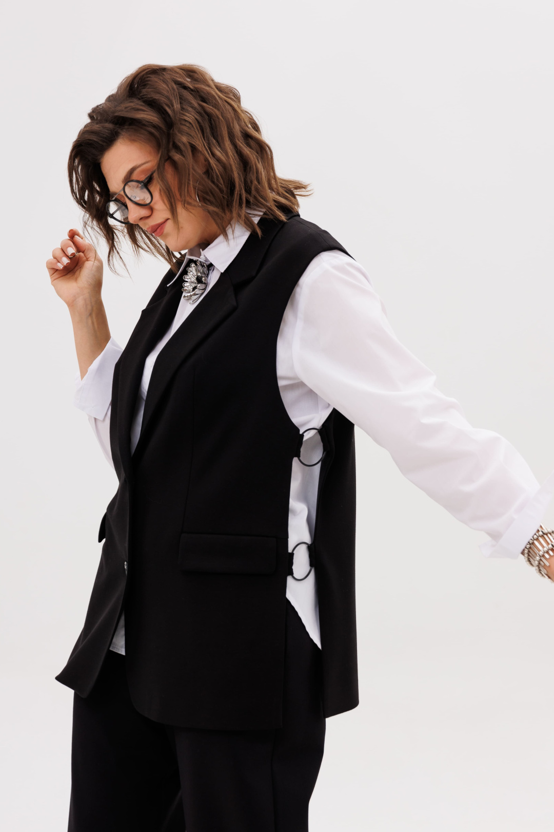 Этот элегантный трикотажный жилет, получивший гордое имя «Властелин колец», станет ключевым элементом вашего гардероба. Его строгий прямой силуэт и подкладка обеспечивают безупречную посадку, а пиджачный воротник с отложными лацканами придает образу солидность и завершенность.