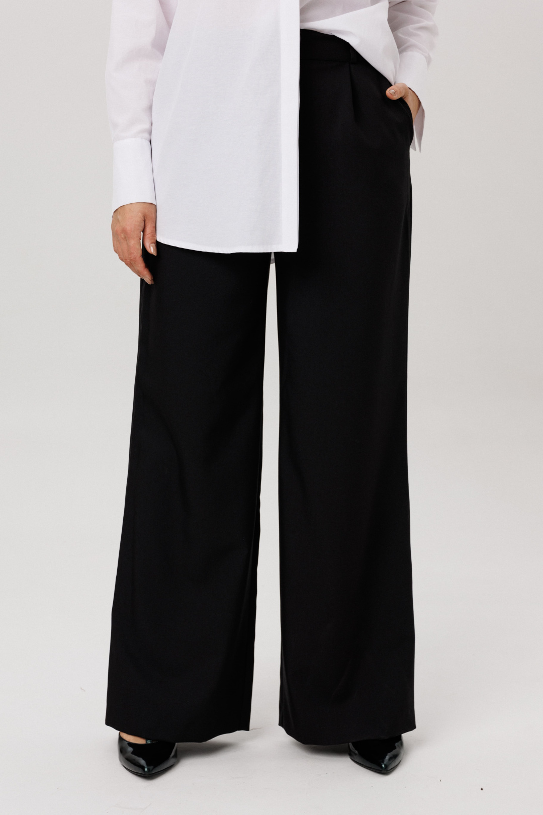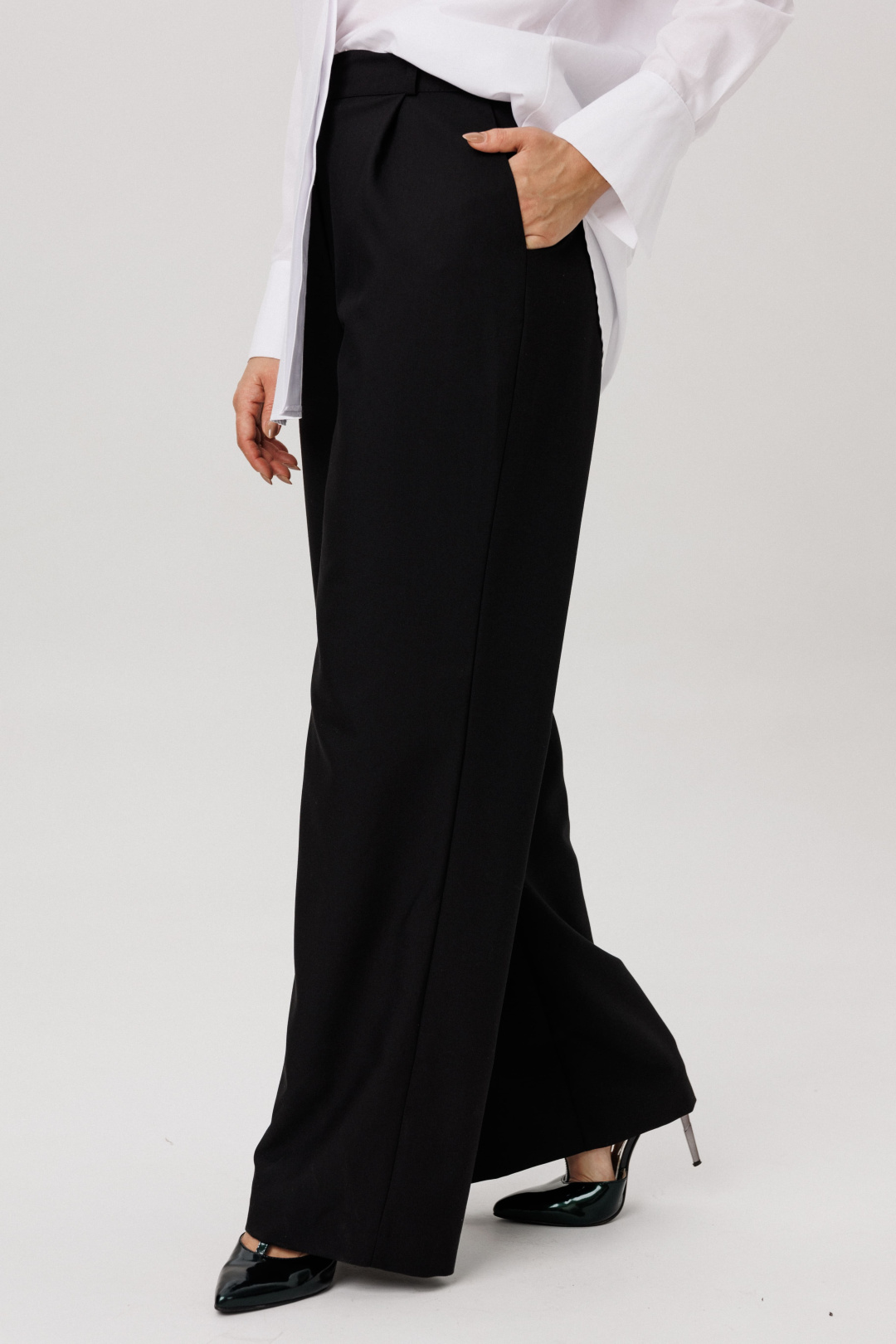 Широкие, струящиеся силуэты, мягко ниспадающие от талии, создают эффект роскошного движения с каждым шагом. Глубокий, насыщенный черный цвет – властный и невероятно притягательный – мгновенно приковывает взгляды, делая вас центром внимания в любой обстановке.