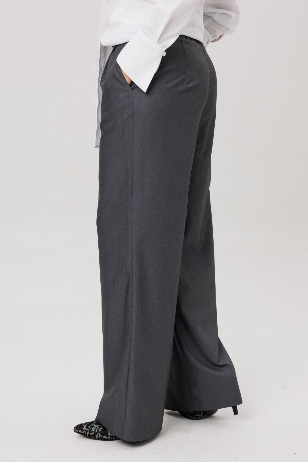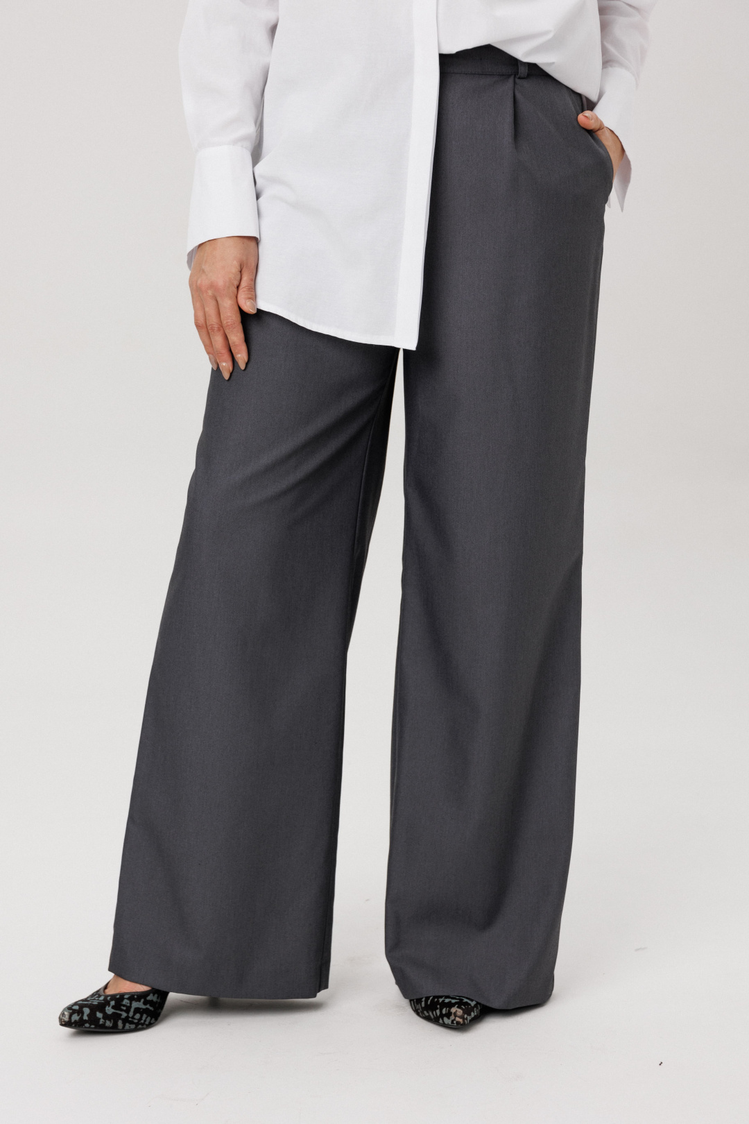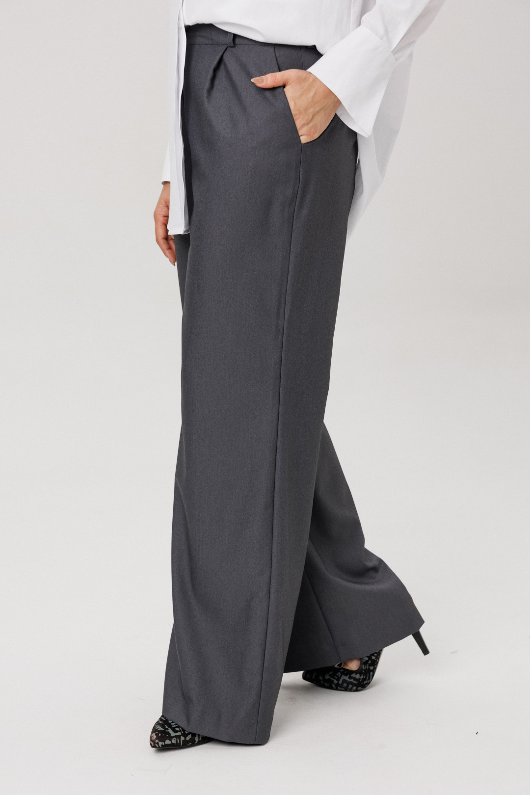 Широкие, струящиеся силуэты, мягко ниспадающие от талии, создают эффект роскошного движения с каждым шагом, серый цвет – официальность и в тоже время легкость.