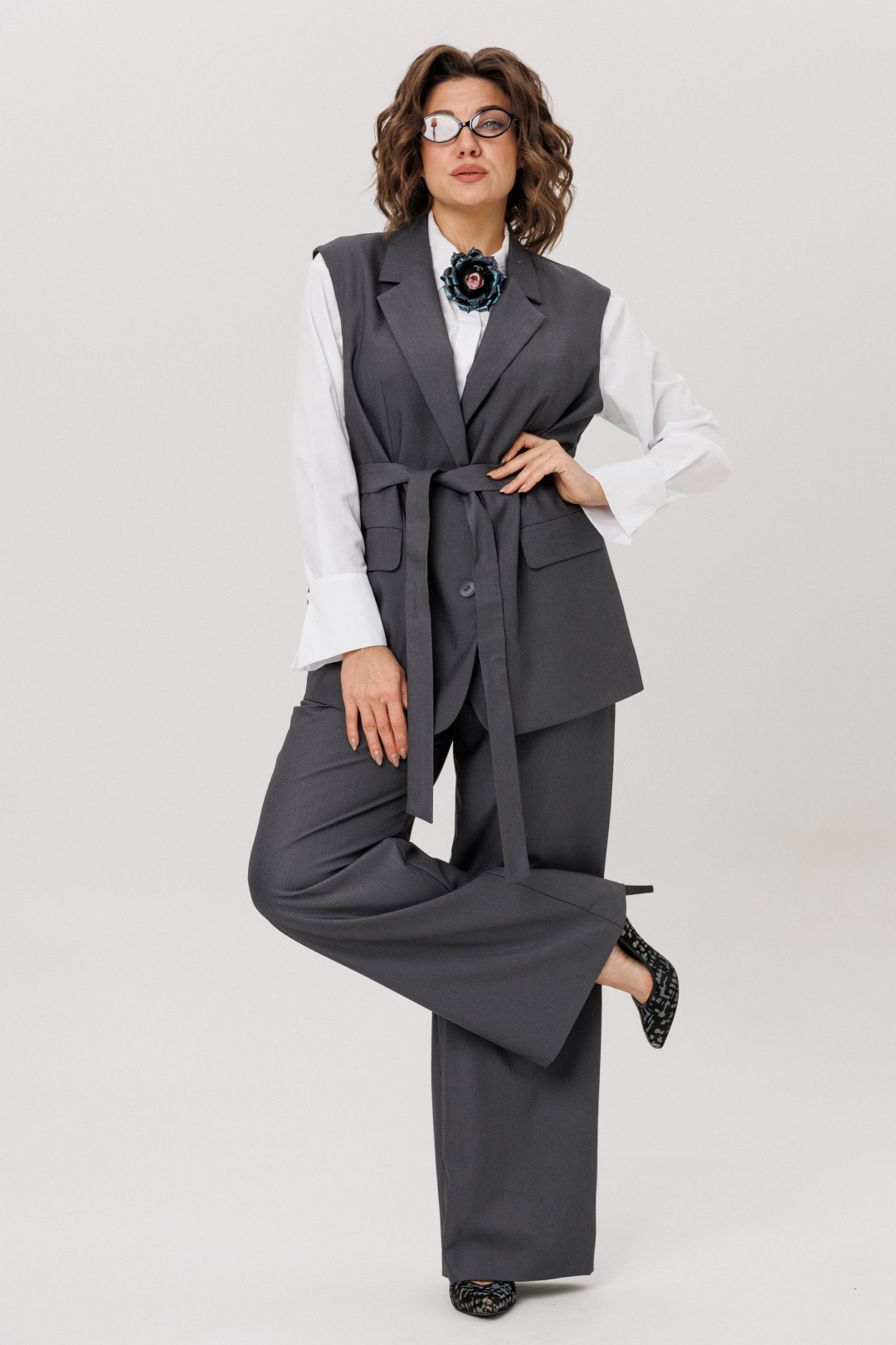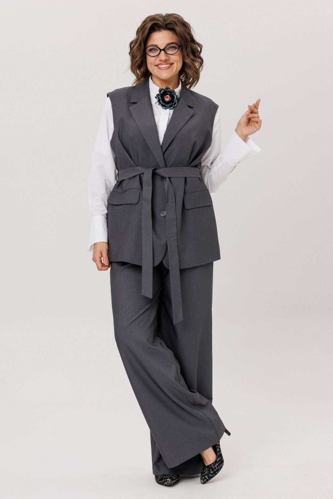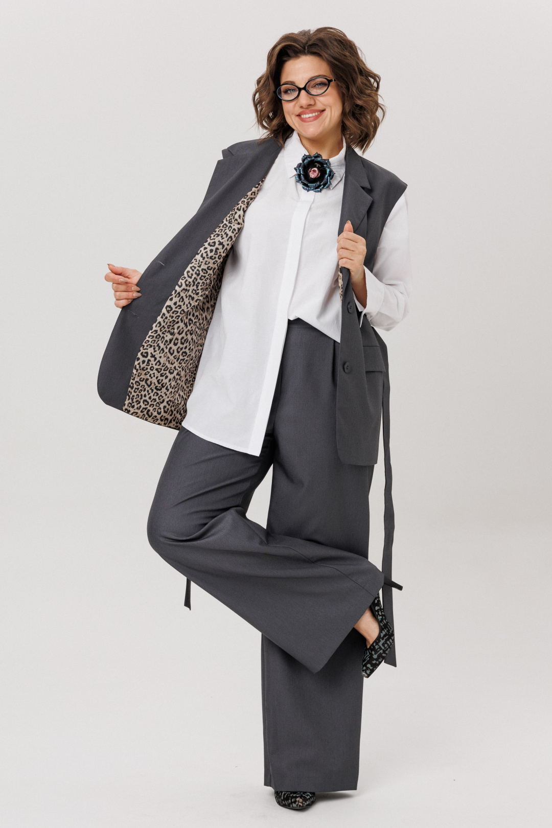 На модели в брюках цвета “пепельный вулкан” блуза 1203.1, жилет 1502. Также, можно собрать образ приобретая костюм 1501 (брюки и жилет).