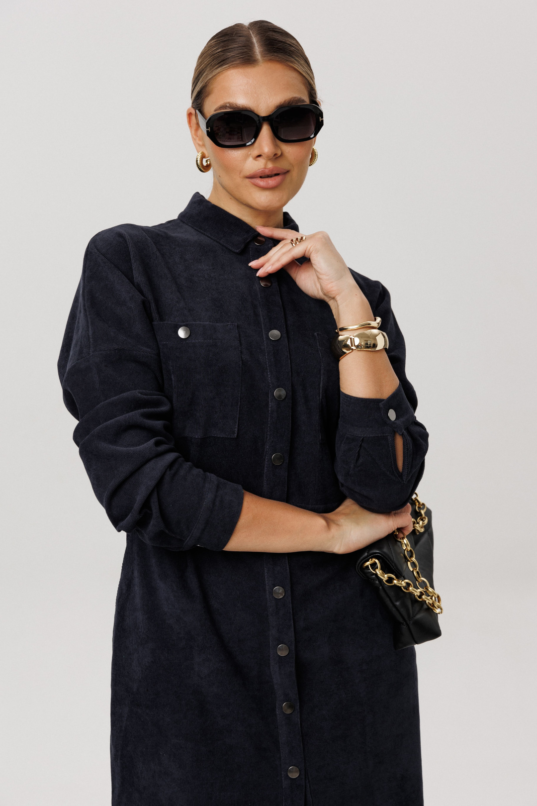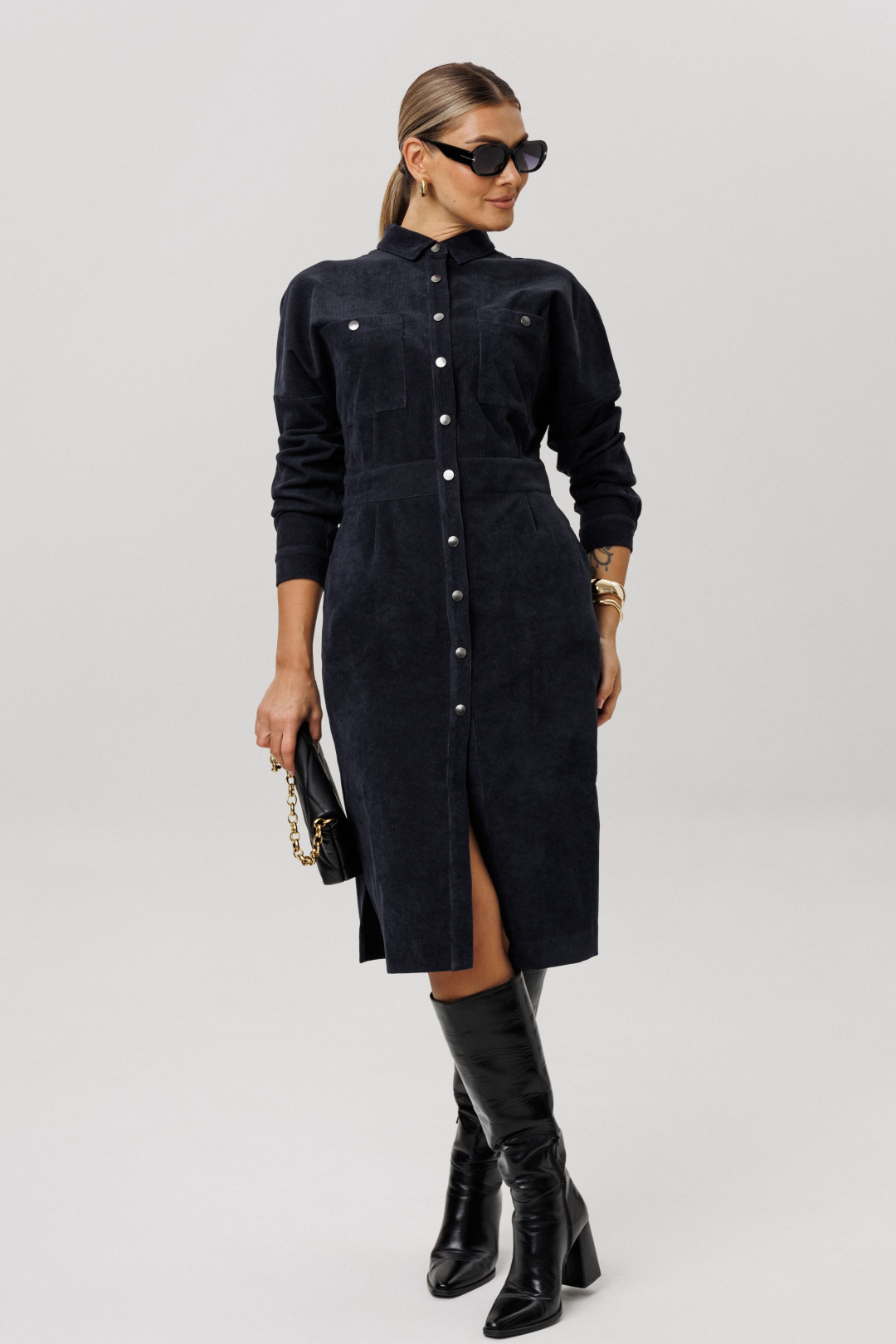 Платье-рубашка в длине миди, полуприлегающего силуэта – комфортная базовая модель для каждого дня.