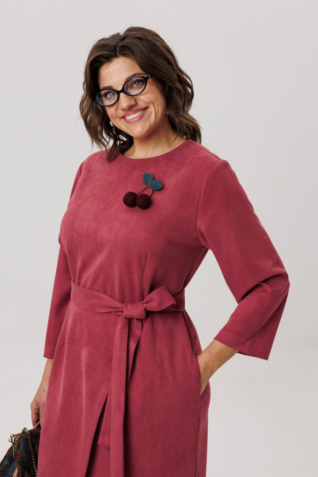 Потайная молния по спинке элегантно подчеркивает изящные линии и изгибы. Трехчетвертной рукав элегантно открывает линию запястья приковывая внимание. В качестве аксессуаров к платью можно добавить кожаный ремень, вместо родного тканевого. Массивные серьги или украшения на шею.