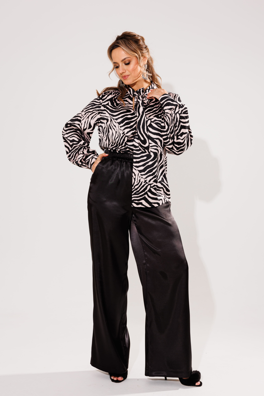 На модели атласные брюки 1737 от Анелли.