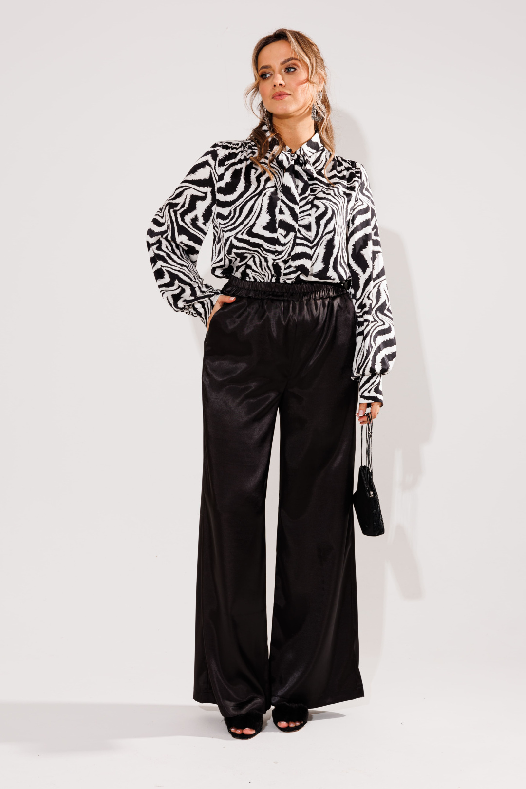 На модели атласные брюки 1737 от Анелли.
