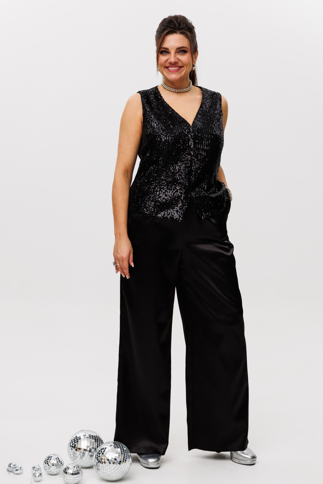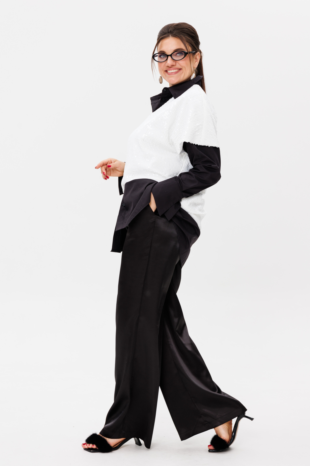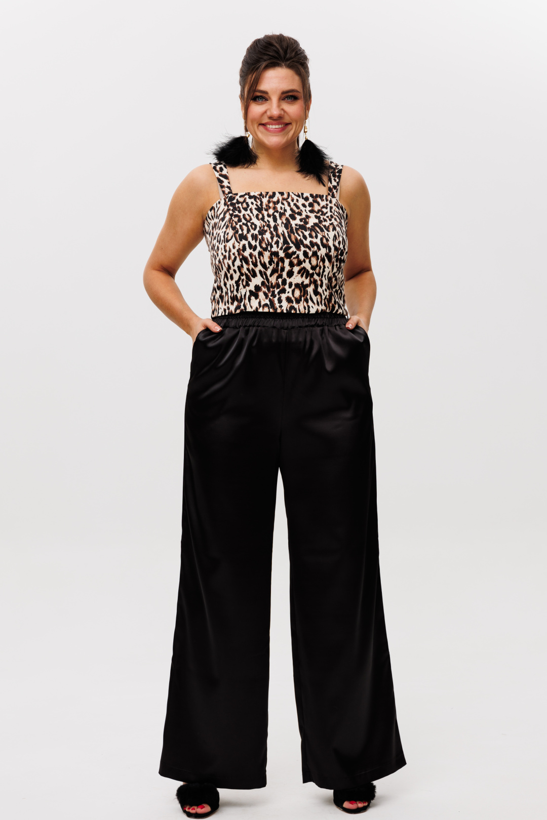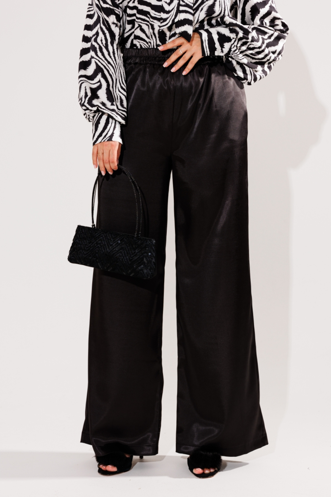 Черные брюки от Анелли из атласной ткани - это не просто брюки, это идеальная посадка и множество возможностей.