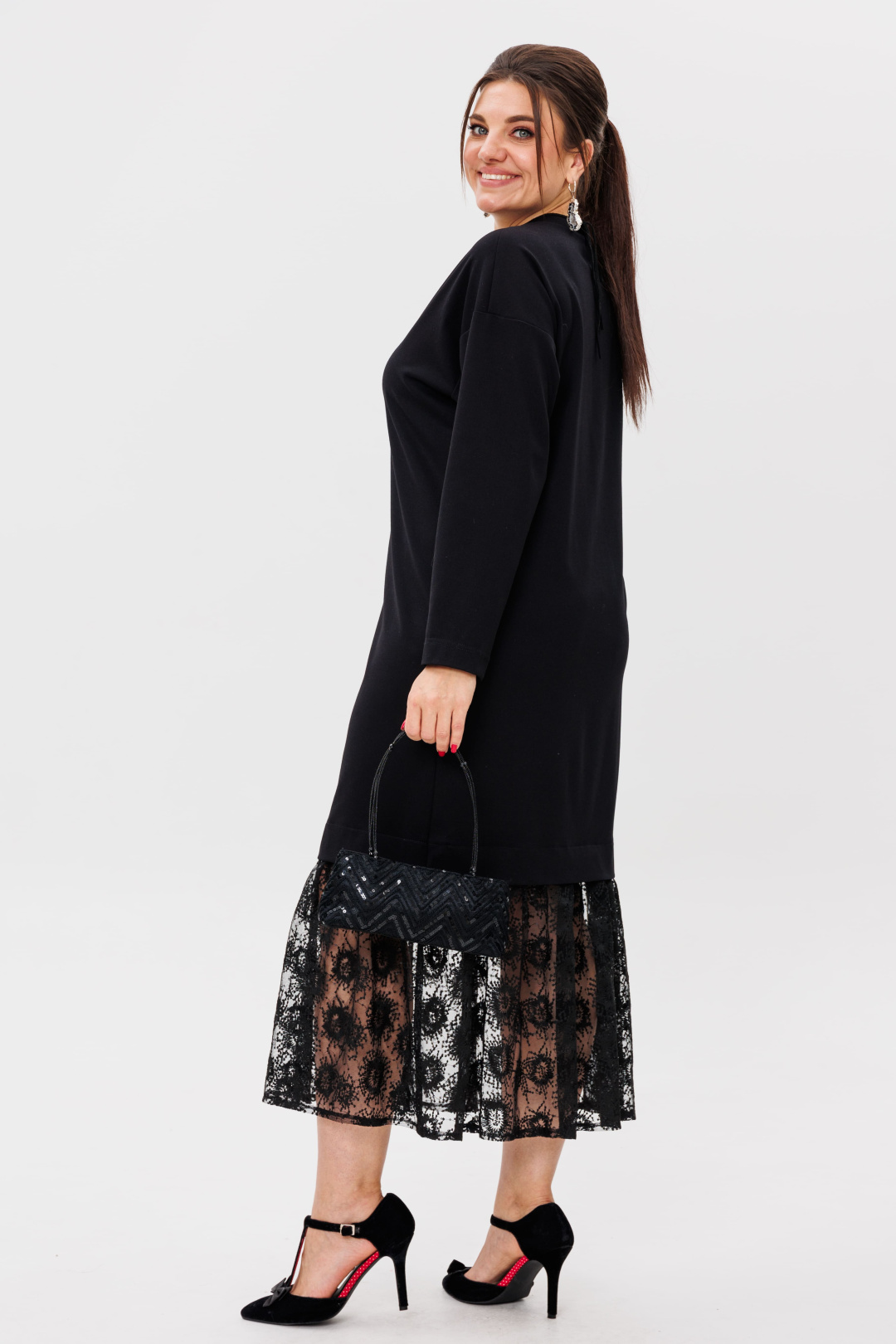Изысканный дизайн сочетает в себе сдержанную мягкость и легкость в виде отделки низа юбки гипюром, добавляя нотку игривости и романтики, делая платье особенно привлекательным.