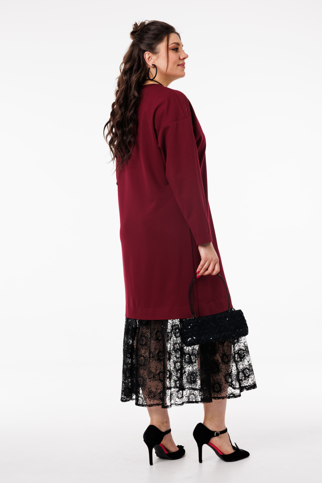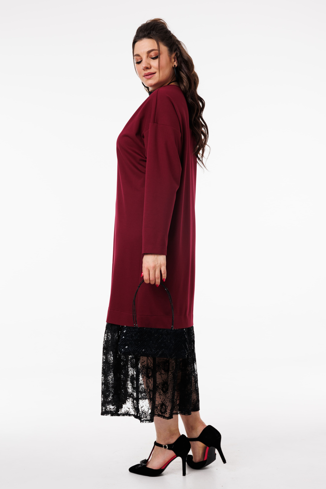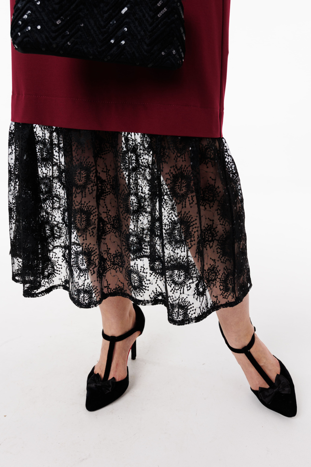 Изысканный дизайн сочетает в себе сдержанную мягкость и легкость в виде отделки низа юбки гипюром, добавляя нотку игривости и романтики, делая платье особенно привлекательным.