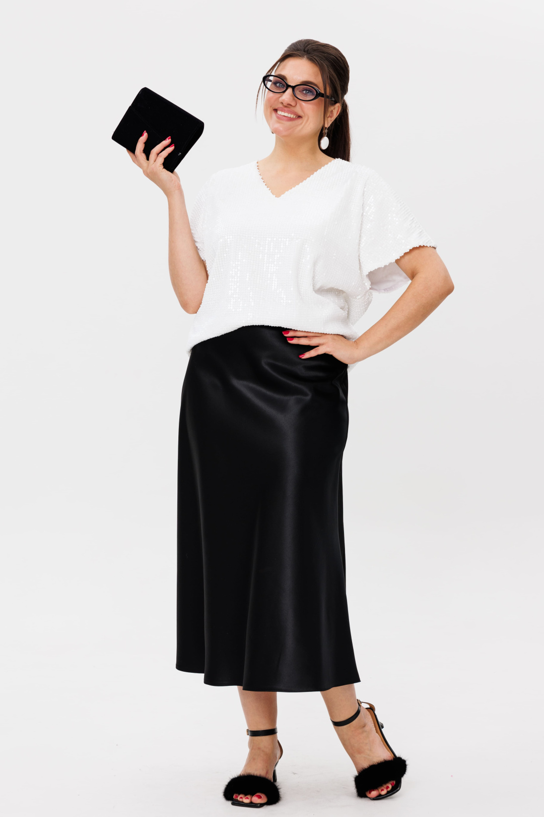 Юбка в длине миди дополнит образ и станет неотъемлемой частью вашего гардероба. Крой на косую гарантирует прекрасную посадку, а для более кэжуал образа вы можете сочетать ее с кедами и стильным жакетом.