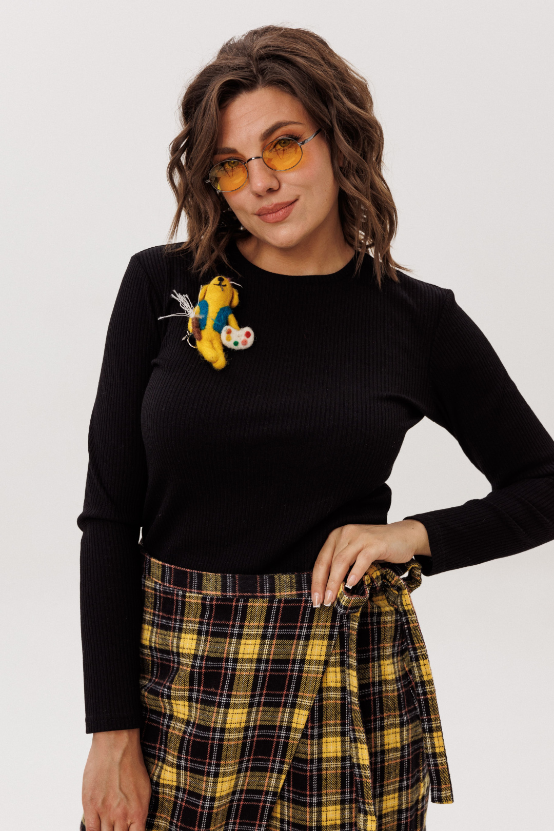 На модели образы созданы с юбками 1776, 1344, 1339 и 1359 от Анелли. Брошь не входит в комплект.
