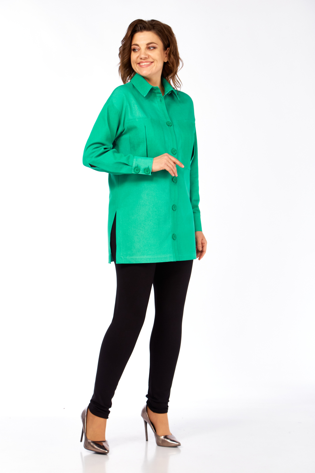 Рубашка свободного кроя, в стиле оверсайз. Силуэт свободный. На переде настрочены 2 фантазийных кармана. По боковым швам разрезы, отстроченные широкой отделочной строчкой. Рукав длинный двухшовный с длинным разрезом также отстроченным широкой отделкой. Плечо спущенное. Длина по спинке-79см, длина рукава-27,5см, длина плеча-17 длина разреза-26см. Параметры модели: обхват груди-98см, обхват бедер-110см, размер топа на модели 50.