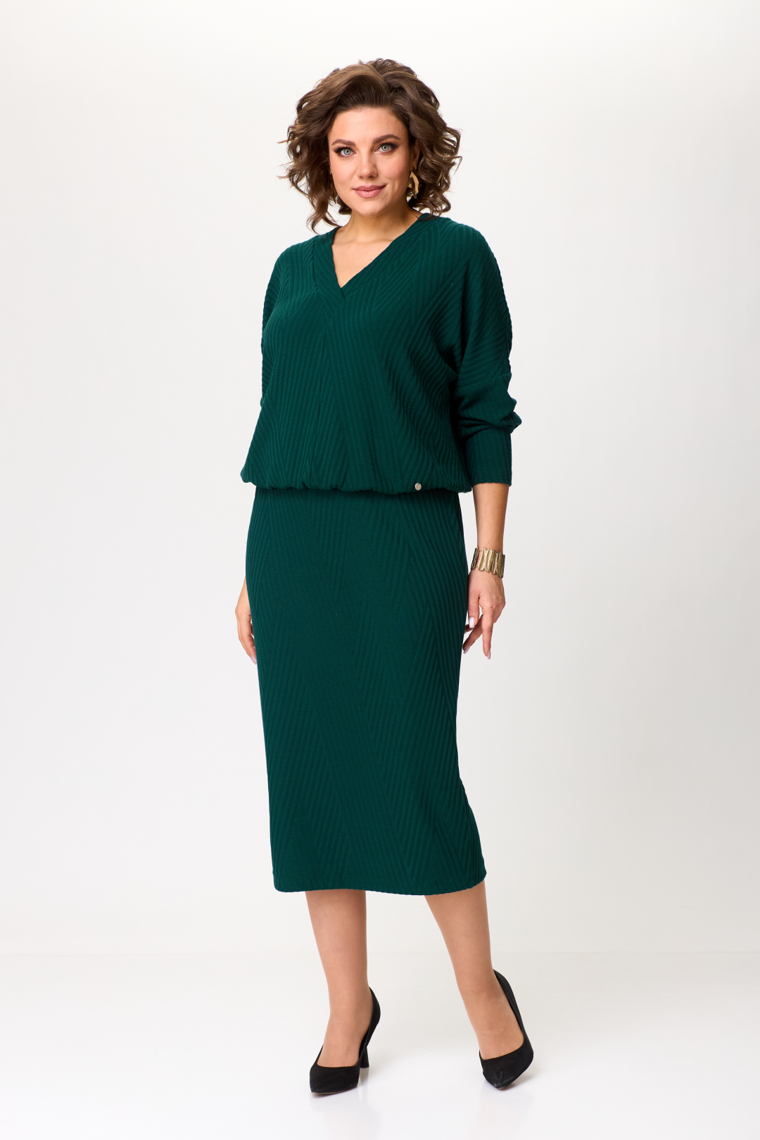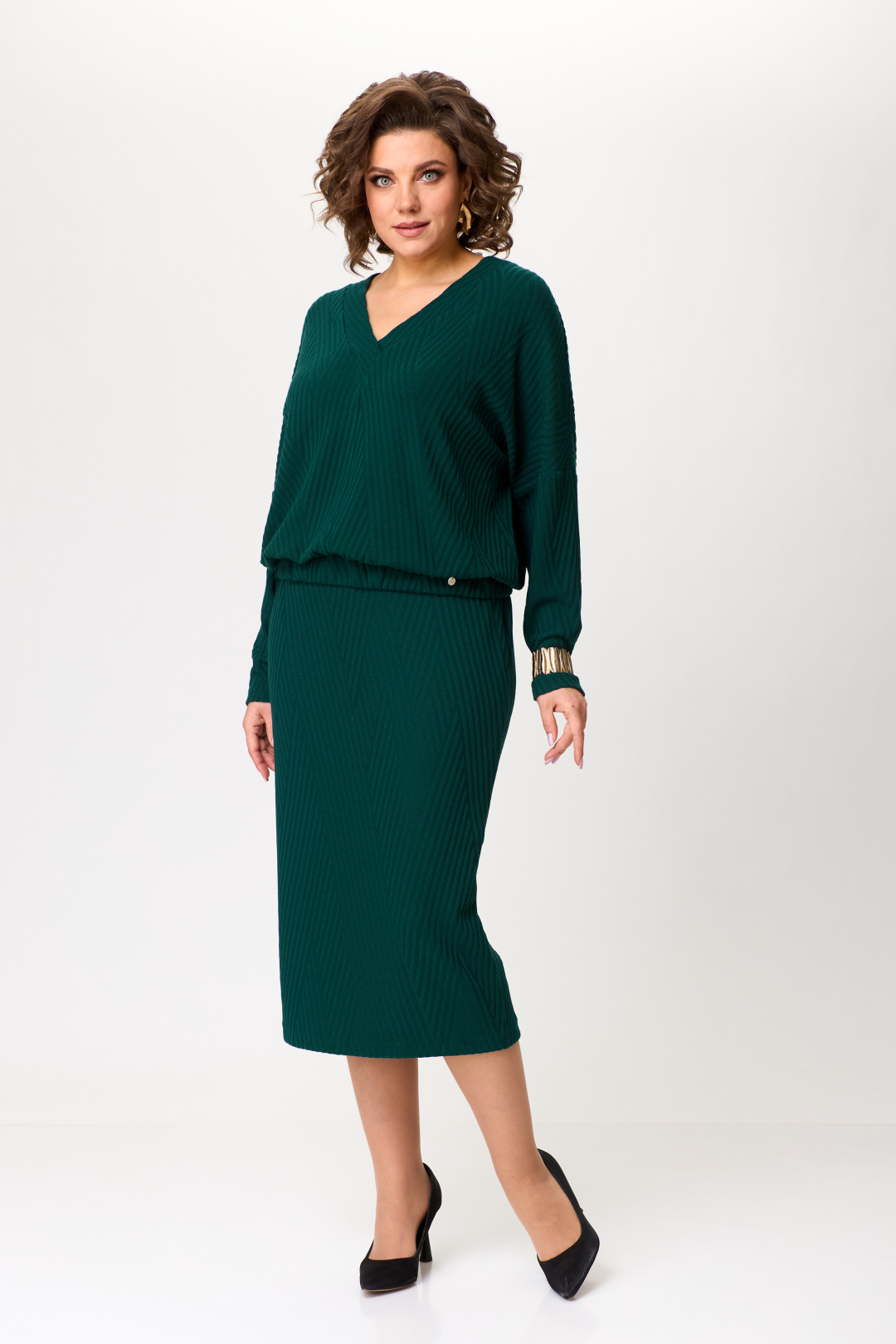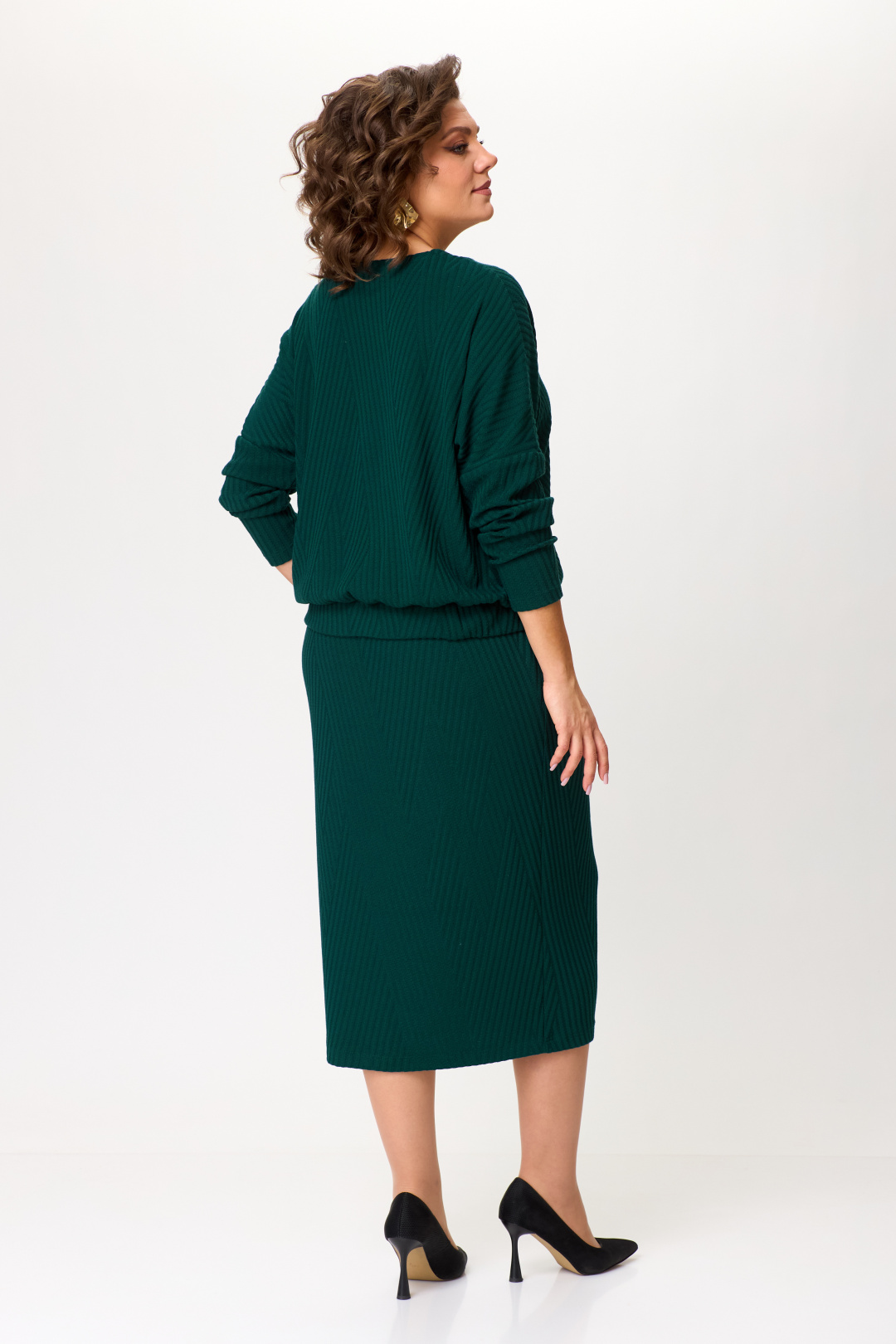 Женский двухпредметный костюм,состоящий из джемпера и юбки, выполнен из фактурного трикотажного полотна с геометрическим рисунком.