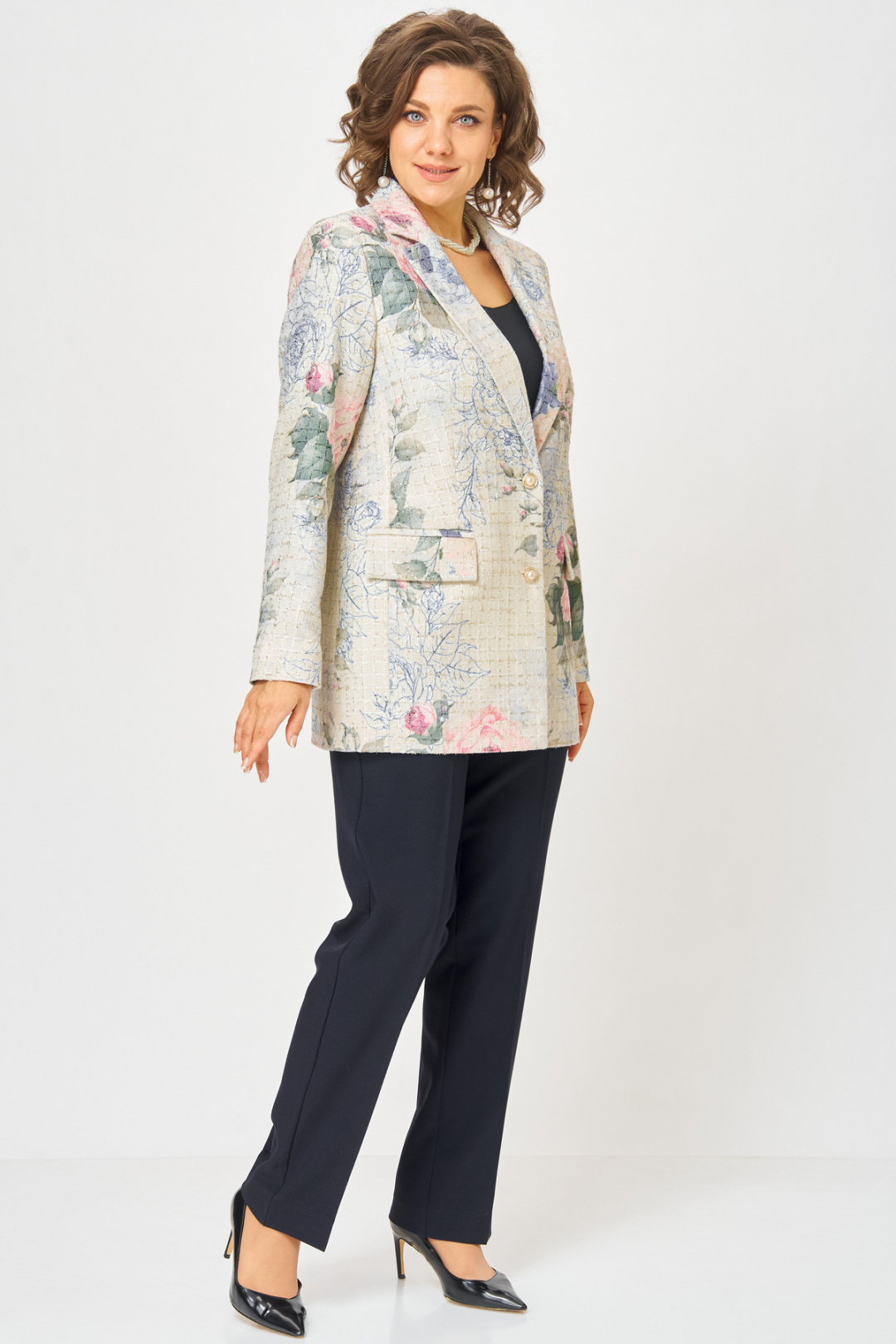 Этот жакет— воплощение уютной элегантности. Выполненный из фактурного твида, он сочетает в себе непринужденность свободного силуэта и безупречную классику кроя. Идеален для создания как повседневных, так и собранных образов. Воротник пиджачного типа, застежка до линии лацкана и изящные прорезные карманы с клапанами делают образ законченным и утонченным, жакет полностью на подкладке. Длина по спинке 75 см, длина рукава 63 см.