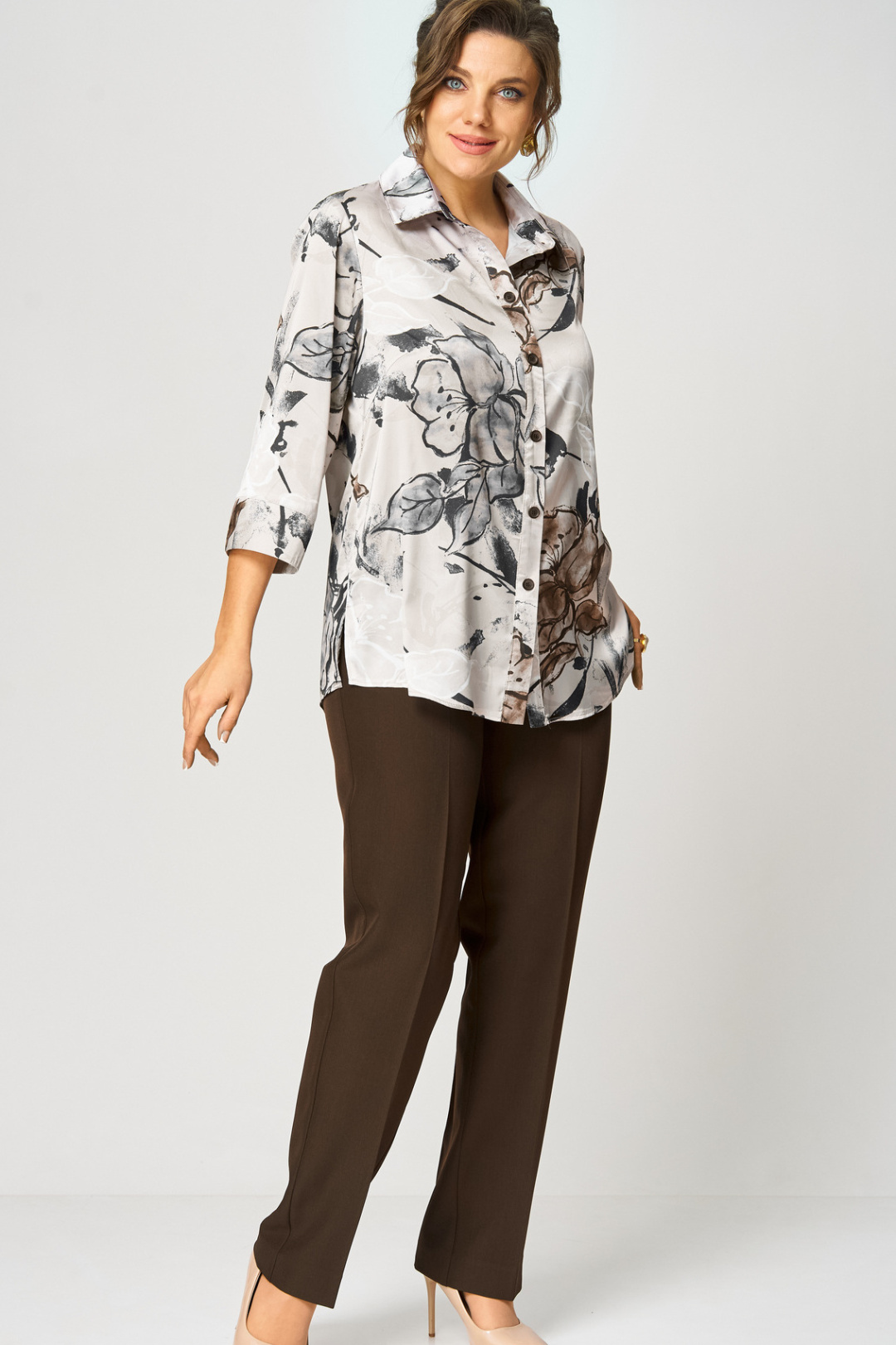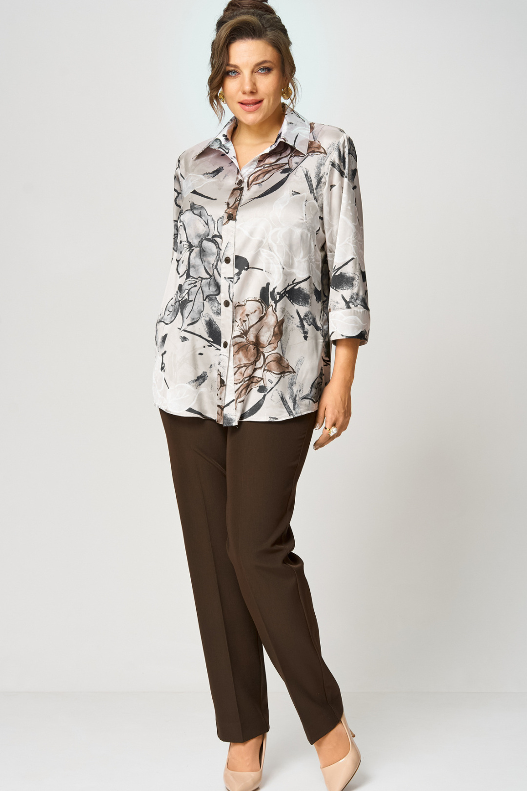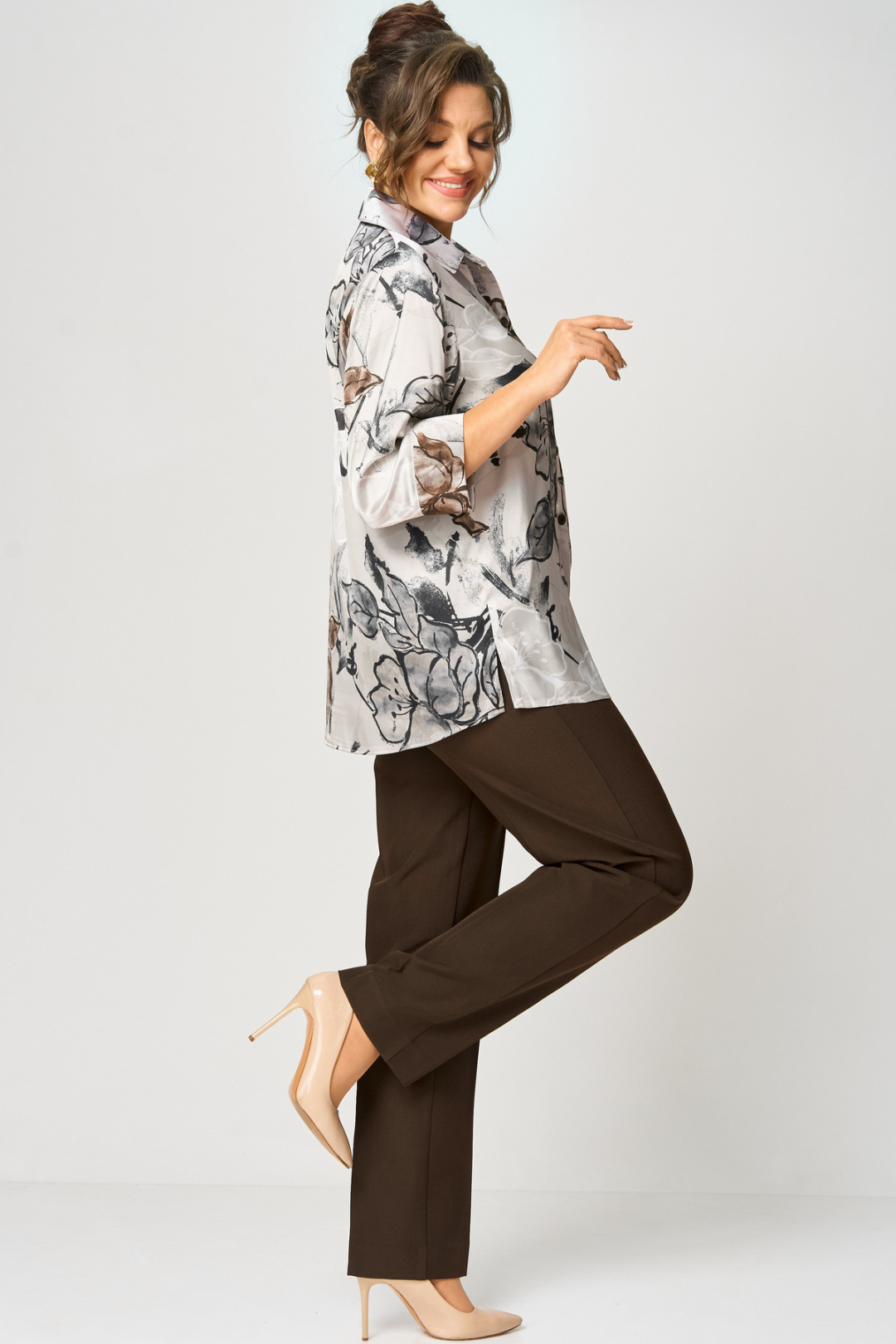 Этот комплект создан для того, чтобы вы забыли о вопросе «Что надеть?». Мы объединили две вещи, которые составляют основу стильного и практичного гардероба. Верх: блуза прямого кроя из нежного текстиля. Рукава 3/4 с манжетами и отложной воротник дарят образу лёгкость и утонченность. Центральная застежка на пуговицы и боковые разрезы добавляют практичности. Длина по спинке 74 см, длина рукава 45. Низ: классические прямые брюки с заутюженными стрелками, которые визуально вытягивают силуэт. Скрытая резинка по бокам гарантирует невероятный комфорт, сохраняя безупречный вид спереди. Длина брюк от талии по боковому шву 103 см.