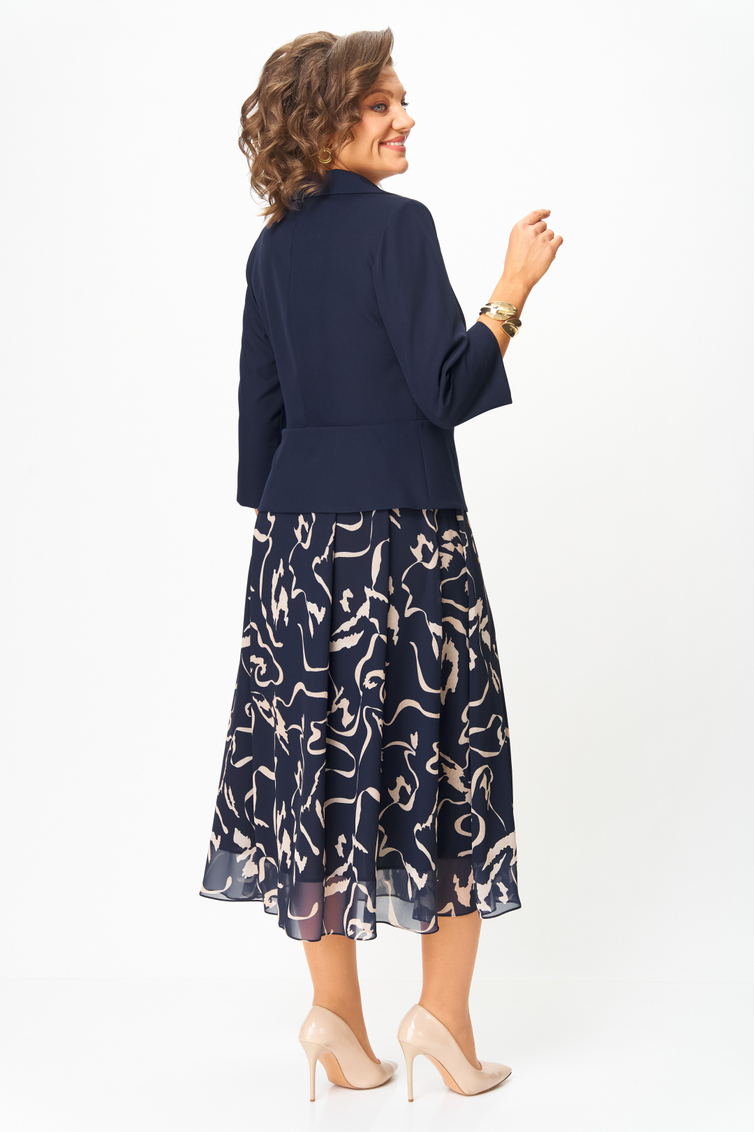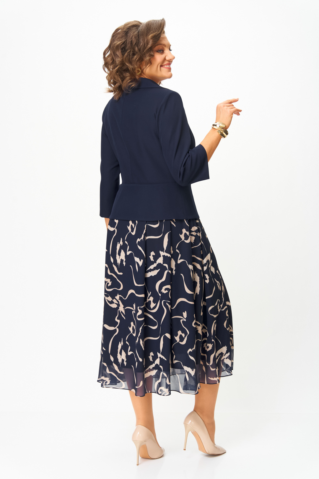 Платье полуприлегающего силуэта, верх жакетного типа с запахом. Юбка расширенная со сборкой по талии, на подкладке.