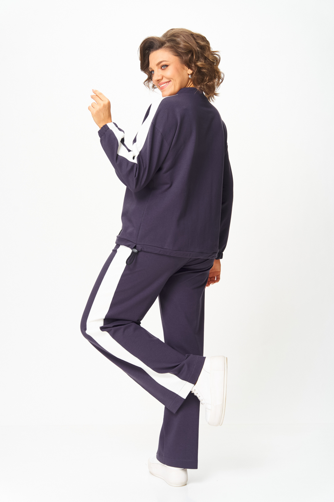 Брюки свободного силуэта, с лампасами по боковому шву. В боковых швах на уровне бедер карманы, верх брюк на поясе с резинок.
