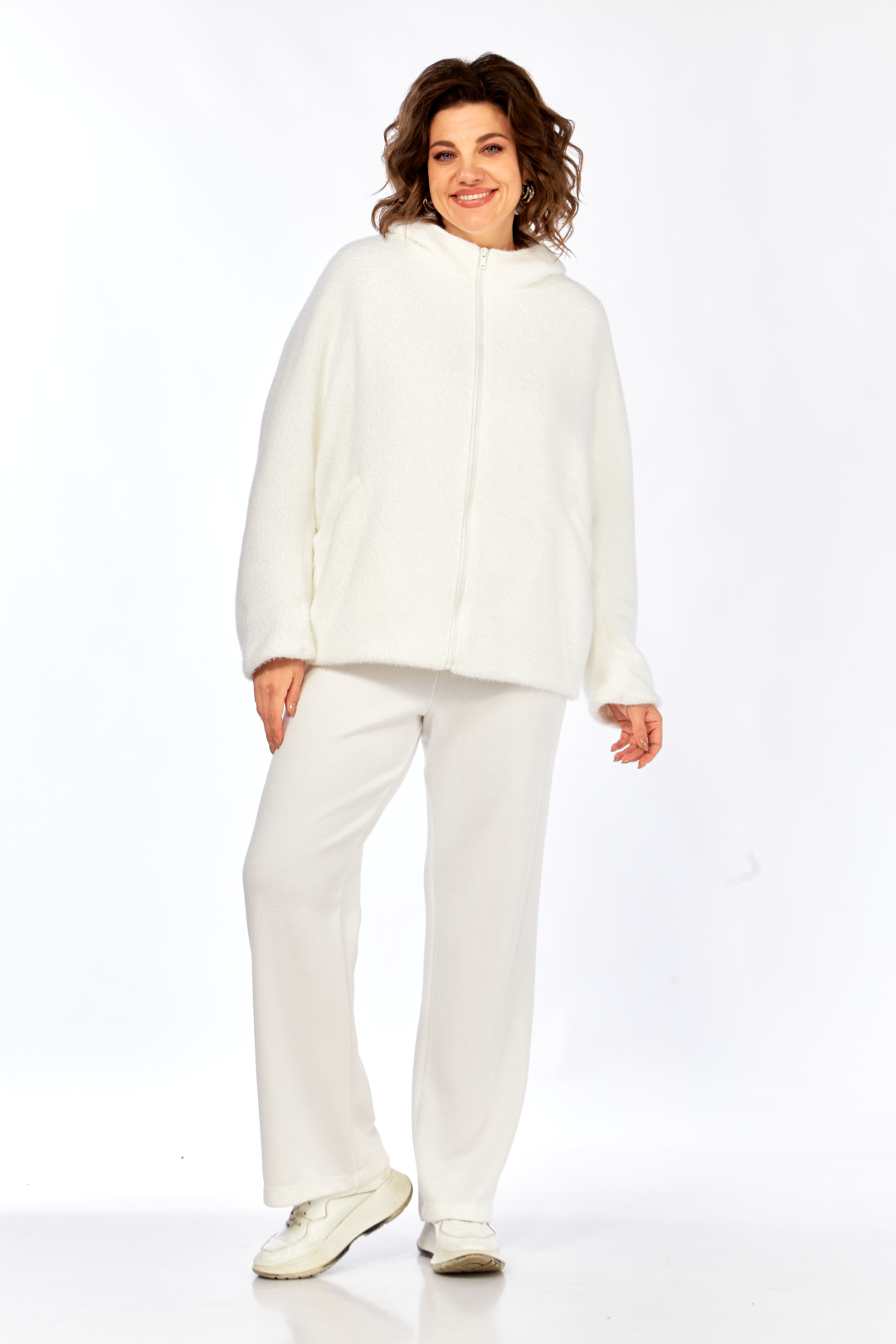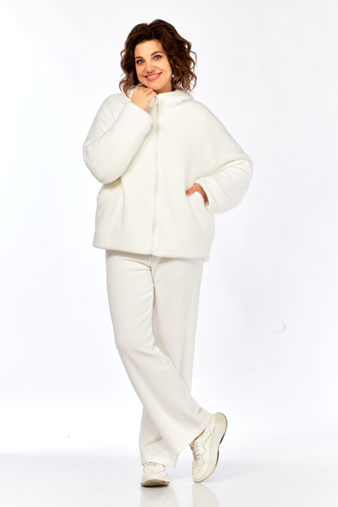 Куртка женская, О-образного силуэта с центральной застежкой на молнию. Спинка простая. Перед с боковыми карманами "с листочкой". Рукав-реглан . Воротник-капюшон. По низу куртки в подкладке обработана кулиса со шнуром и регулятором. Температурный режим до 0 градусов.