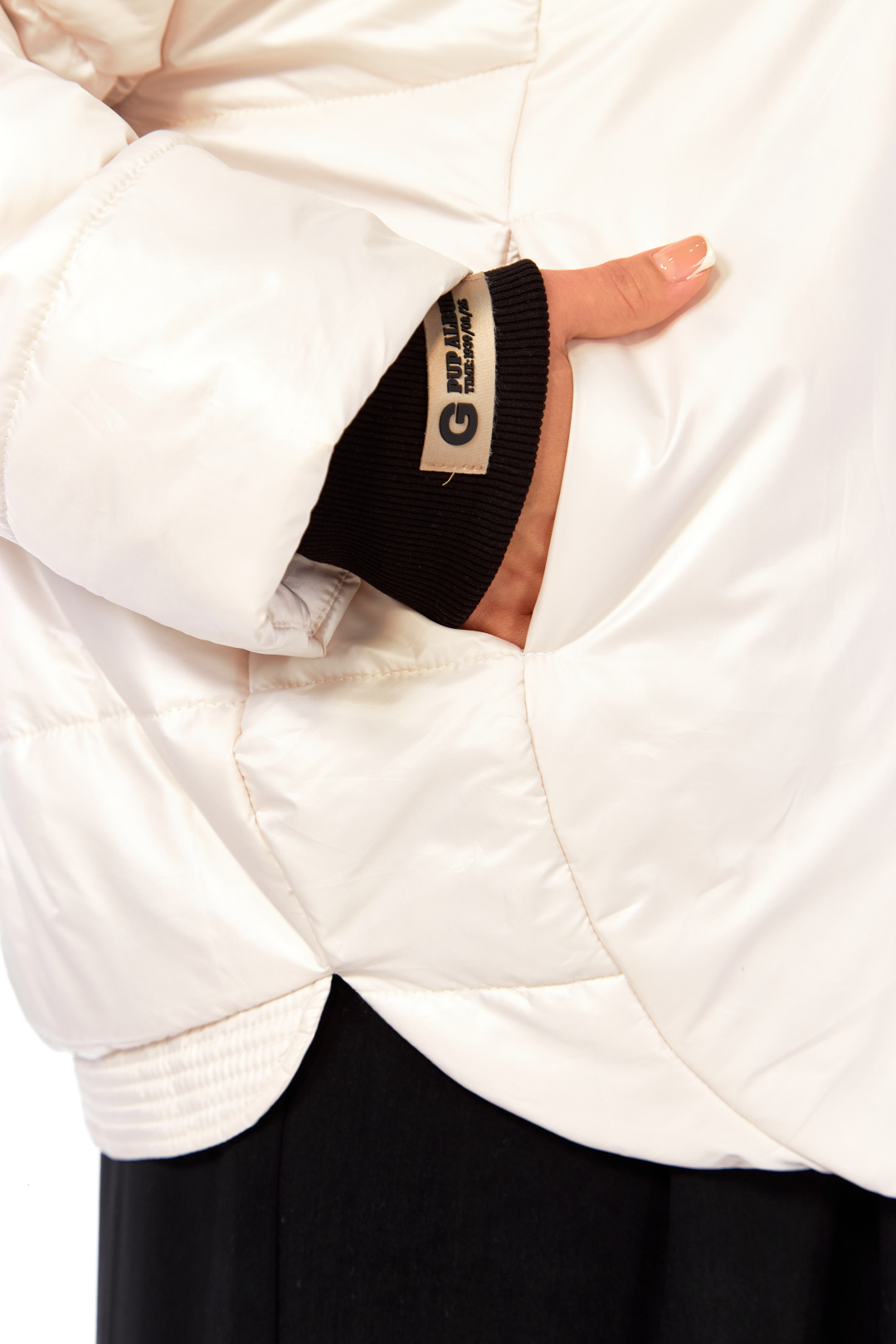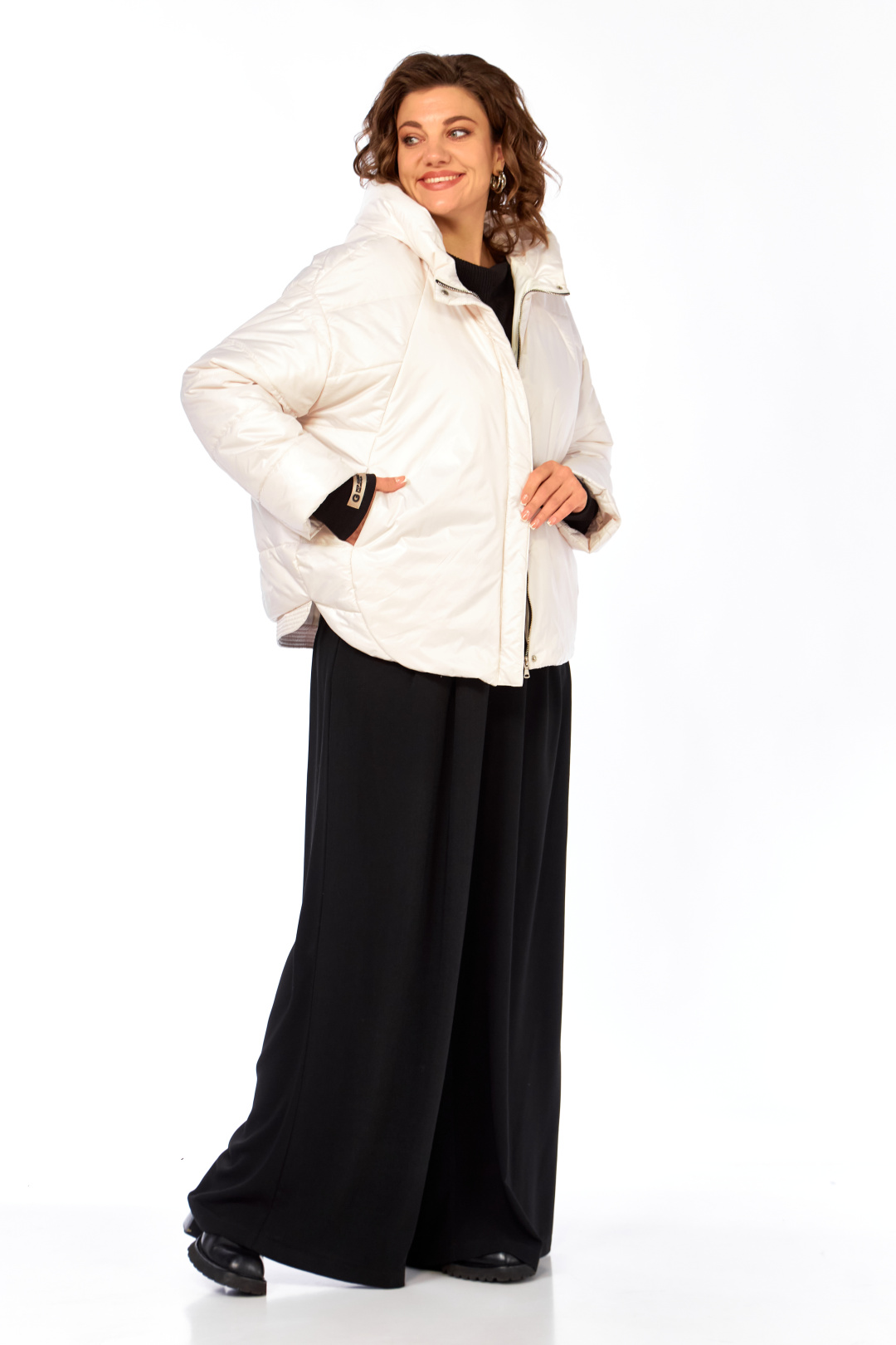 Куртка женская с центральной застежкой на тесьму-молнию и кнопки, спущенная линия плеча. По спинке рельефные швы от горловины до низа, по низу притачная отделочная планка. По переду рельефные швы от горловины до низа, в рельефных швах обработаны карманы. рукав втачной одношовный с манжетом по низу. Капюшон с центральной частью и отделочной деталью по отлету. Утеплитель синтепон 150 гр. Куртка женская с центральной застежкой на тесьму-молнию и кнопки, спущенная линия плеча. По спинке рельефные швы от горловины до низа, по низу притачная отделочная планка. По переду рельефные швы от горловины до низа, в рельефных швах обработаны карманы. рукав втачной одношовный с манжетом по низу. Капюшон с центральной частью и отделочной деталью по отлету. Утеплитель синтепон 150 гр. Длина по спинке 70 см, длина рукава 54 см.