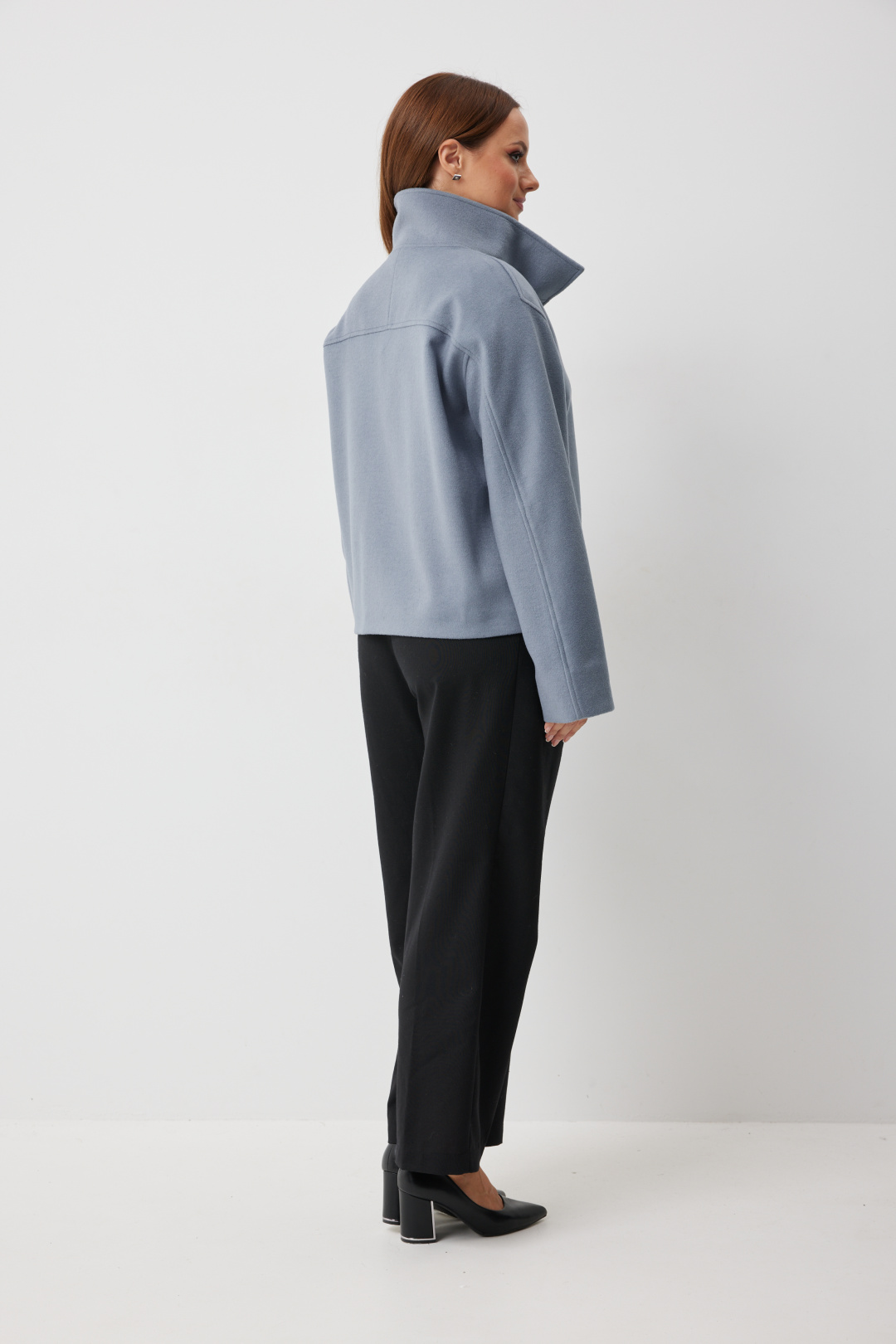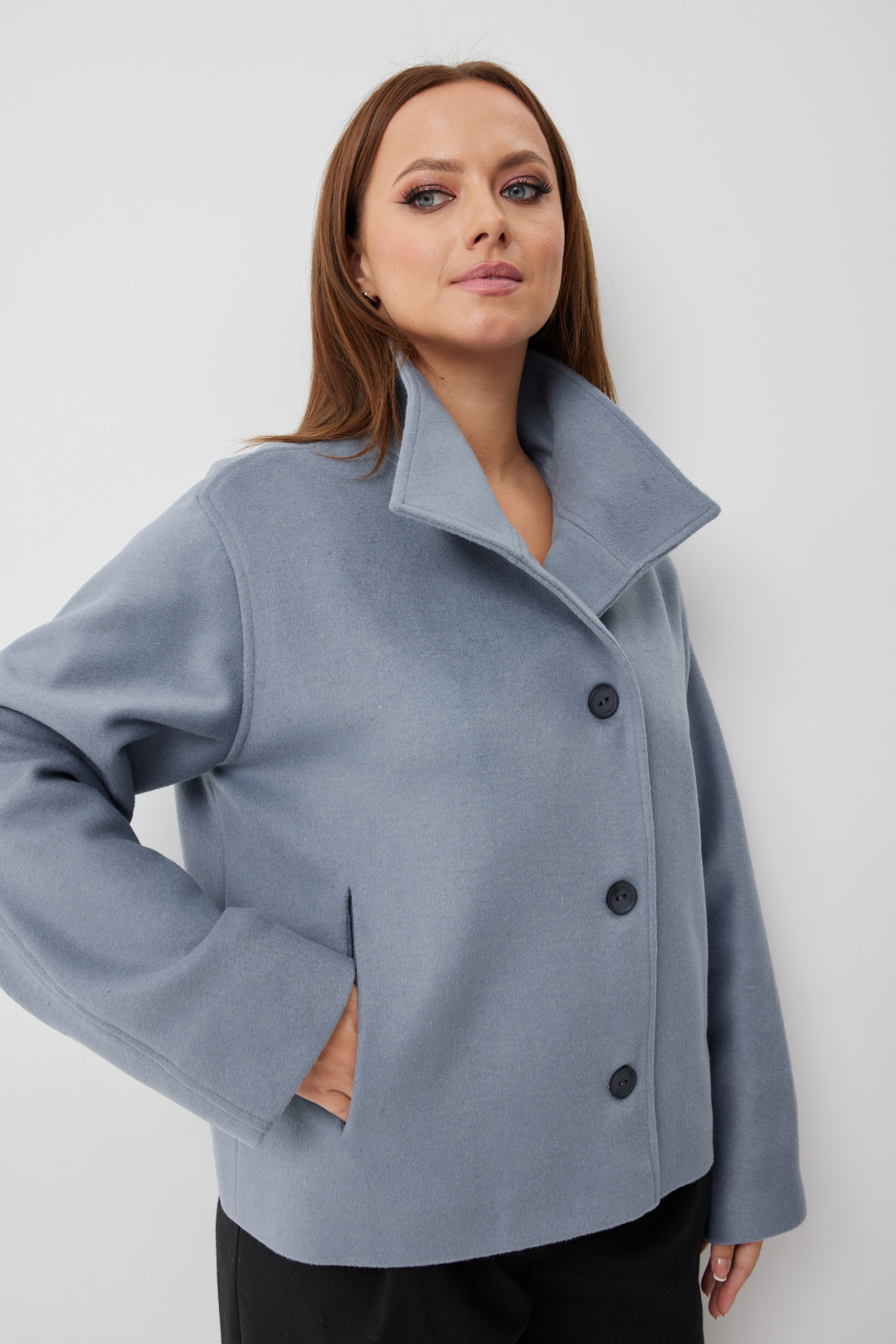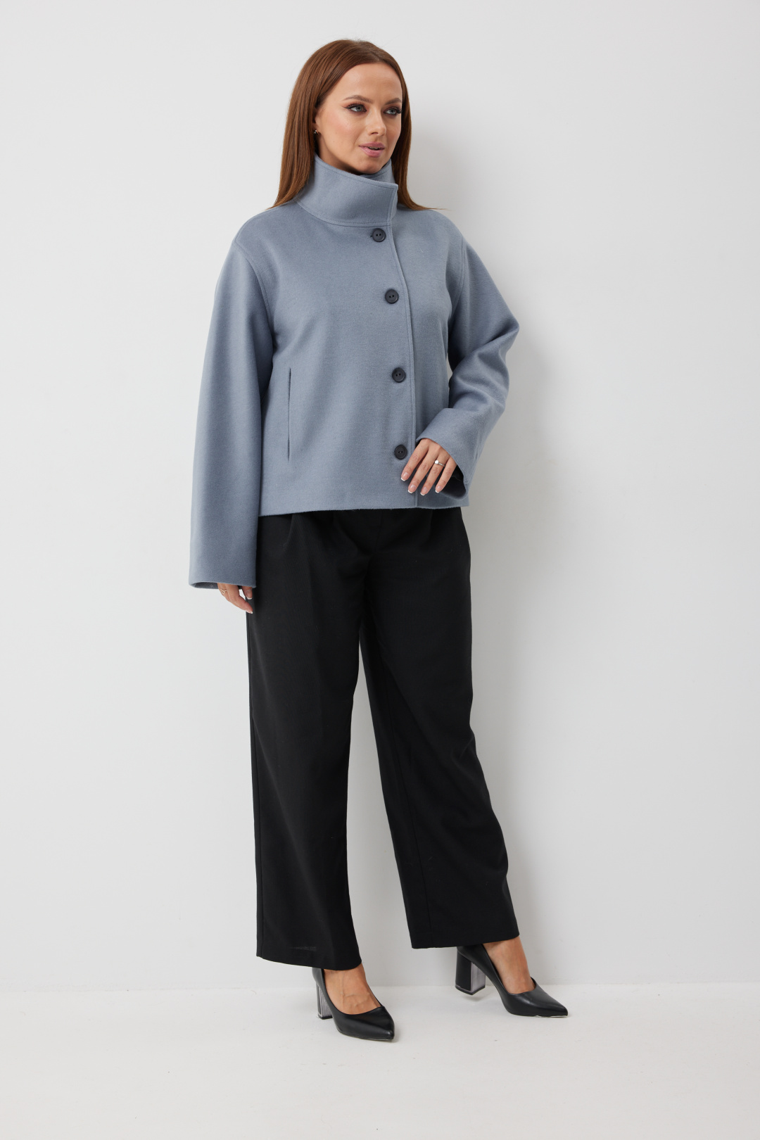 Прекрасный укороченный жакет-пальто в нежном голубом цвете выполнен из легкого материала, который приятен на ощупь и идеально подходит для прохладной погоды. Модель с воротником-стойкой и просторными рукавами обеспечит комфорт и свободу движений. Дизайн дополнен тремя темно-серыми кнопками на передней панели, что добавляет элегантности. Жакет подчеркивает лаконичность силуэта и легко сочетается с различными элементами гардероба. Длина жакета составляет 60 см, а длина рукава — 73 см. Идеален для создания стильных осенних образов.