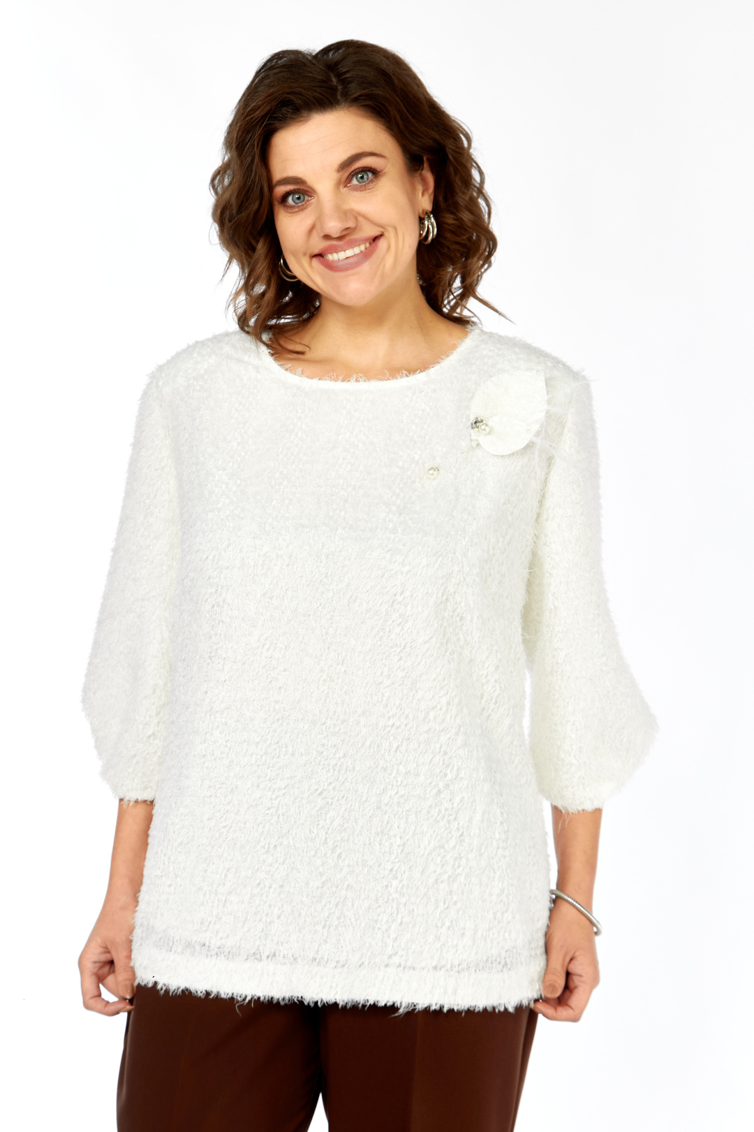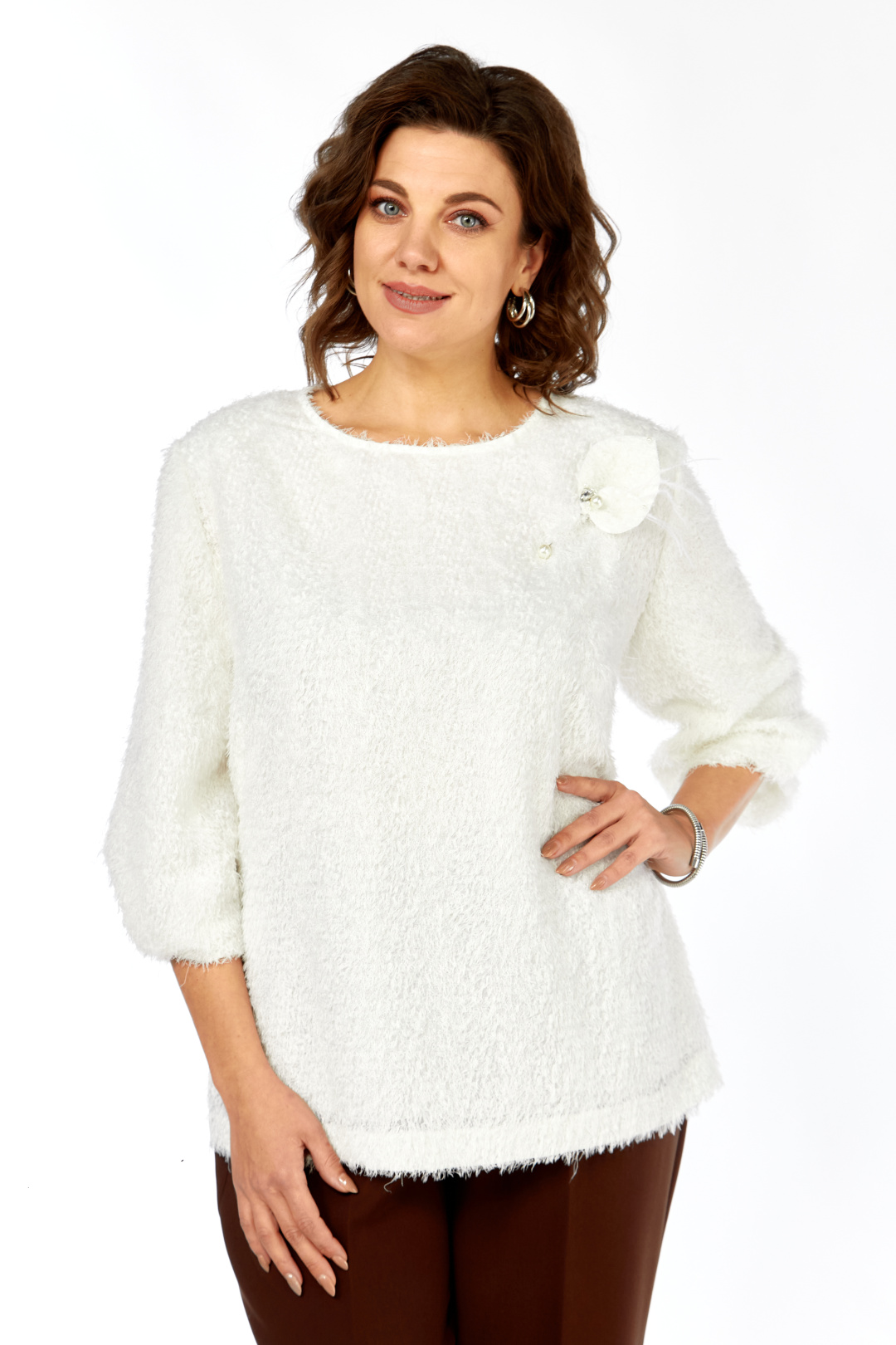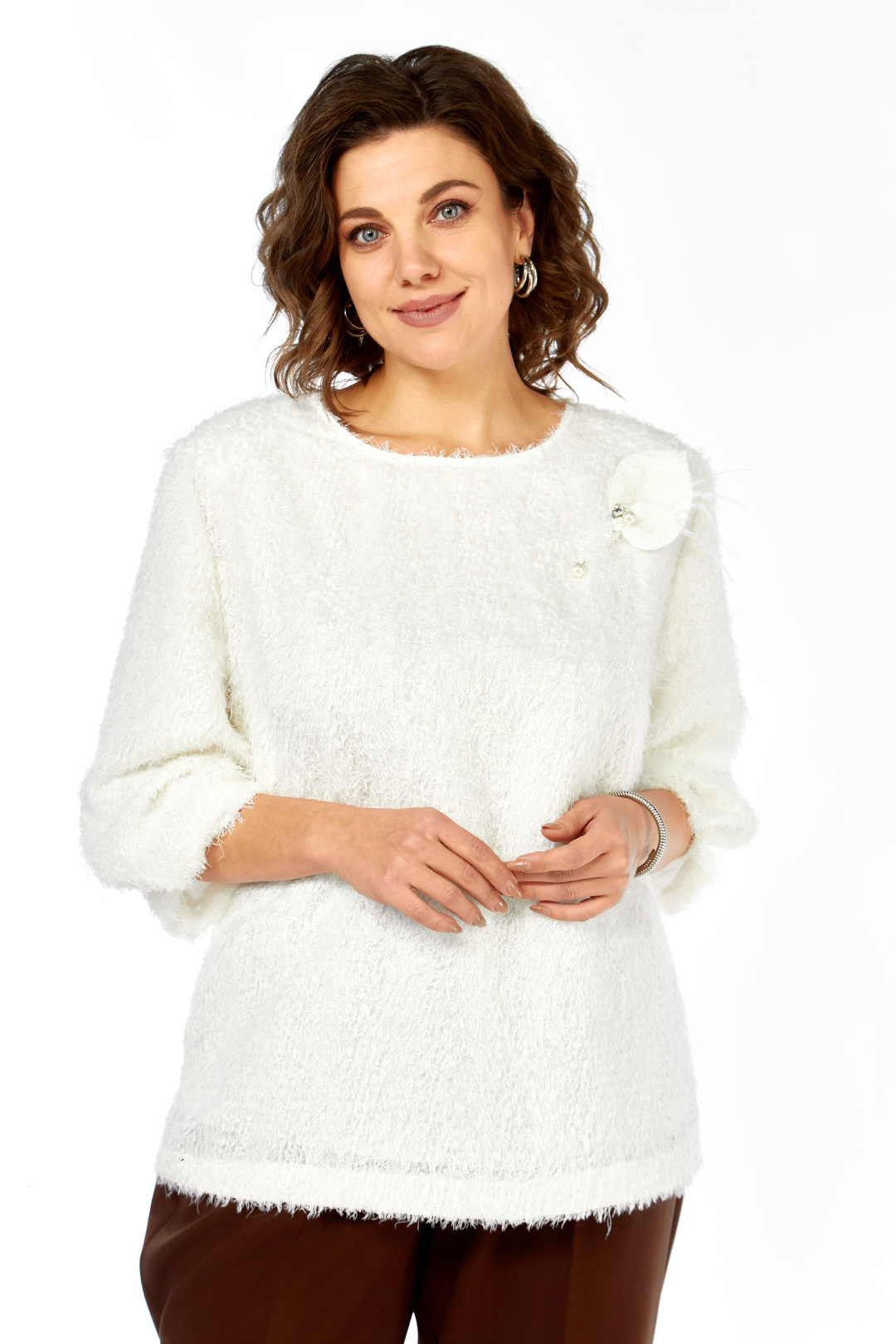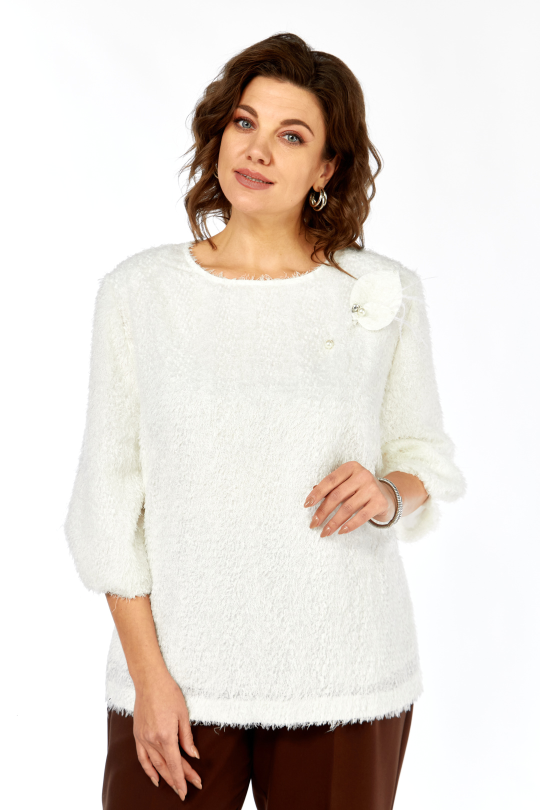 Комплект женский брючный 2-х предметный. Праздничная элегантная блузка полуприлегающего силуэта, выглядит эффектно, прекрасно подойдет для мероприятий. Горловина аккуратной округлой формы. Рукав втачной, свободный с фантазийным решение, длина 7/8. Декоративным элементом является съемная дизайнерская брошь. Средний шов спинки вверху переходит в застежку на 6 навесных петель, пуговиц. В боковых швах предусмотрены разрезы. Брюки классические с заутюженными стрелками, слегка зауженные к низу, оформлены притачным поясом, частично на резинке. Застежка спереди брюк на молнию и петлю-пуговицу.