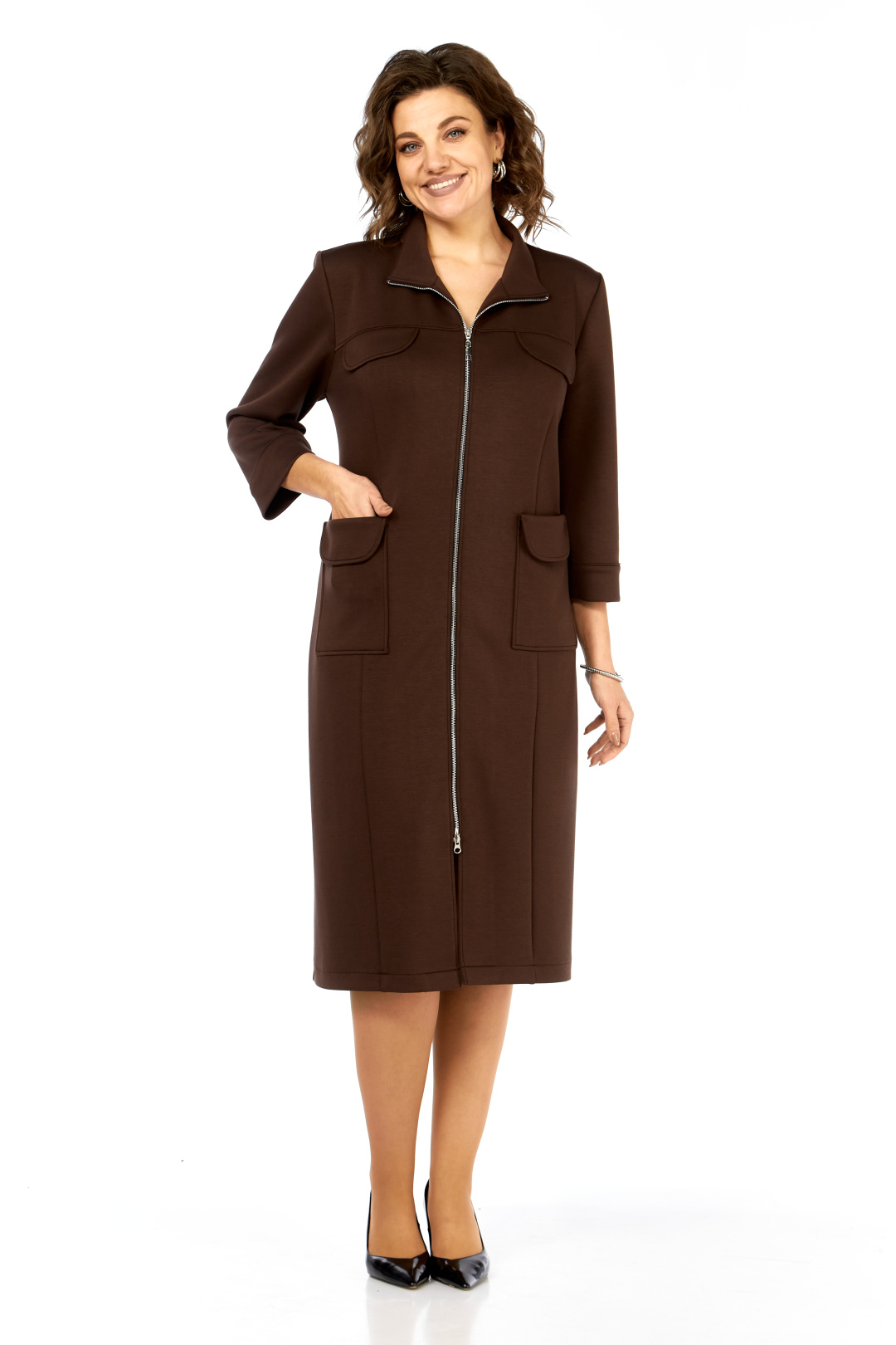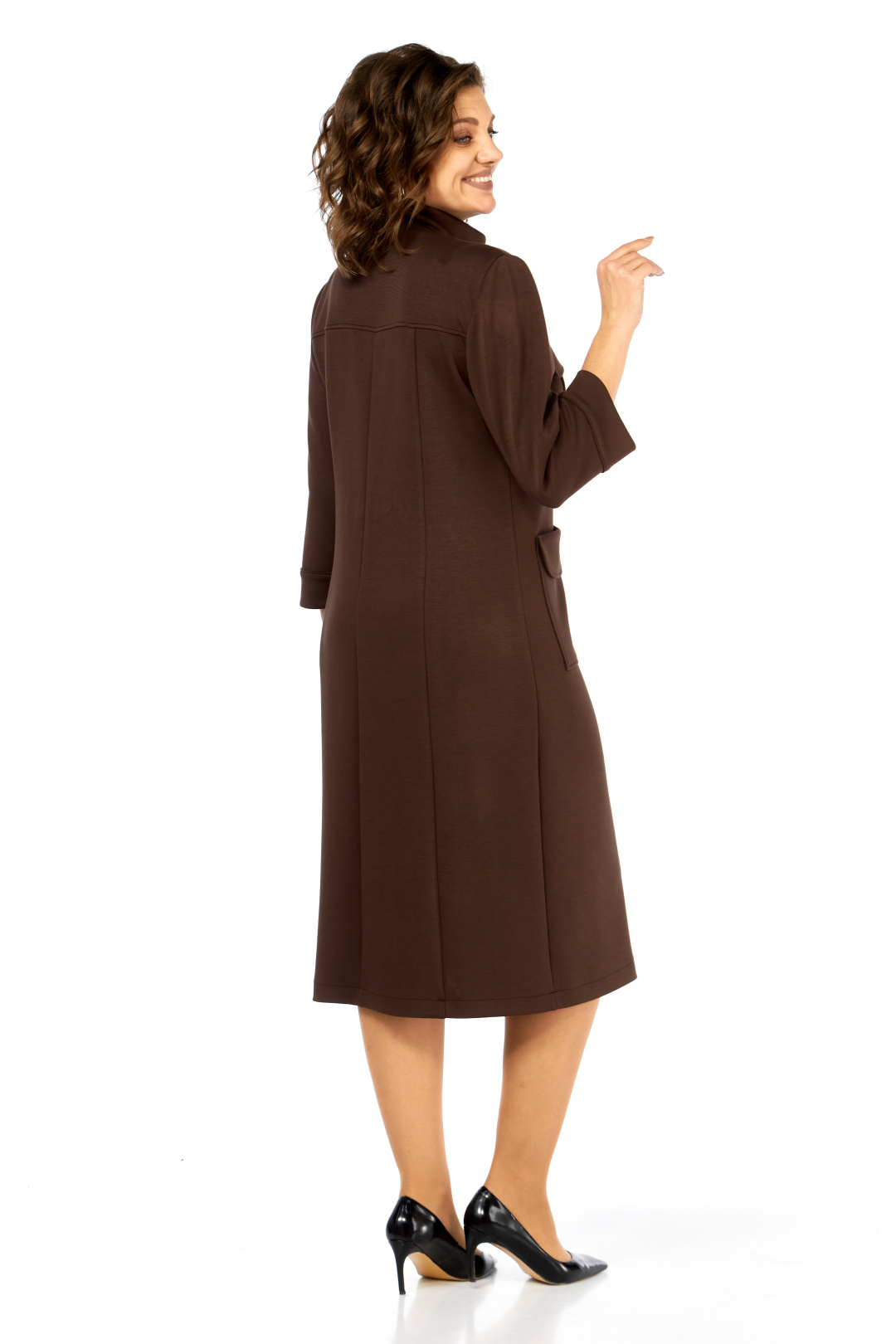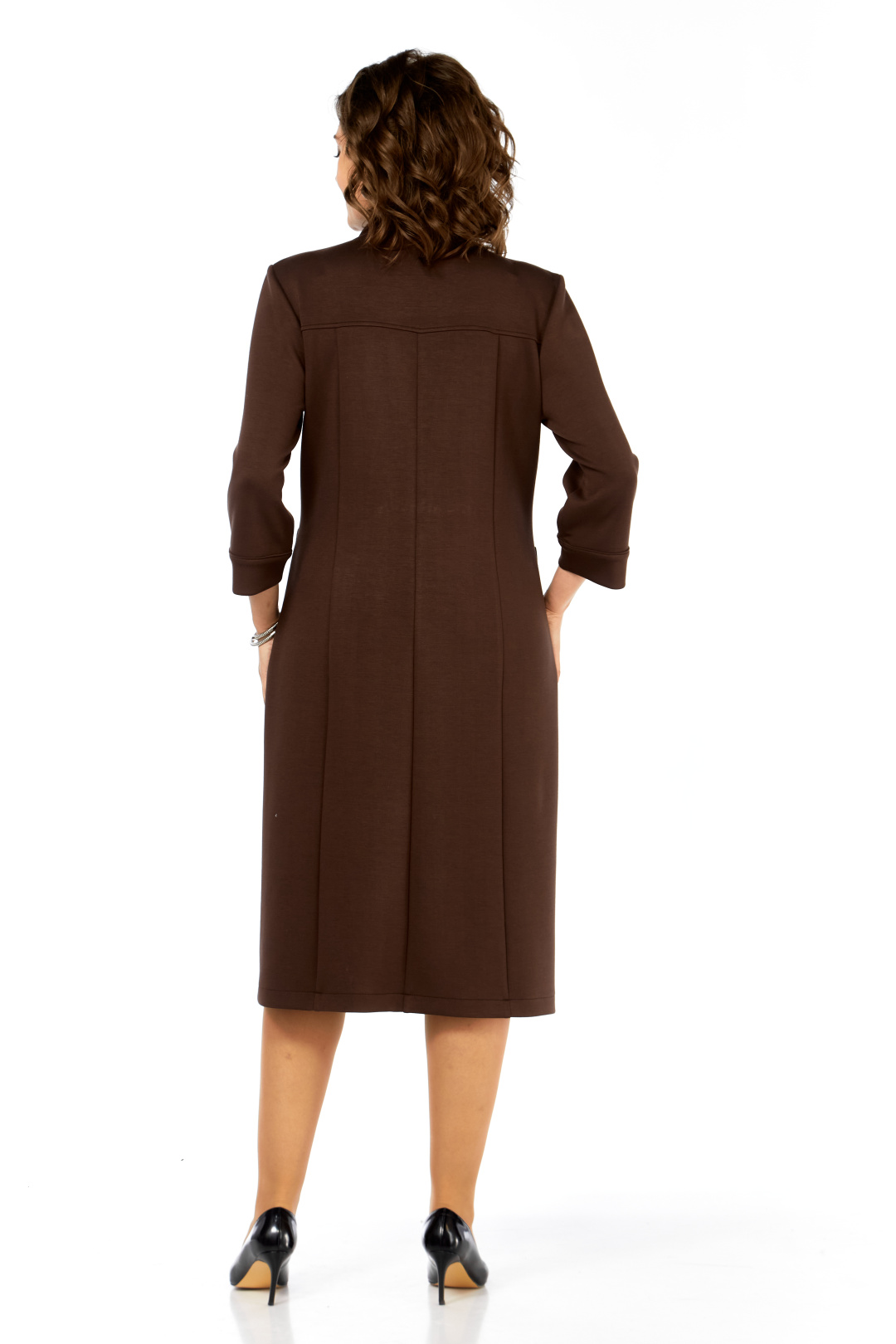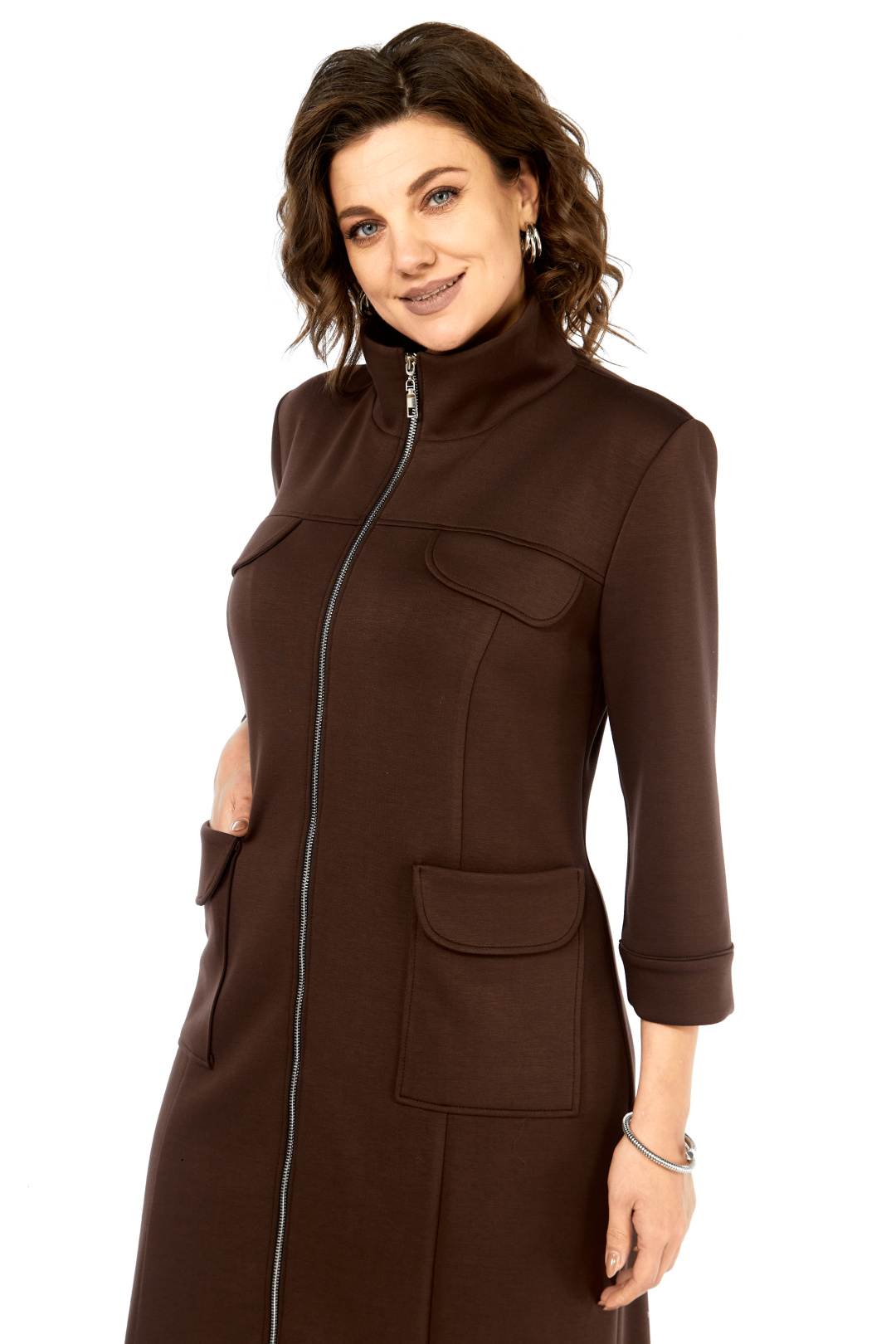 Женственное платье, которое считается универсальным и уместным как для офиса, так и для встречи с друзьями. Модель полуприлегающего силуэта. По переду отрезная кокетка в области груди оформлены клапаны, ниже накладные функциональные карманы с клапаном. По переду расположена декоративная функциональная застежка-молния, которая служит и как элемент дизайна. Горловина на отрезной стойке. Классический втачной рукав, низ обработан притачной манжетой. Спинка на кокетке со средним швом и выточками.