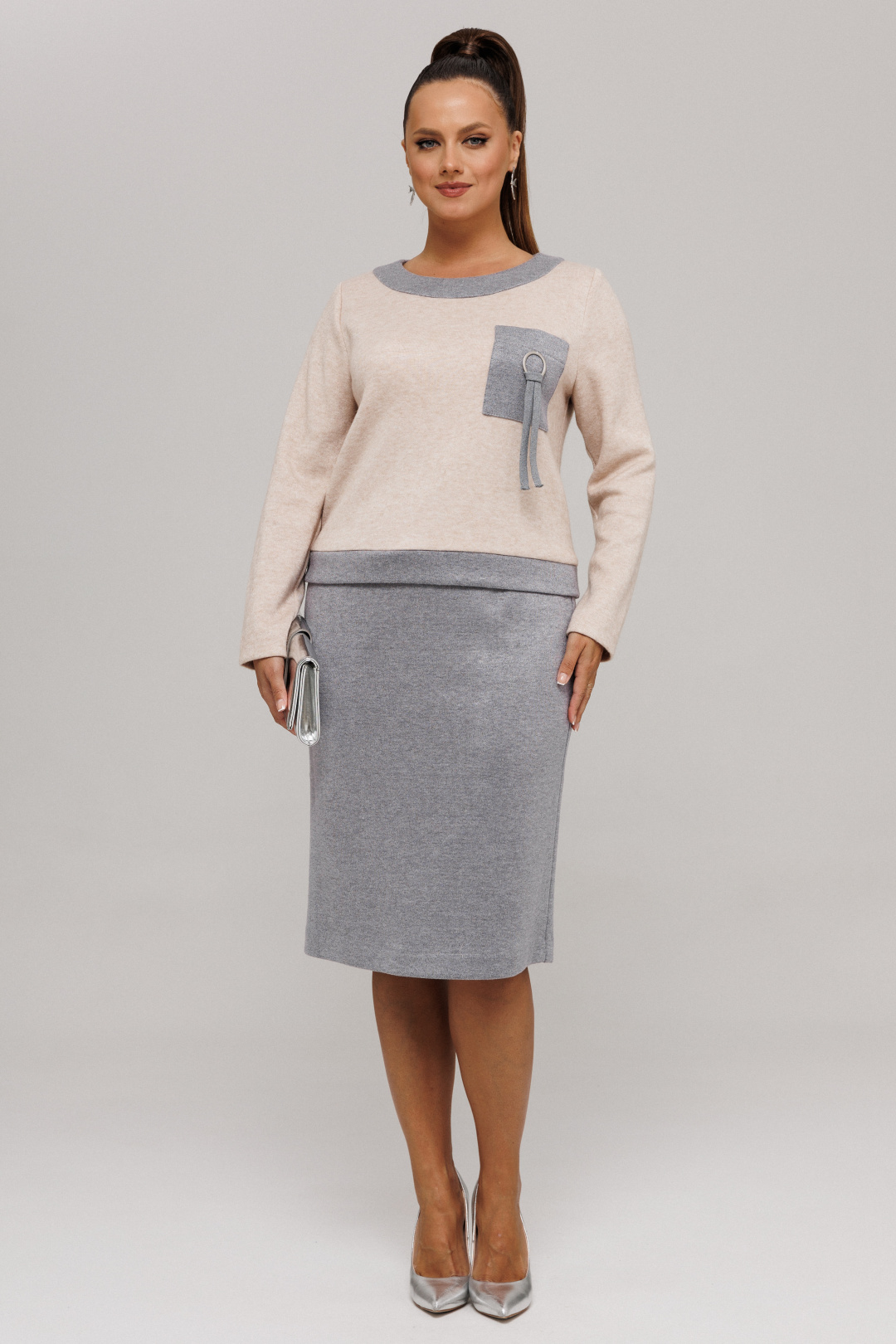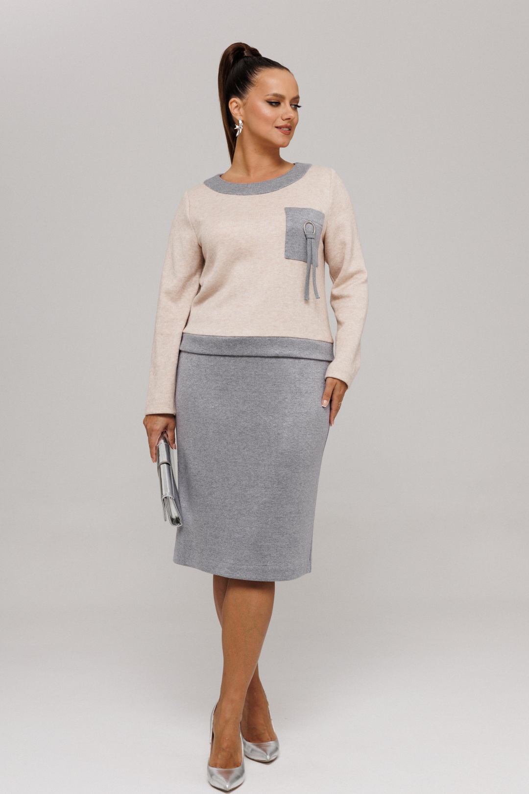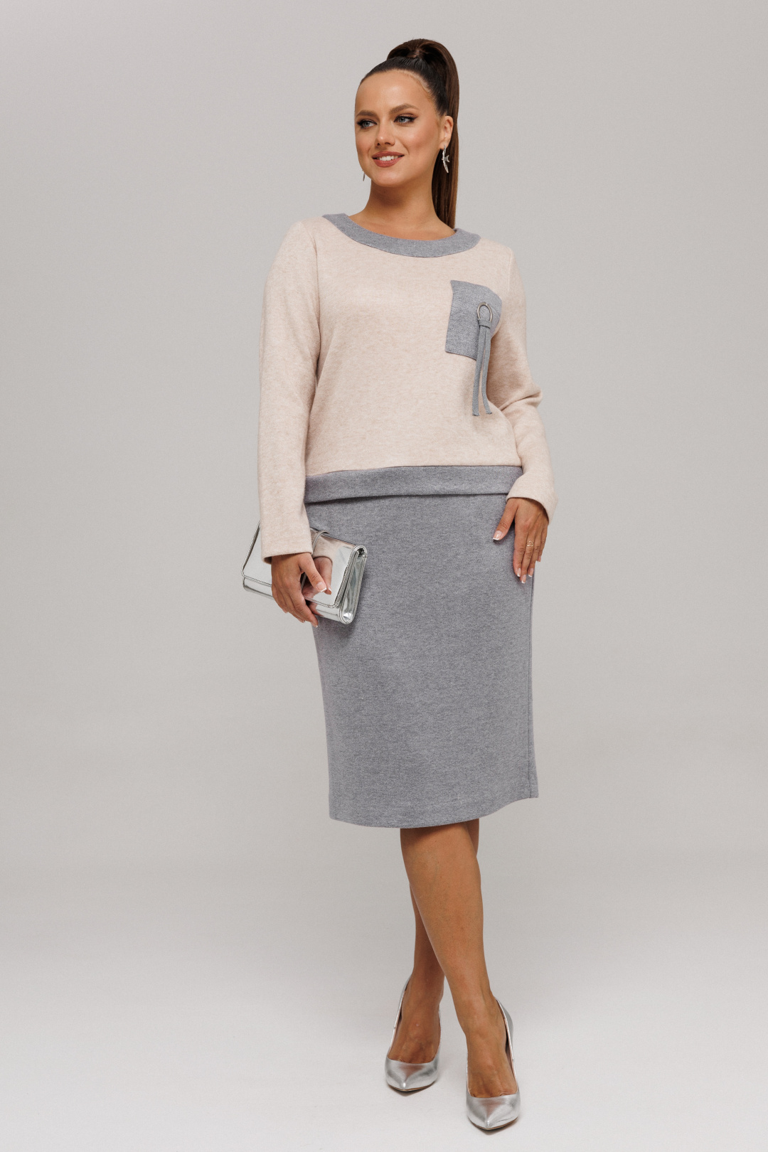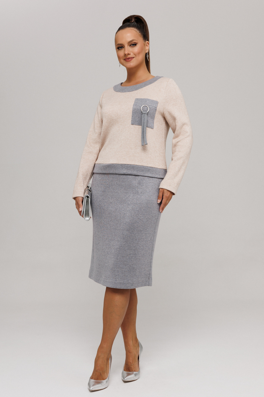 Осенний комплект джемпер и юбка , выполнен из мягкой и приятной к телу трикотажной ткани с добавлением натуральных нитей, которые обеспечивают комфорт и тепло в течение всего дня. Данный юбочный костюм идеально подходит как для офиса, так и для неформального повседневного использования.