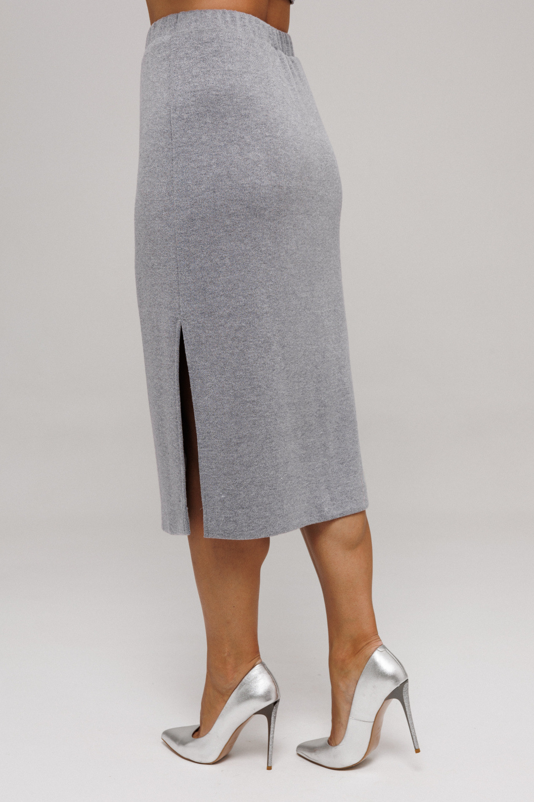 Приталенный силуэт трикотажной юбки с высокой посадкой и разрезом сбоку делает образ лаконичным,поможет всегда оставаться в тренде.