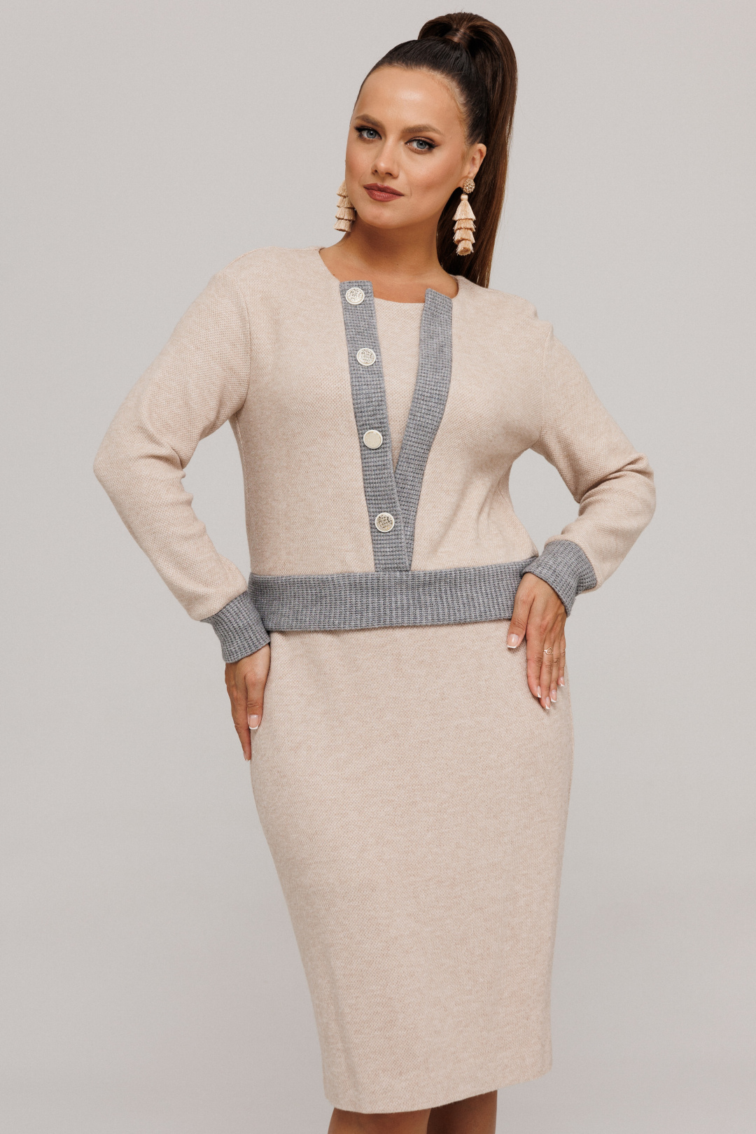 Данные женский костюм состоит из джемпера и юбки, выполнен из качественного трикотажа двух разных фактур, что обеспечивает прекрасный стиль и комфорт.