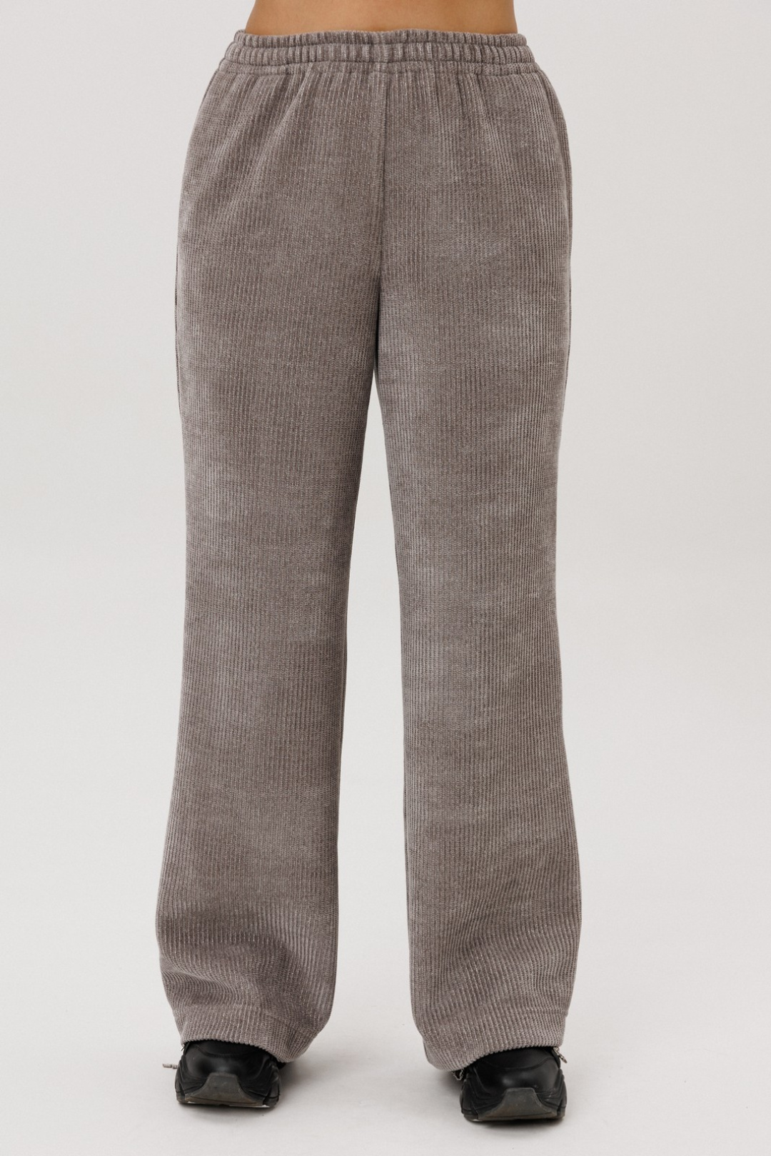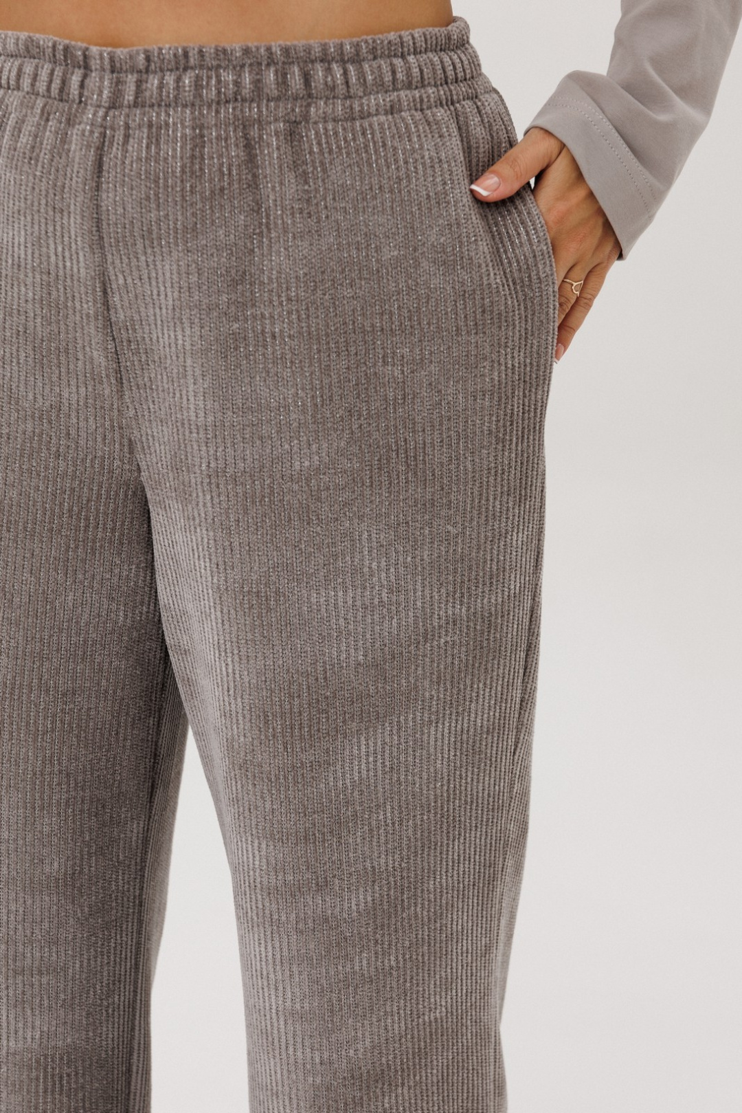 Брюки -палаццо. По талии на резинке, без застежки. В боковых швах карманы.