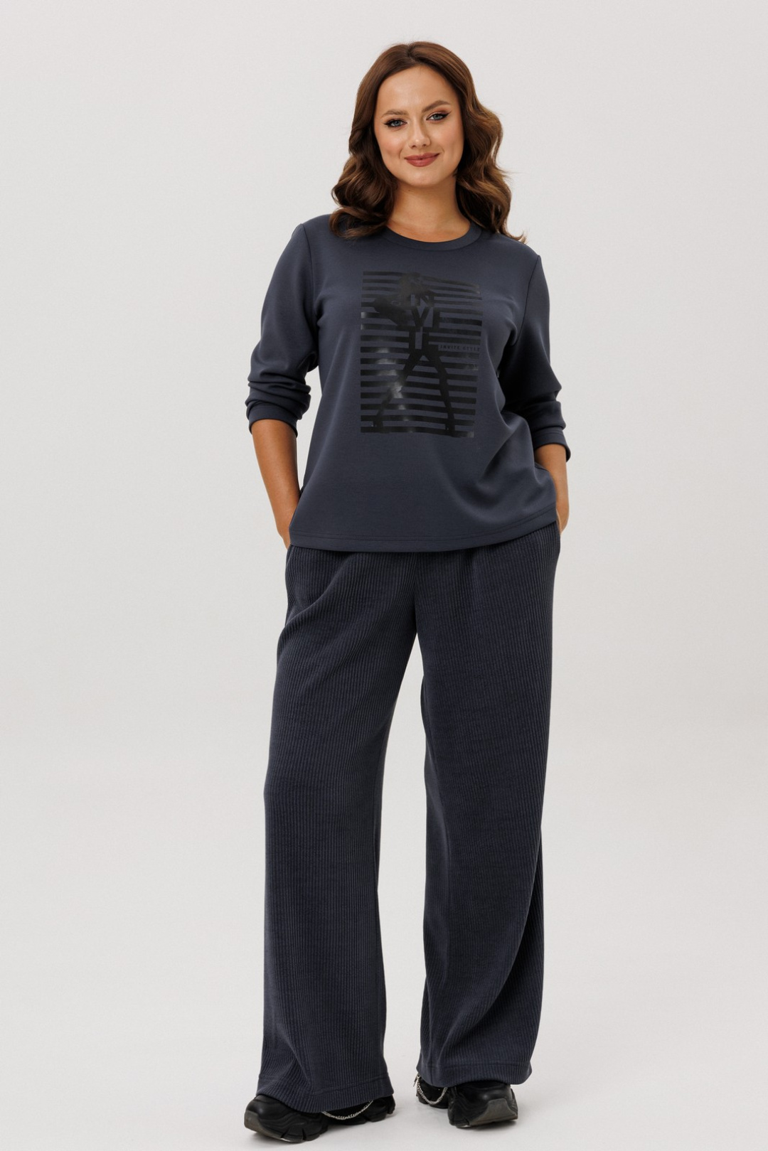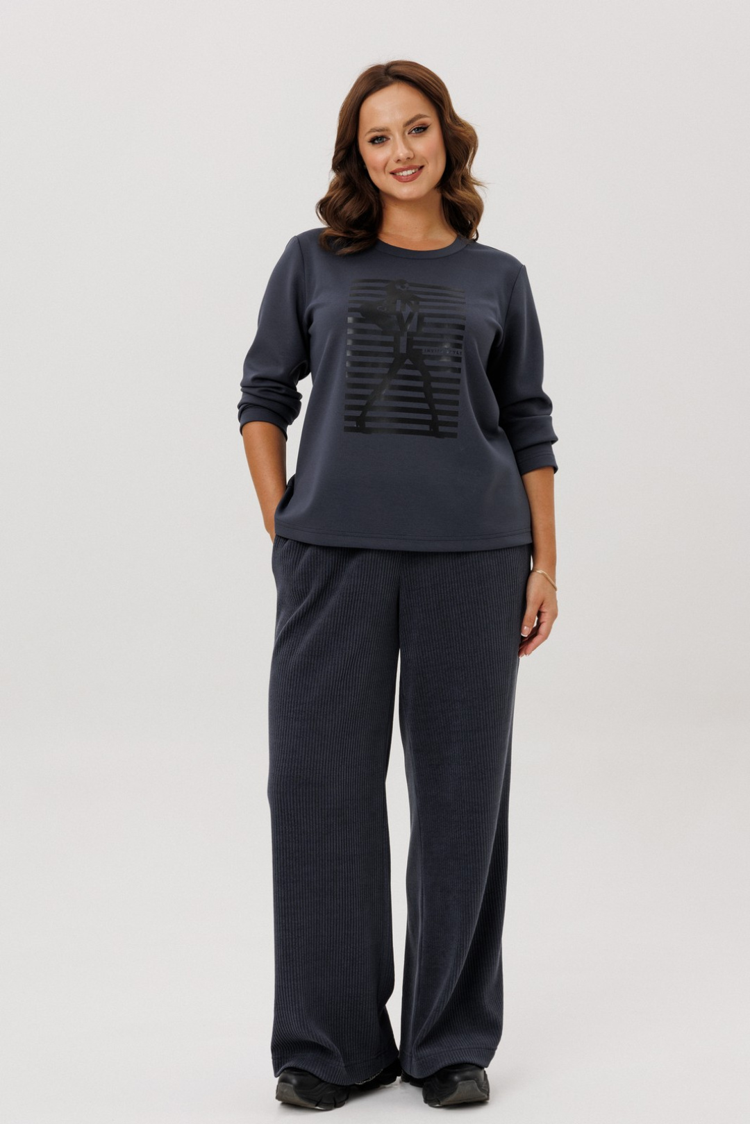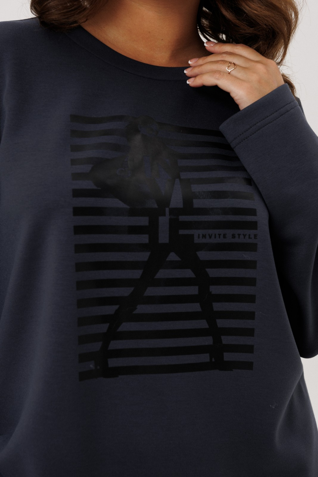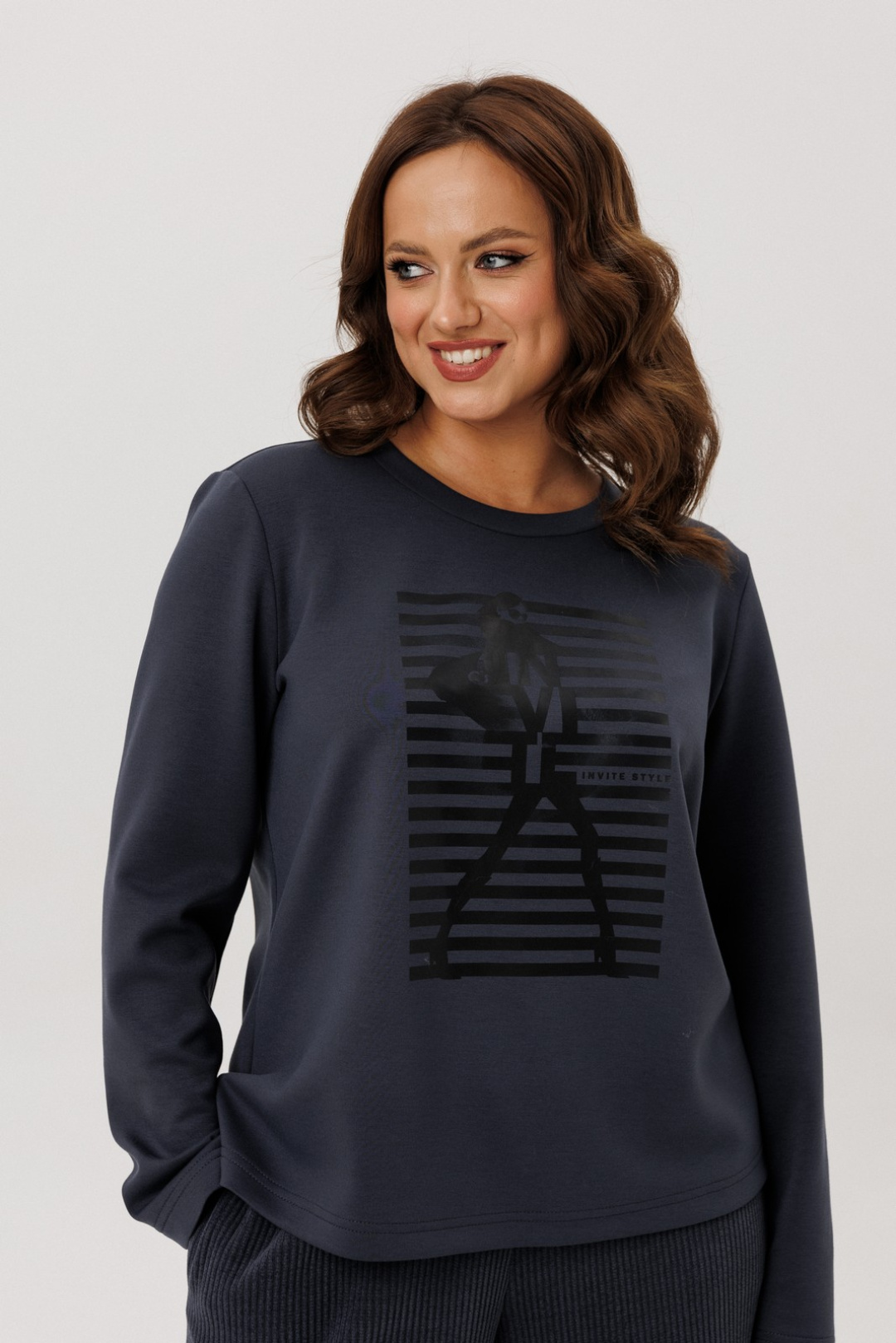 Джемпер с округлым вырезом горловины, рукав втачной, длинный. Изделие без застежки. Декором является принт по переду.