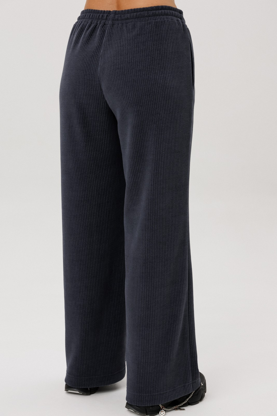 Брюки -палаццо, по талии на резинке, без застежки. В боковых швах карманы.