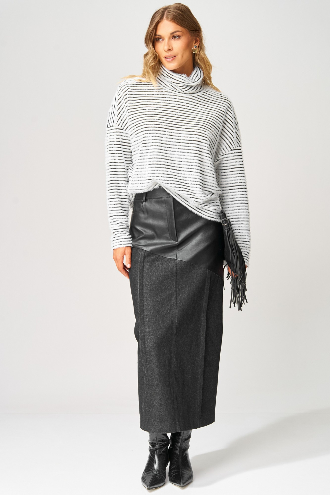 Стильная комбинированная юбка из экокожи и джинса от LAIKONY длиной «в пол».