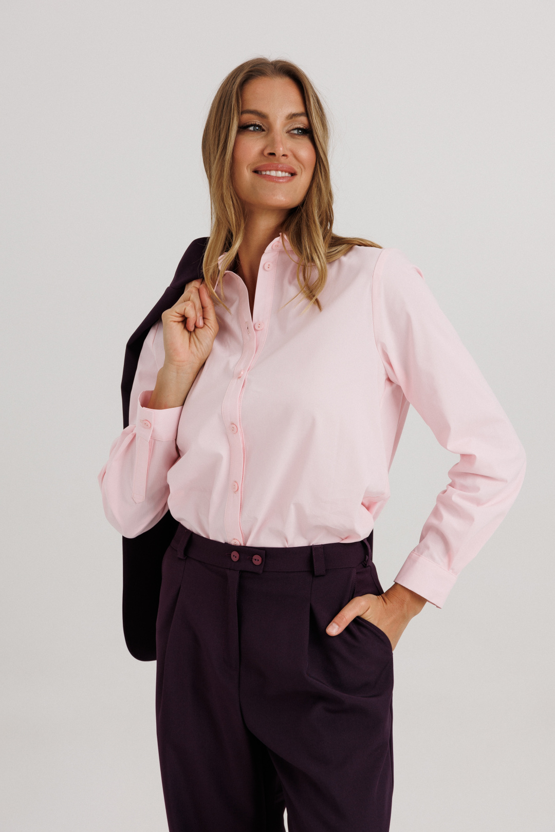 Блуза рубашечного покроя с втачным одношовным рукавом с манжетой.