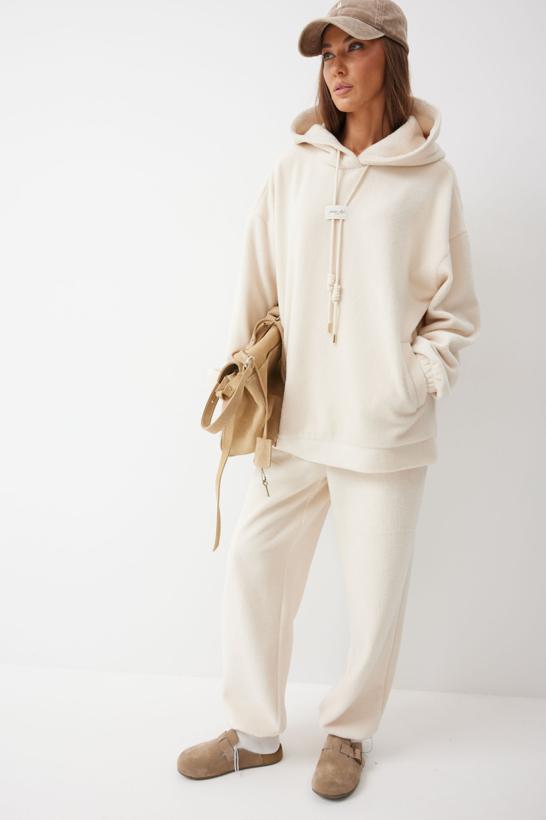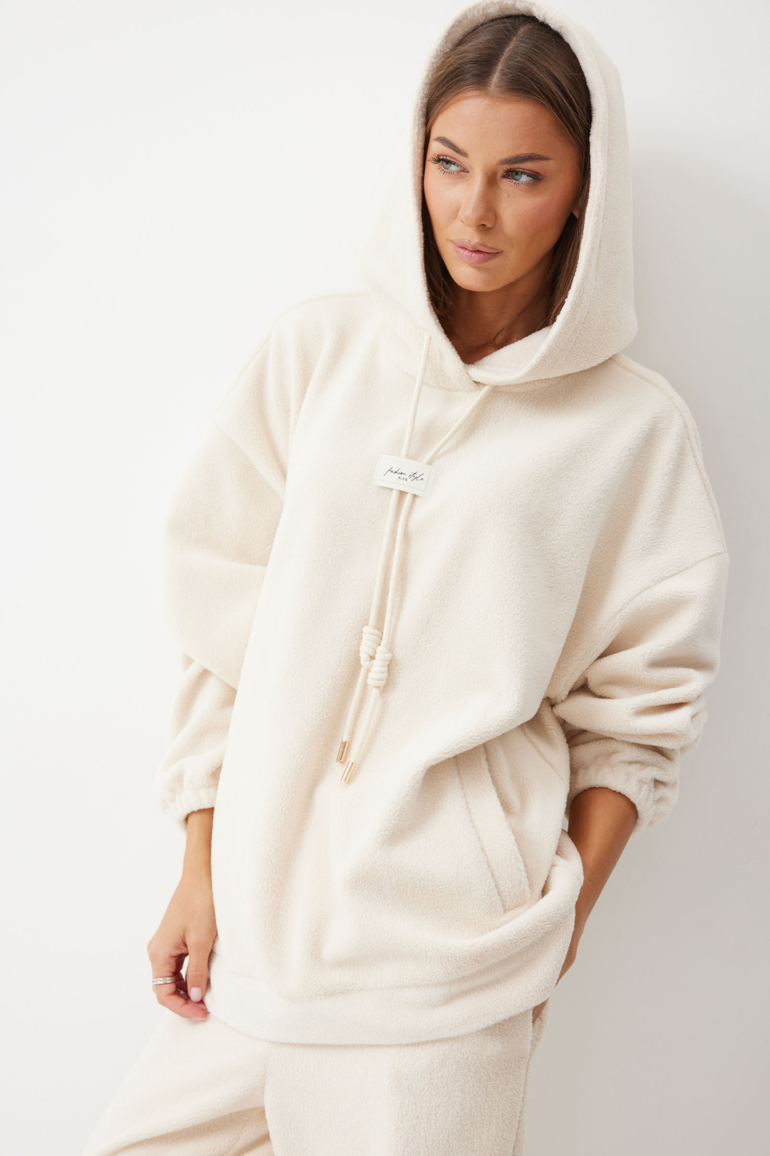 Джемпер прямого силуэта из комфортного трикотажного полотна. Горловина обработана капюшоном. Рукав со спущенной линией плеча, по низу на резинке. По низу джемпера притачной пояс. По переду декоративная нашивка и шнур.