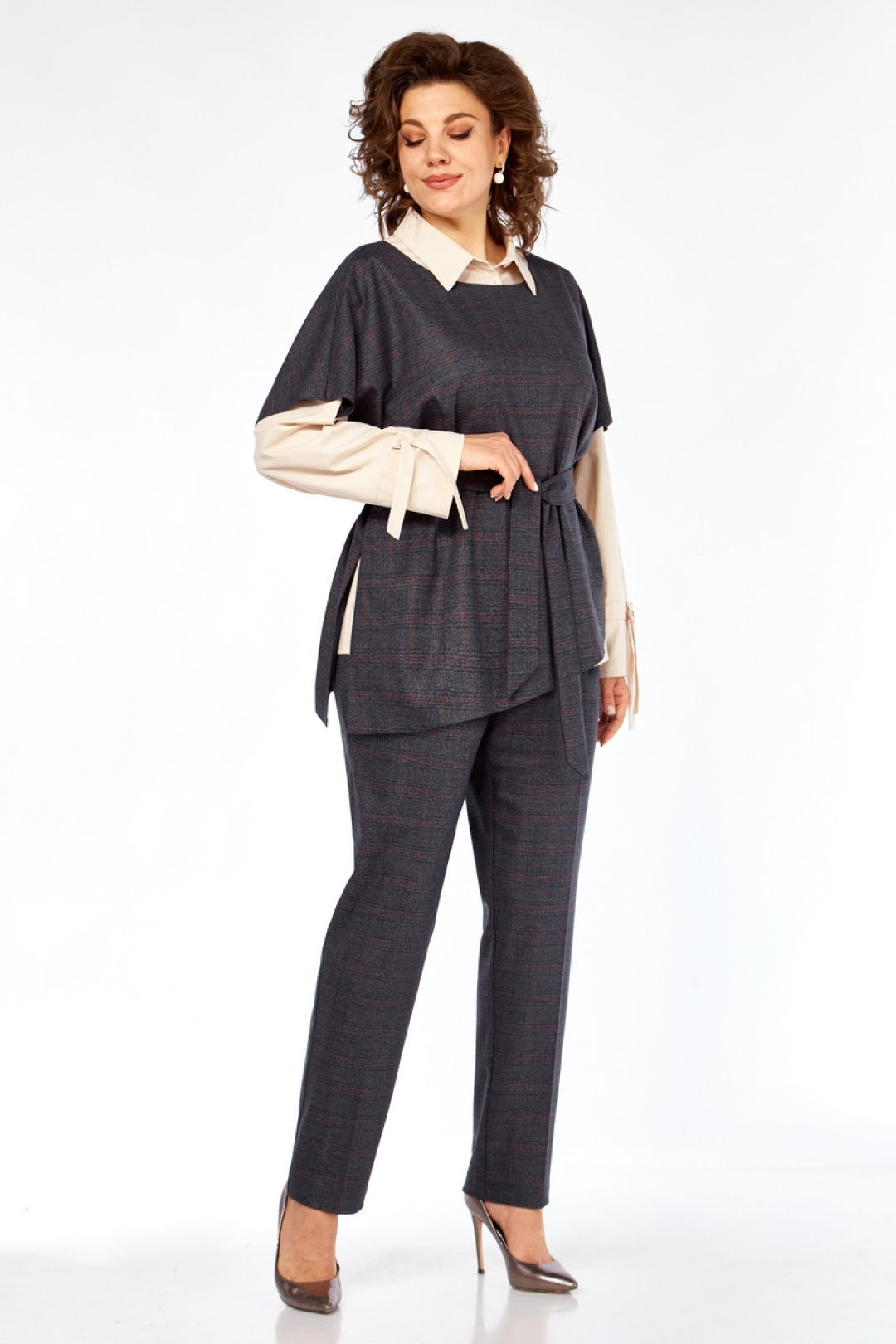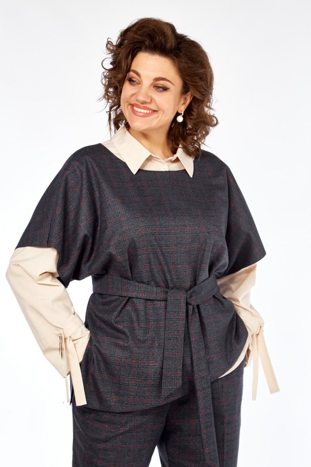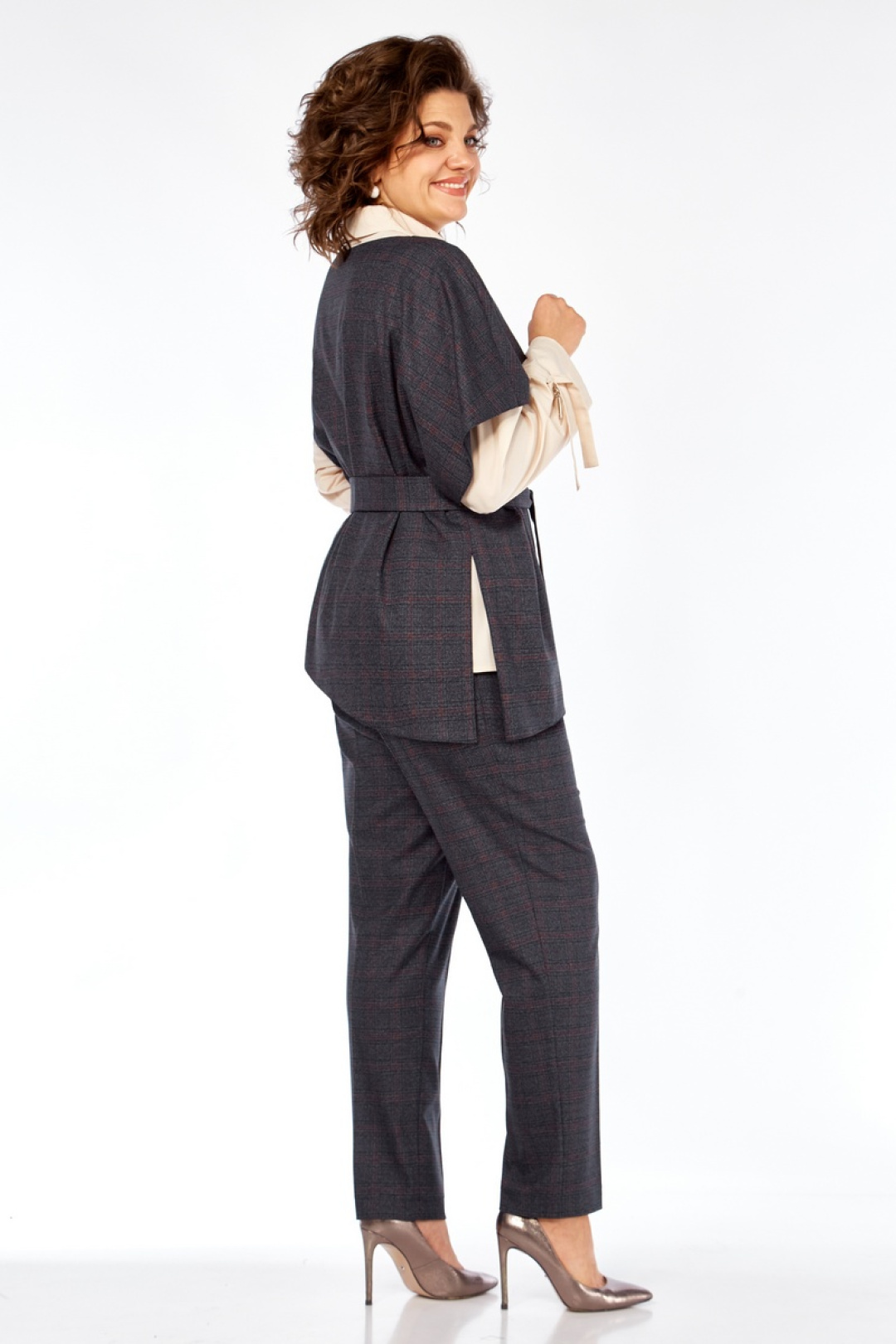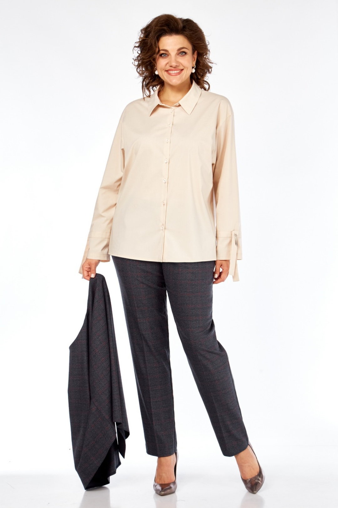 Комплект женский состоящий из рубашки, жилета и брюк. Рубашка прямого силуэта с рубашечным воротником, спереди на застежку – петли и пуговицы, со втачным рубашечным рукавом, по низу рукава – отделочный элемент.